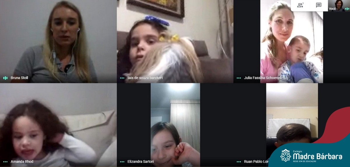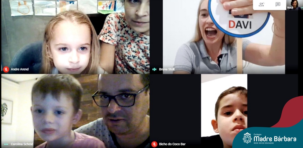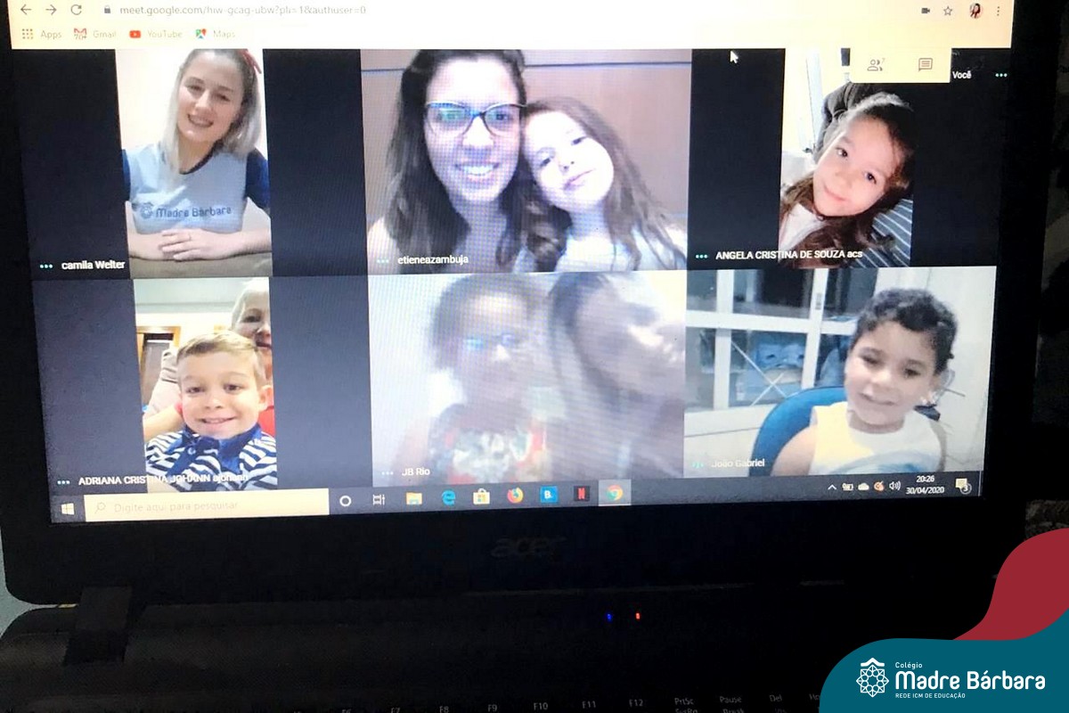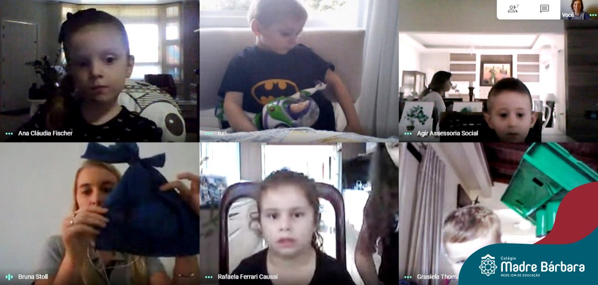 Na quinta-feira (30.04), os Níveis 4 da Educação Infantil realizaram o primeiro encontro online pelo aplicativo Meet. A chamada online envolveu situações de muita interação e afetividade. As crianças mostraram seu brinquedo preferido e participaram de uma situação lúdica envolvendo a letra inicial do nome dos colegas, bem como, foi explorado um objeto com cada letra.