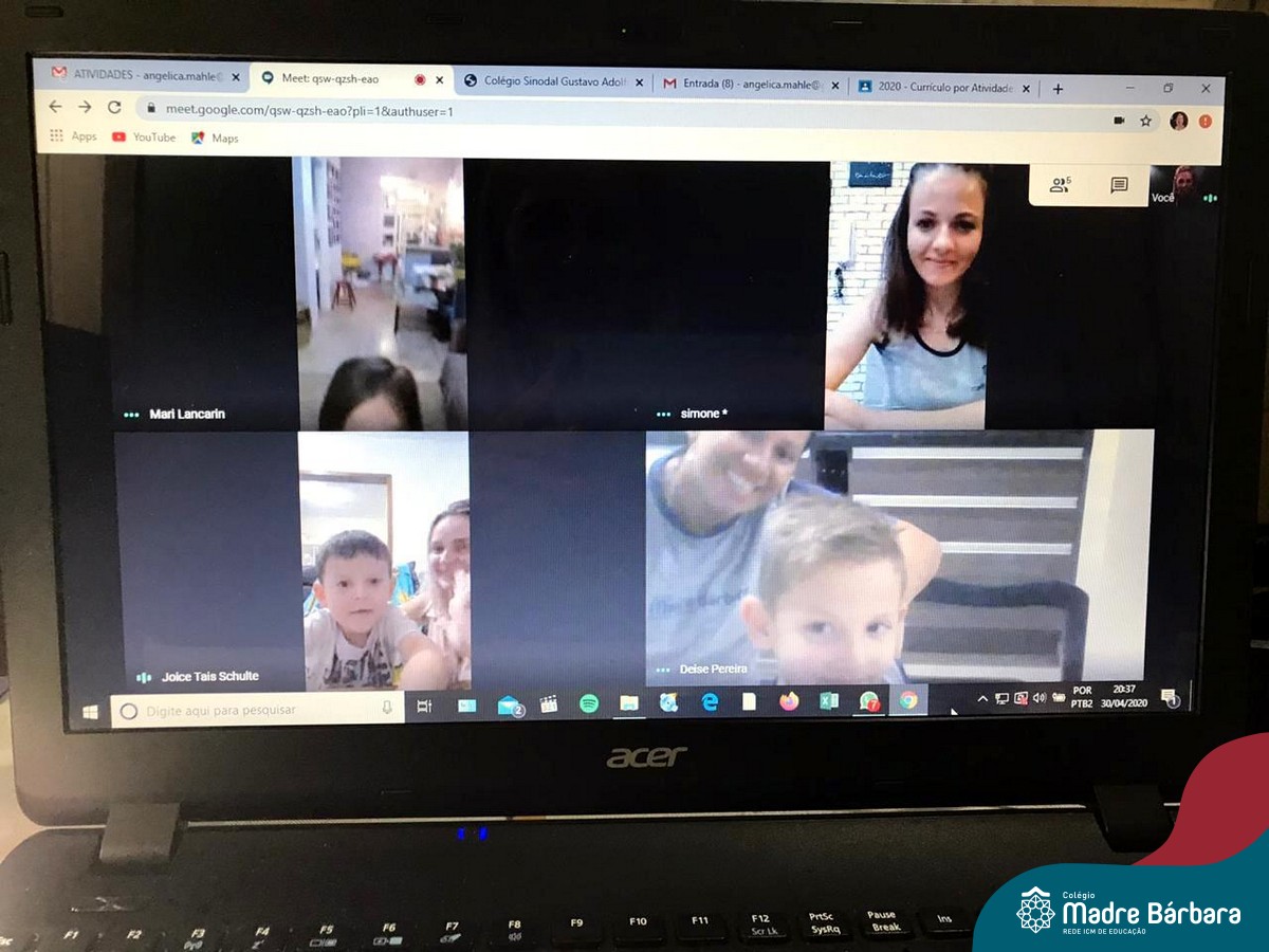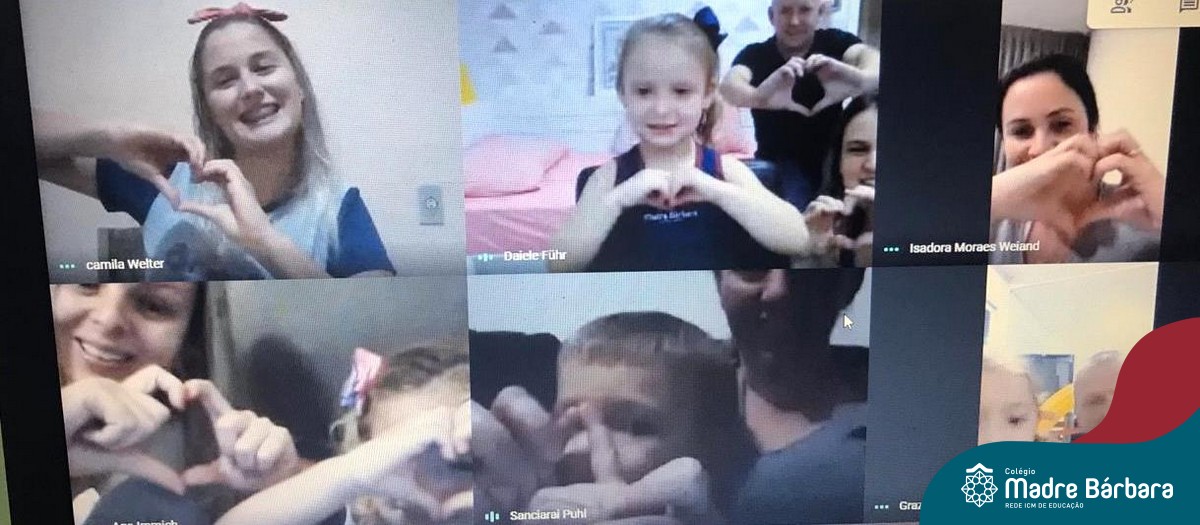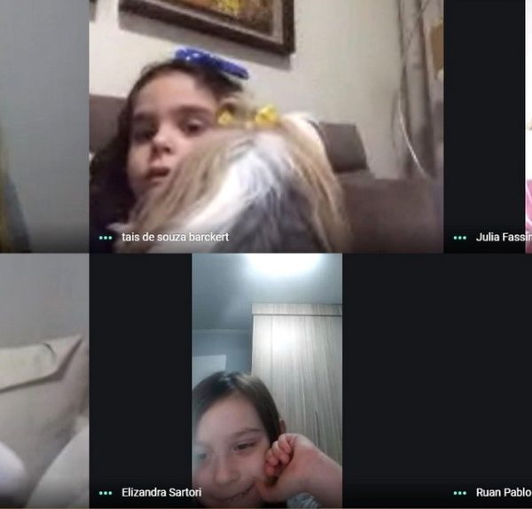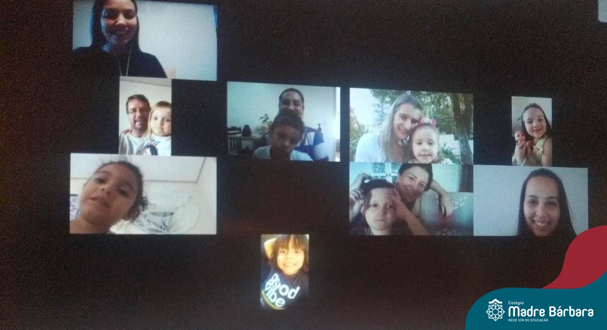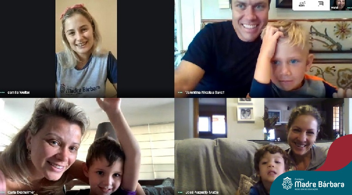 Na quinta-feira (30.04), os Níveis 4 da Educação Infantil realizaram o primeiro encontro online pelo aplicativo Meet. A chamada online envolveu situações de muita interação e afetividade. As crianças mostraram seu brinquedo preferido e participaram de uma situação lúdica envolvendo a letra inicial do nome dos colegas, bem como, foi explorado um objeto com cada letra.