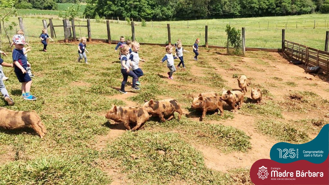 Na manhã do dia 26 de outubro os níveis 2 realizaram uma incrível aventura no espaço Duas Meninas Garden em Arroio do Meio. Durante a manhã puderam participar de um delicioso piquenique, curtir a natureza, passear na floresta e explorar a casinha dos Três Porquinhos. O momento mais esperado foi a visita na “Fazendinha do vovô”, onde puderam observar alguns animais, dar comida para ovelhas e galinhas, além de se divertirem com os porquinhos.