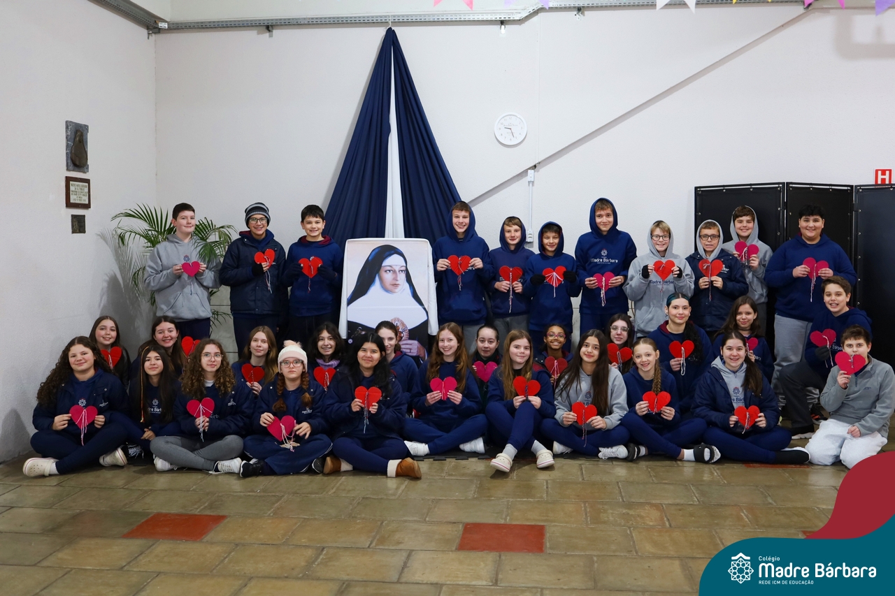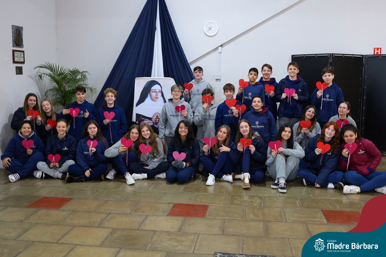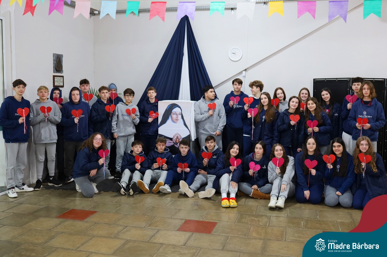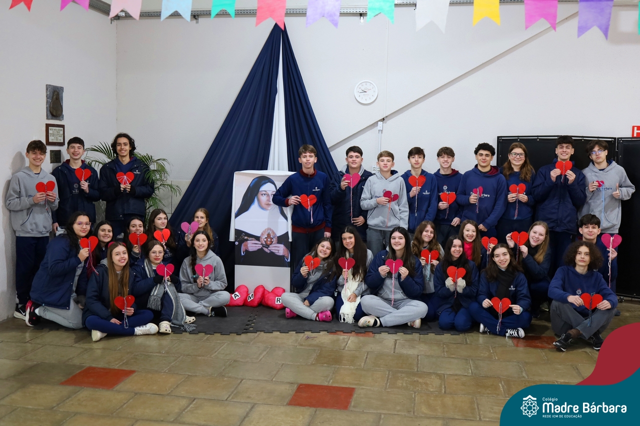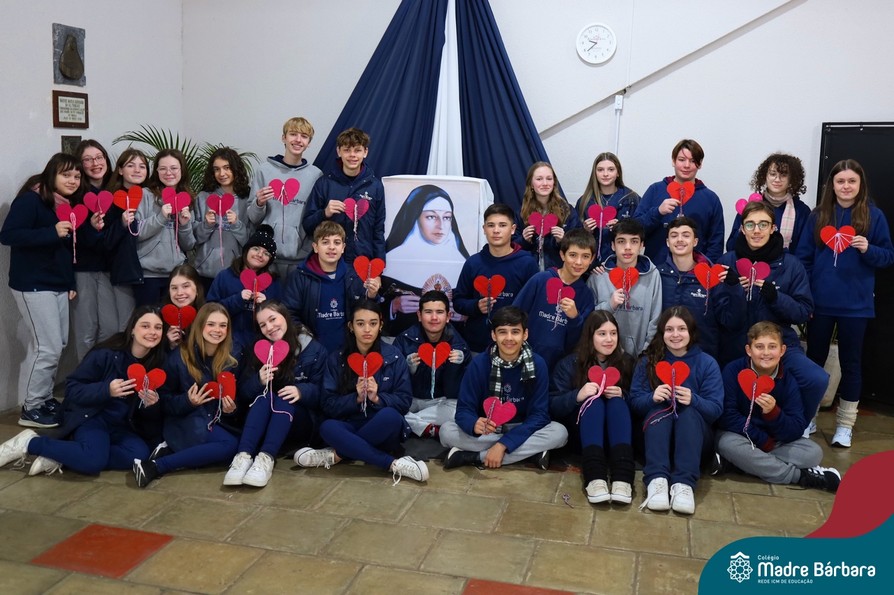 O aniversário de Bárbara Maix é comemorado nesta sexta-feira, dia 27 de junho. Ela, devota do Imaculado Coração de Maria, que é um símbolo de pureza, amor e devoção. Representa a bondade e a misericórdia de Nossa Senhora, que nos inspira a viver com fé e compaixão. É um lembrete da importância da oração, da reflexão e do amor incondicional. Neste contexto a Pastoral Escolar, junto com a professora Cristiane Schneider, nas aulas de Arte desafiou os alunos do 2º ano do Ensino Médio a confeccionar corações. Nas turmas de 8º Anos, no Ensino Fundamental, o desafio foi aprender a trançar para representar o coração de Maria. As turmas de Anos Finais estiveram participando dos registros para marcar a data. Venha prestigiar os trabalhos dos alunos na área coberta!