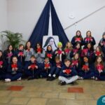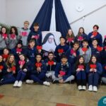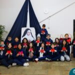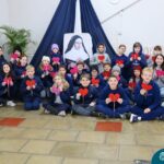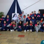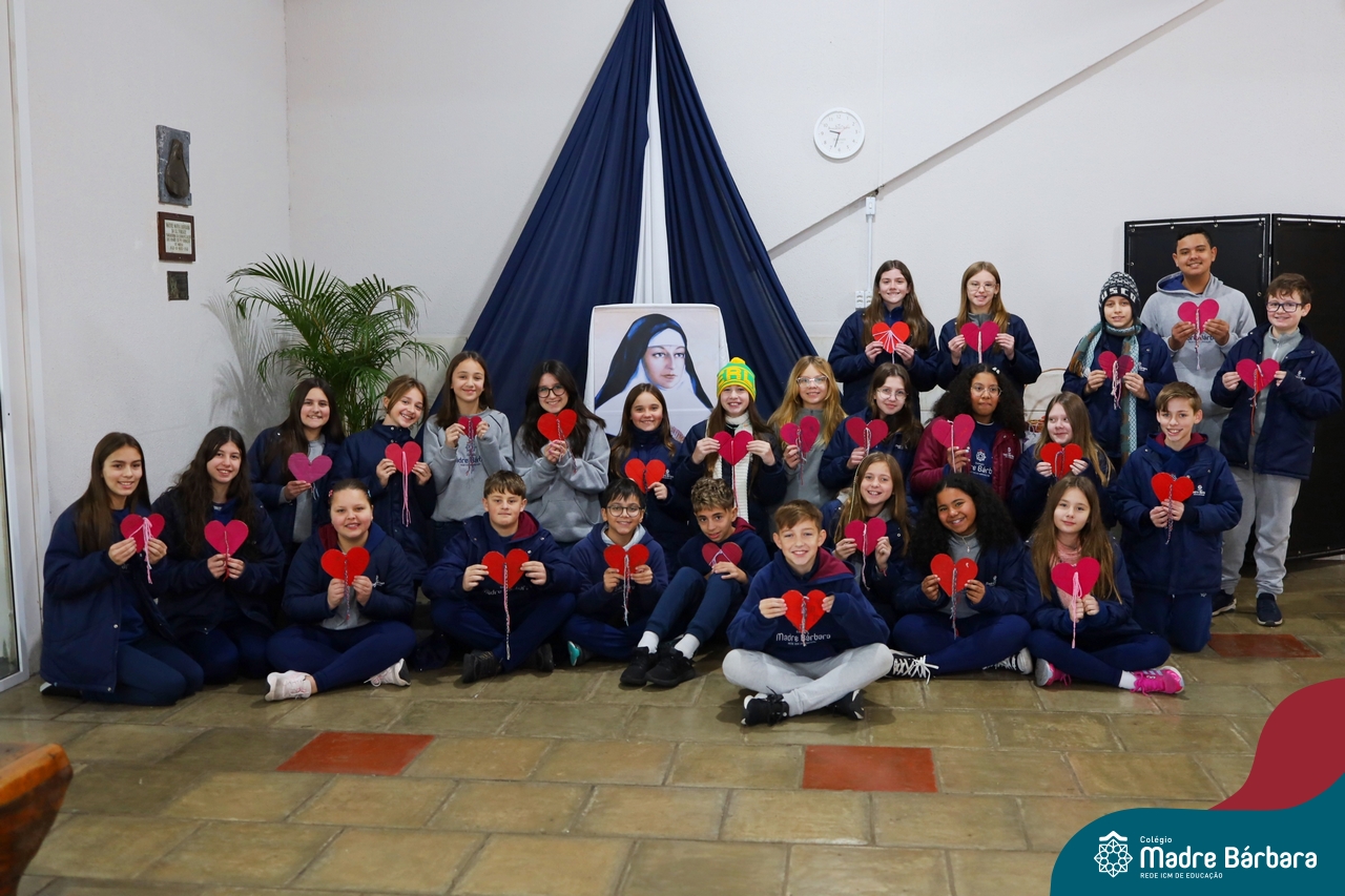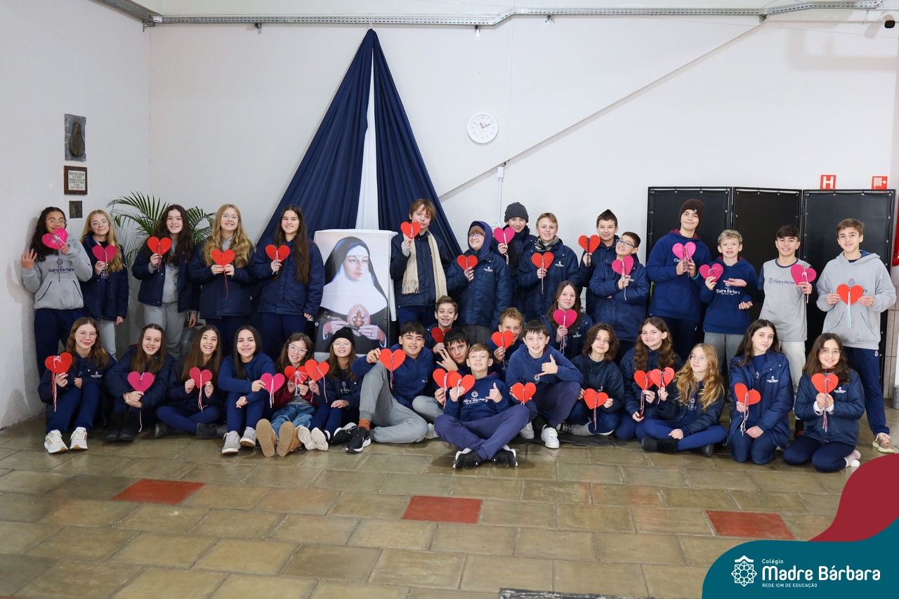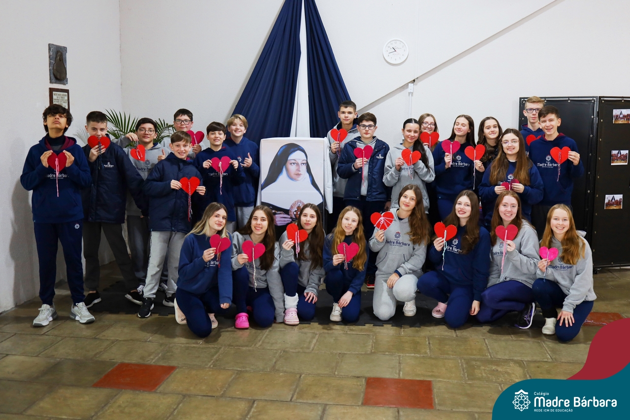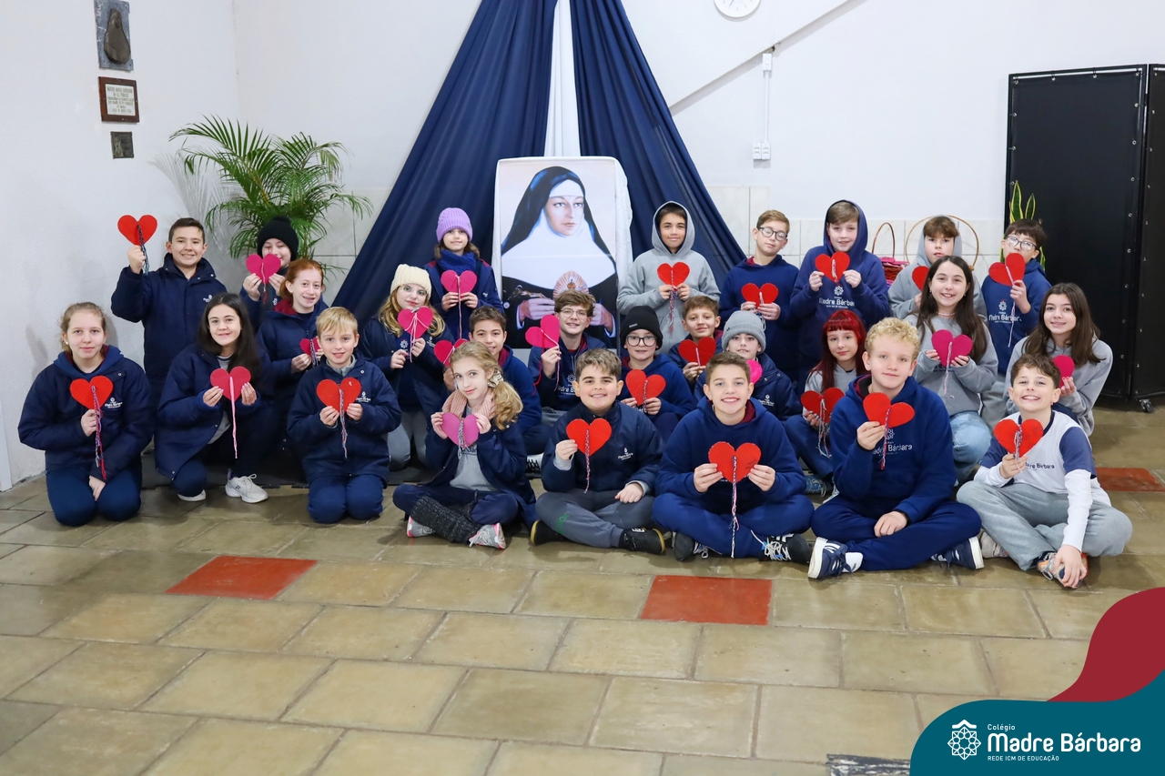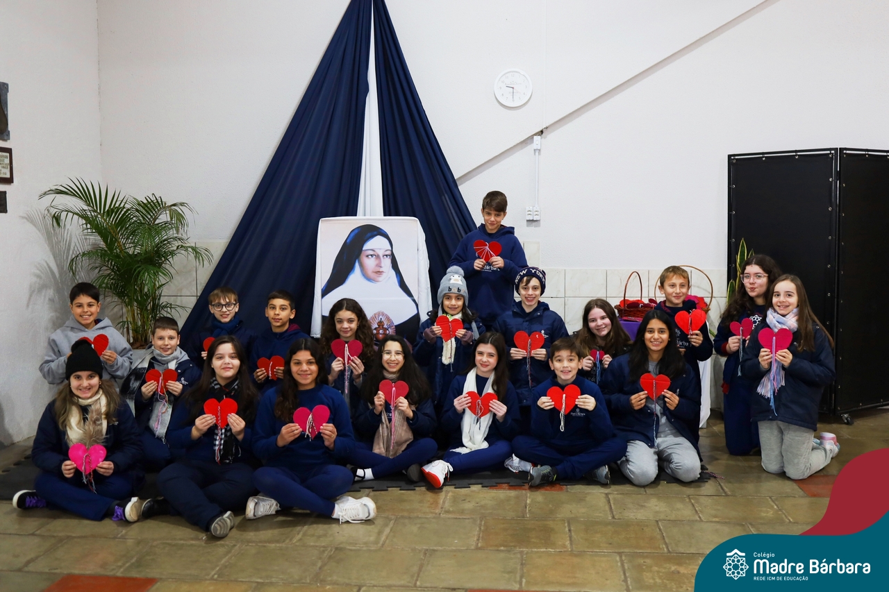 O aniversário de Bárbara Maix é comemorado nesta sexta-feira, dia 27 de junho. Ela, devota do Imaculado Coração de Maria, que é um símbolo de pureza, amor e devoção. Representa a bondade e a misericórdia de Nossa Senhora, que nos inspira a viver com fé e compaixão. É um lembrete da importância da oração, da reflexão e do amor incondicional. Neste contexto a Pastoral Escolar, junto com a professora Cristiane Schneider, nas aulas de Arte desafiou os alunos do 2º ano do Ensino Médio a confeccionar corações. Nas turmas de 8º Anos, no Ensino Fundamental, o desafio foi aprender a trançar para representar o coração de Maria. As turmas de Anos Finais estiveram participando dos registros para marcar a data. Venha prestigiar os trabalhos dos alunos na área coberta!