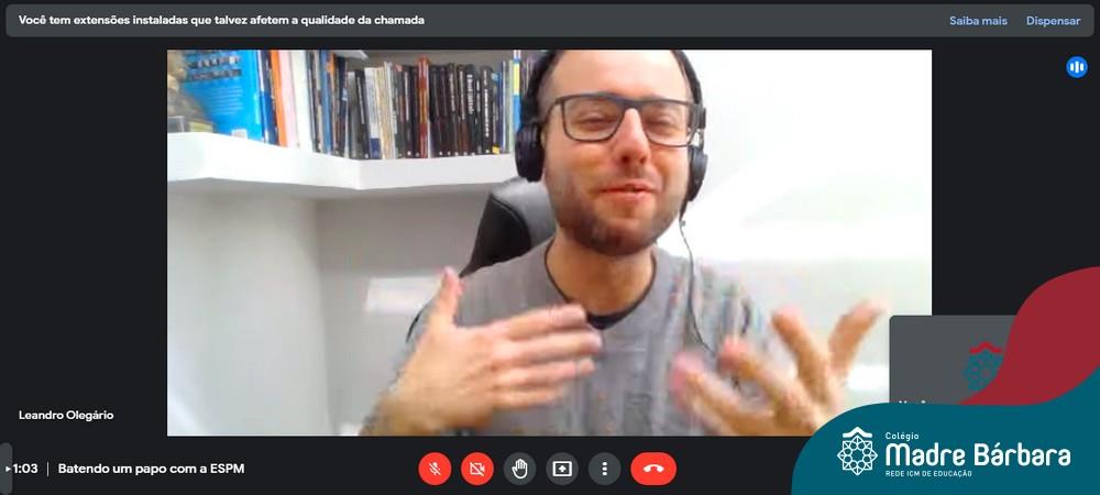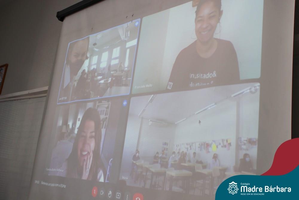 Na manhã desta quinta-feira, 9 de setembro, os alunos dos 3ºs anos do Ensino Médio, dentro da proposta da Semana de Orientação Profissional tiveram a visita online dos coordenadores dos cursos ofertados pela ESPM de Porto Alegre. Foi um bate-papo interativo onde puderam esclarecer dúvidas, conhecer novas tendências dos cursos em que a instituição é focada, sendo eles na área da publicidade e propaganda, marketing, design, jornalismo, administração e relações internacionais os mais questionados.