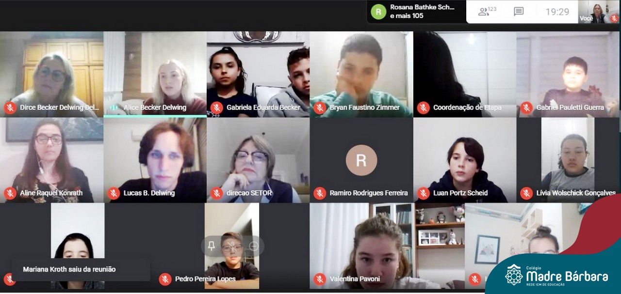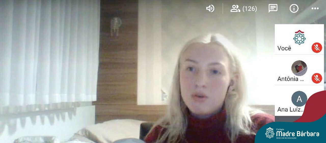 Na noite desta terça-feira (29), os alunos do 6º ao 8º ano do Ensino Fundamental realizaram um bate-papo com os escritores Dirce Becker Delving, Alice Becker Delving e Lucas Becker Delving. Dirce, que é mãe de Alice e Lucas, escreveu com cada um dos filhos uma obra: “Mocreia: de onde vem as palavras?”, com Lucas, e “Não sou obrigada”, com Alice. Crônicas de ambas as obras foram lidas pelos alunos ao longo do 2º trimestre e as discussões em aula culminaram na noite de diálogos sobre inspirações para a escrita, incentivo à escrita e leitura e o processo de produção escrita.