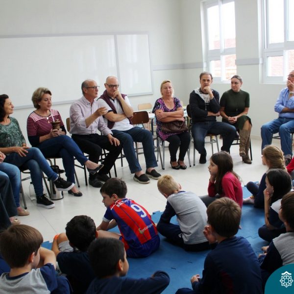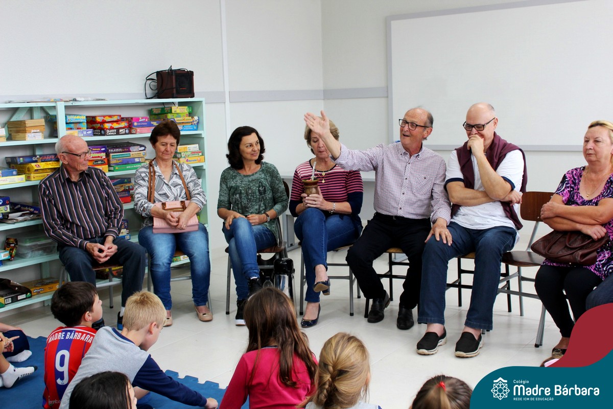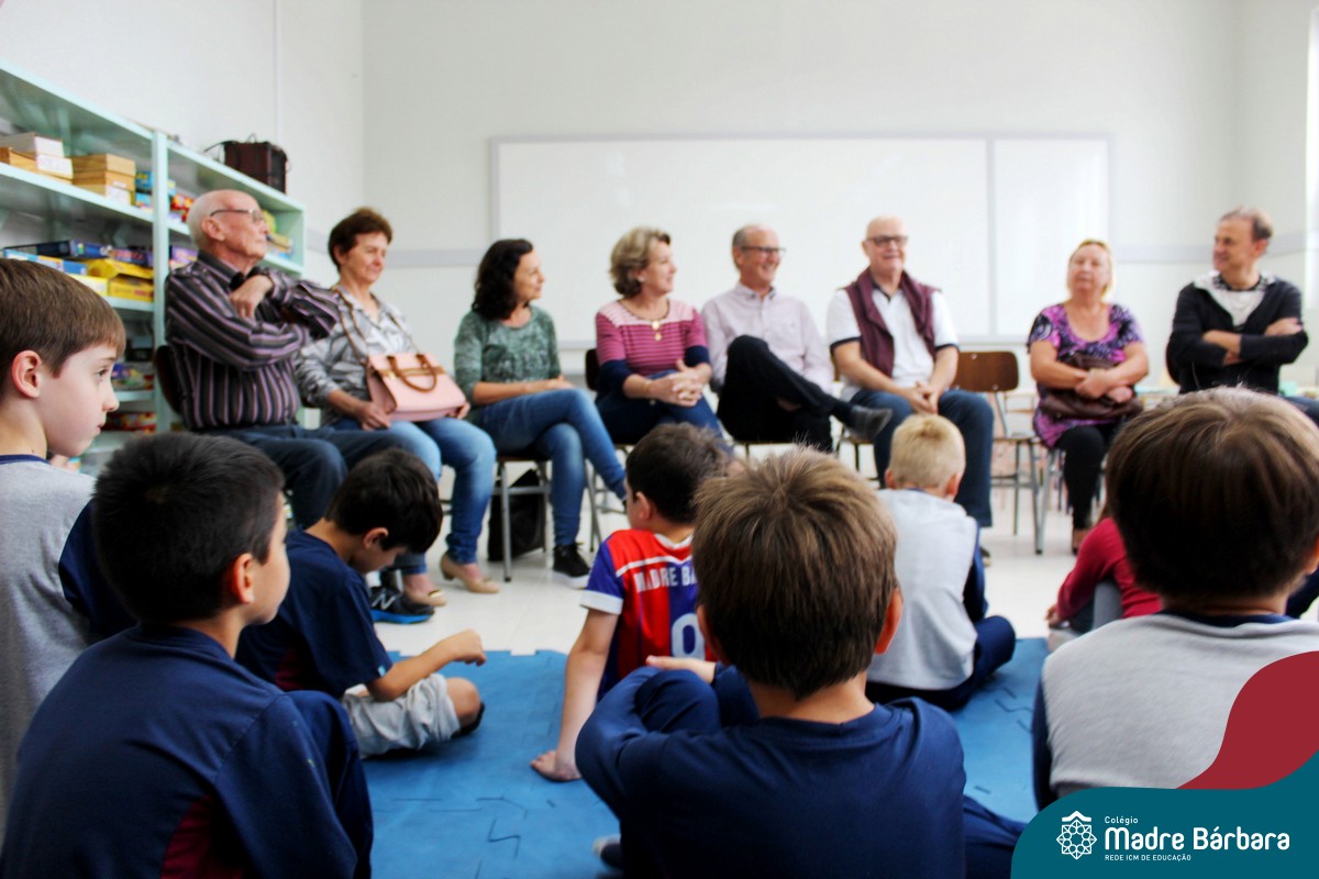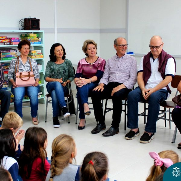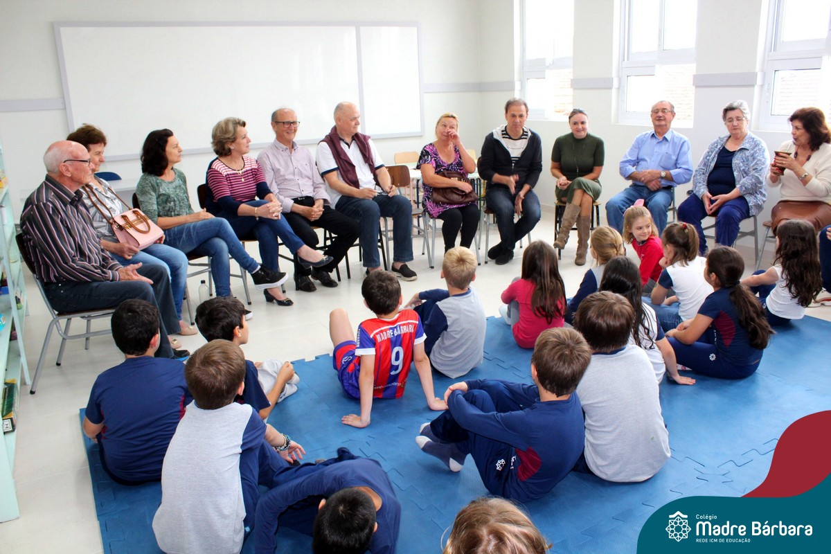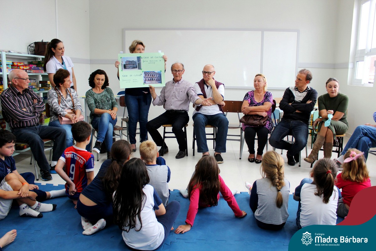Nessa sexta-feira a turma 21, juntamente com a professora Caroline Bozzetto de Souza, recebeu nas dependências do Colégio Madre Bárbara – Rede ICM, a visita dos avós, que através de um gostoso Bate Papo, compartilharam com os netos as vivências, experiências e relataram um pouco de tudo o que em sala de aula está sendo abordado, como por exemplo: Rio Taquari, Igreja Matriz, Parque Histórico, Parque do Engenho, Bairros, Centro de Lajeado, Cidade de Lajeado, Colégio Madre Bárbara, Animais, fazendo sempre as reflexões do ontem e o hoje, o que mudou, porque mudou, se teve influências humanas ou fenômenos naturais. Além dos Avós, contamos com a presença da diretora Maria Elena Jaques e coordenadora pedagógica Simone Faleiro, que também contribuíram com suas falas sobre suas vivências de ontem e hoje. Foi uma manhã cativante e recheada de conhecimento, contribuindo significantemente para a pesquisa.
