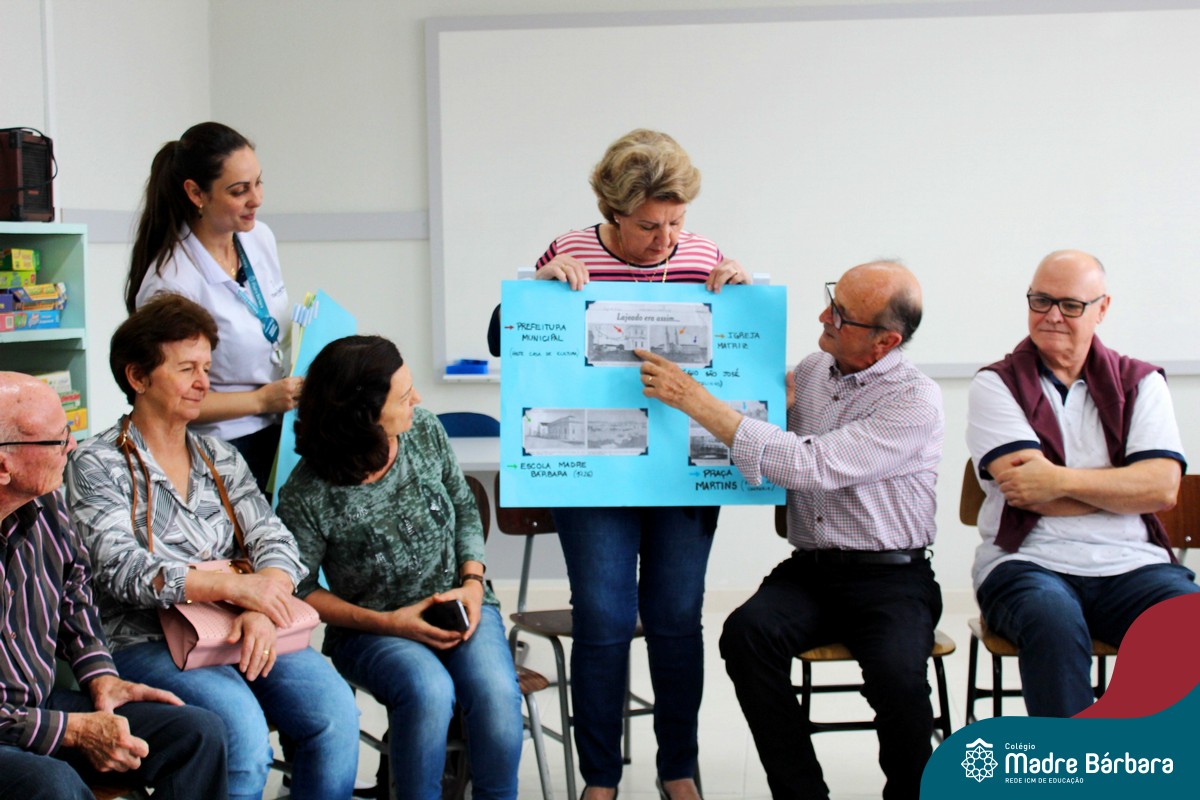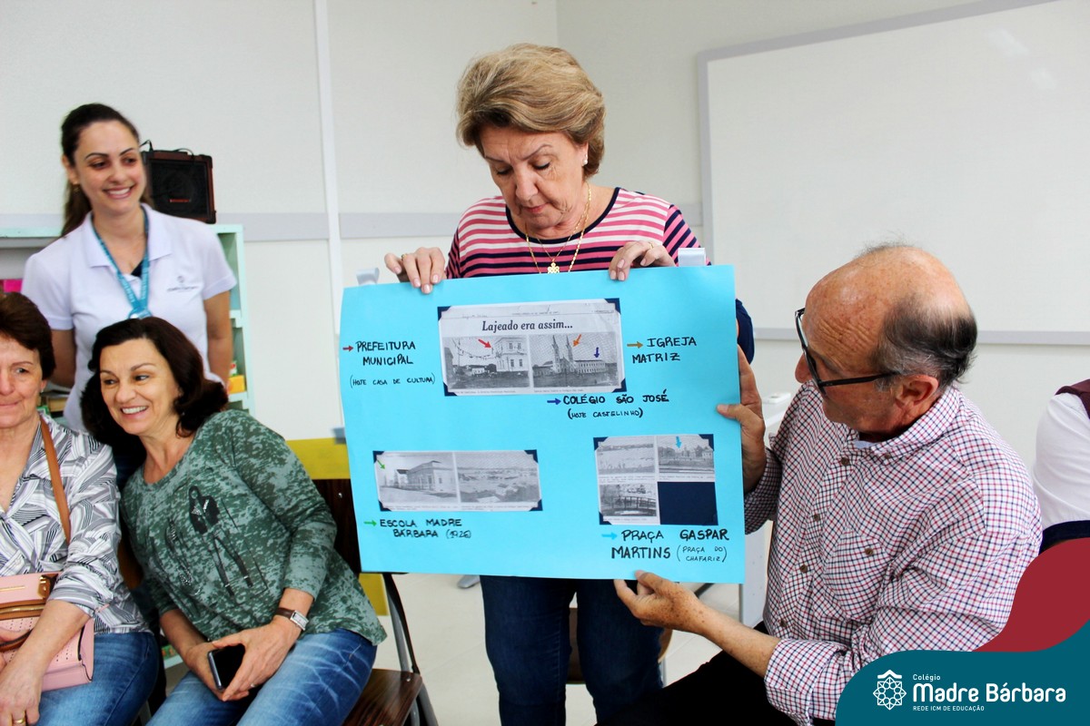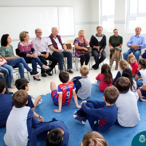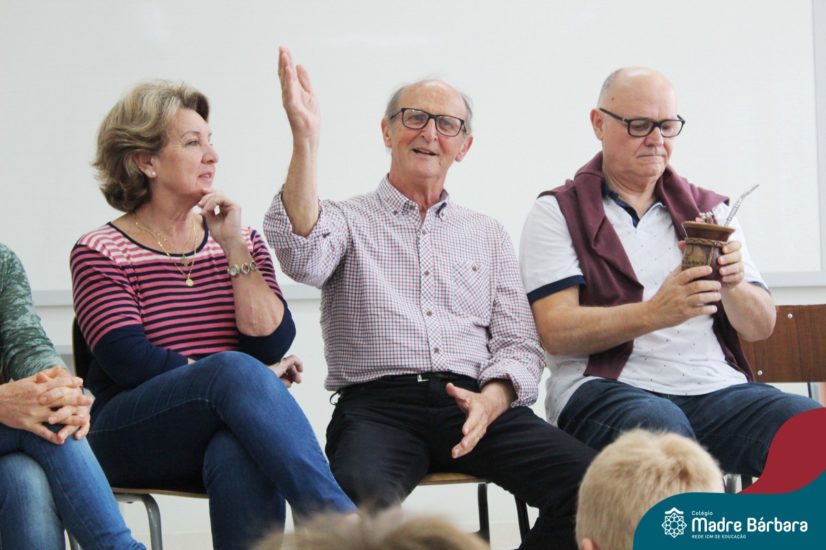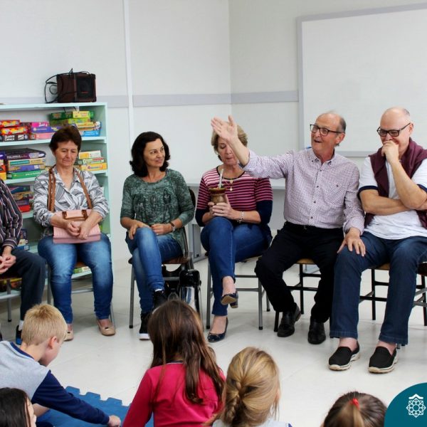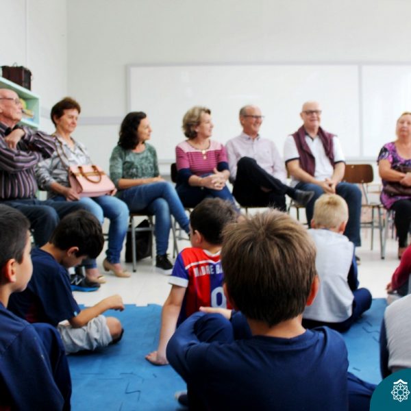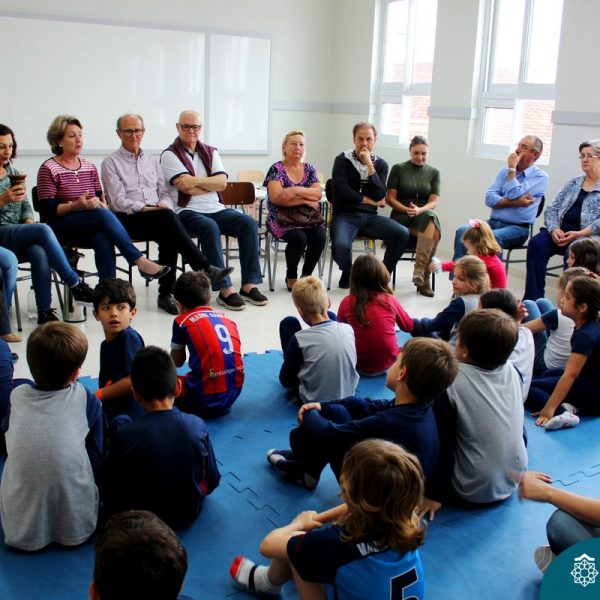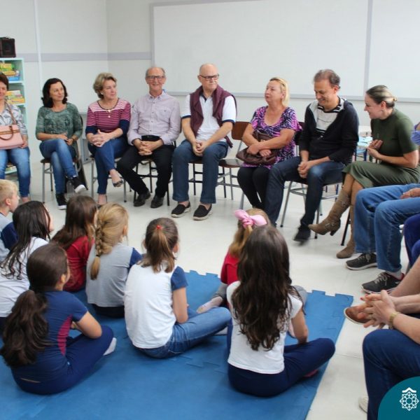 Nessa sexta-feira a turma 21, juntamente com a professora Caroline Bozzetto de Souza, recebeu nas dependências do Colégio Madre Bárbara – Rede ICM, a visita dos avós, que através de um gostoso Bate Papo, compartilharam com os netos as vivências, experiências e relataram um pouco de tudo o que em sala de aula está sendo abordado, como por exemplo: Rio Taquari, Igreja Matriz, Parque Histórico, Parque do Engenho, Bairros, Centro de Lajeado, Cidade de Lajeado, Colégio Madre Bárbara, Animais, fazendo sempre as reflexões do ontem e o hoje, o que mudou, porque mudou, se teve influências humanas ou fenômenos naturais. Além dos Avós, contamos com a presença da diretora Maria Elena Jaques e coordenadora pedagógica Simone Faleiro, que também contribuíram com suas falas sobre suas vivências de ontem e hoje. Foi uma manhã cativante e recheada de conhecimento, contribuindo significantemente para a pesquisa.