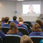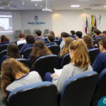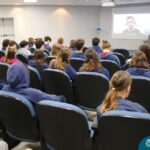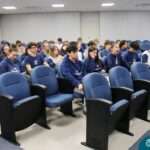 Na manhã de hoje (08.05) os estudantes das turmas das 1ªs séries do Ensino Médio participaram de um bate-papo com o escritor Antônio Xerxenesky sobre ficção científica. A atividade faz parte do Itinerário Formativo de Modelos Políticos, ministrado pelo professor Lucas Schneider. Os jovens estão preparando um debate sobre ficção científica e aproveitaram a participação do escritor para fazer questionamentos e trocas.