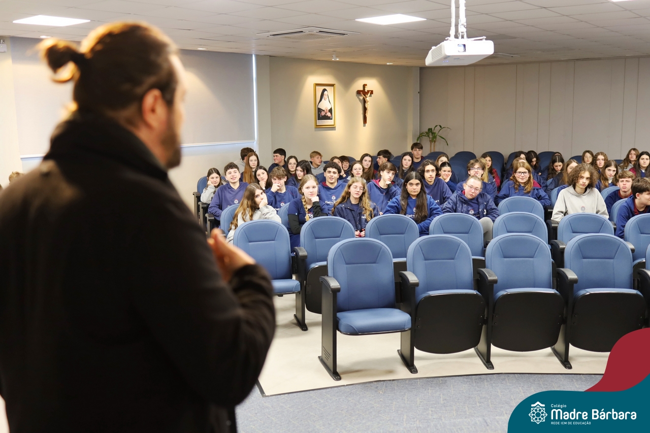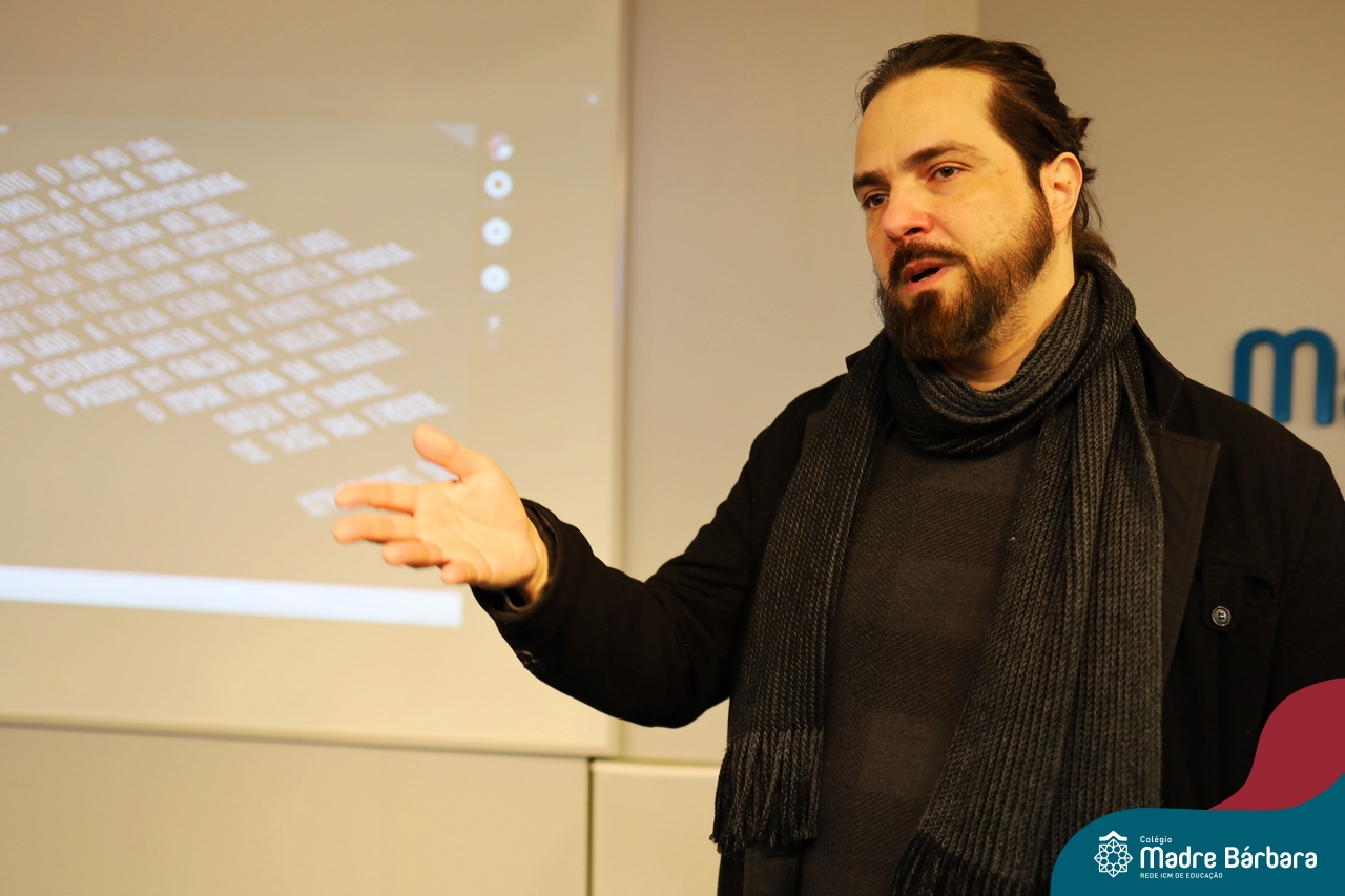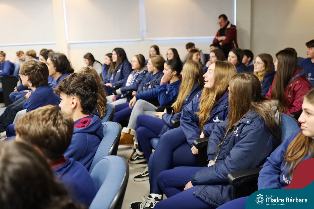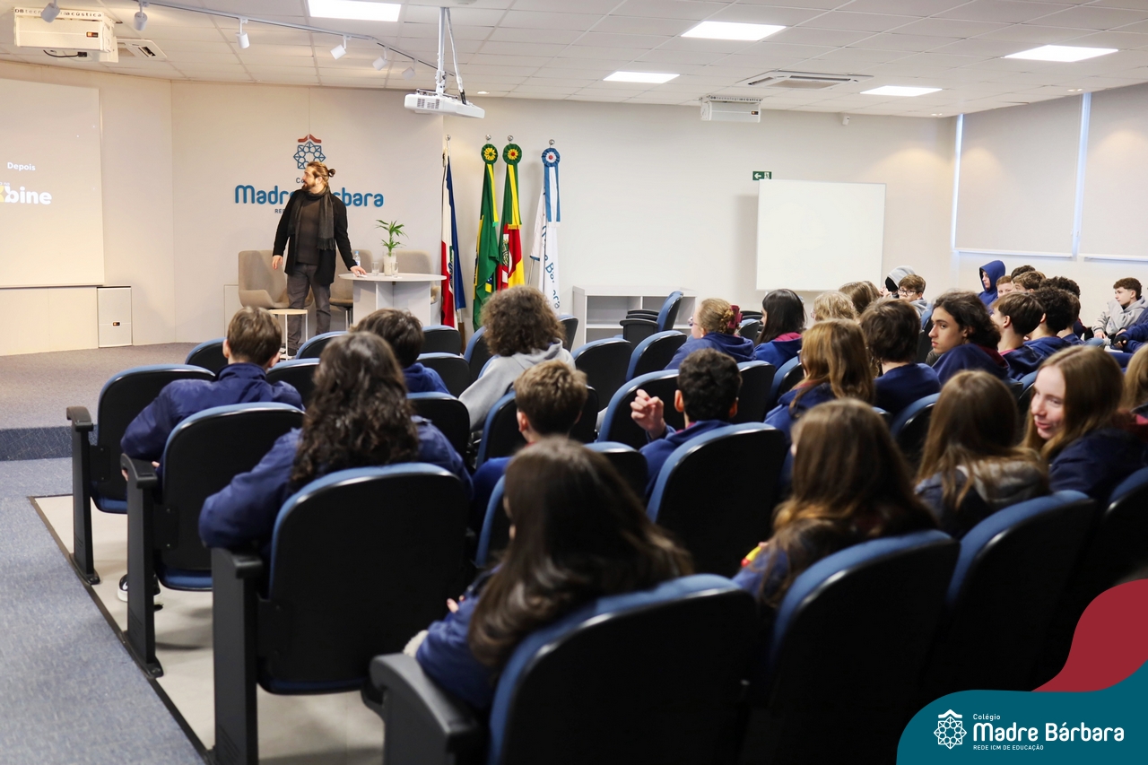 Os alunos do 9º ano do Ensino Fundamental tiveram a oportunidade de conhecer um pouco mais sobre o mundo do Design em uma palestra especial com o professor Rodrigo Brod, referência nacional e internacional na área. O bate-papo integrou as atividades da disciplina de Tecnologia e Inovação, ministrada pela professora Bruna Scheeren, que explora conceitos de design e incentiva os alunos a desenvolverem seu olhar criativo e crítico para os desafios do presente e do futuro.