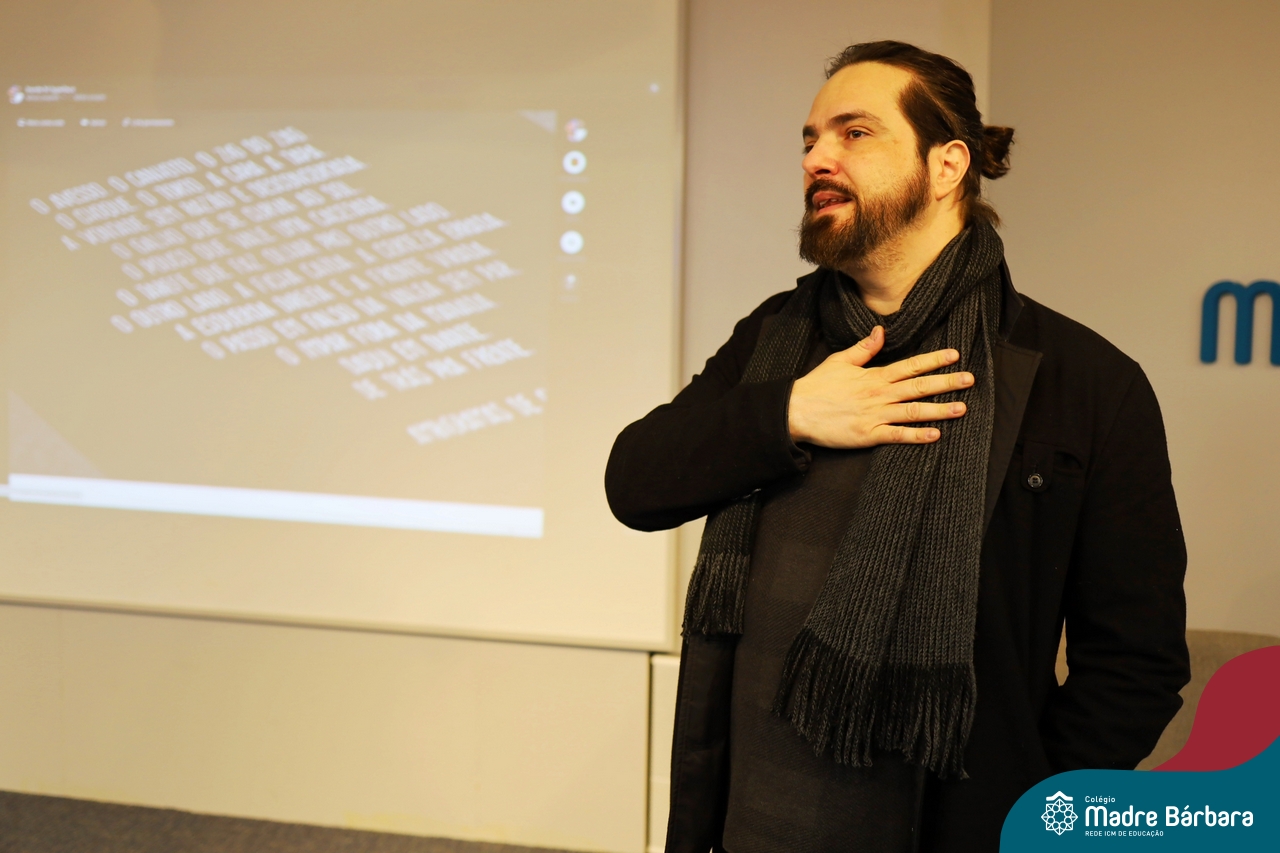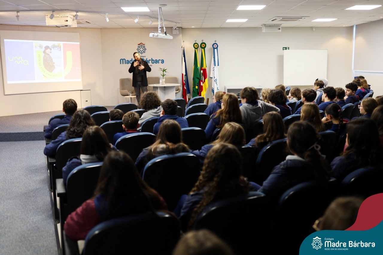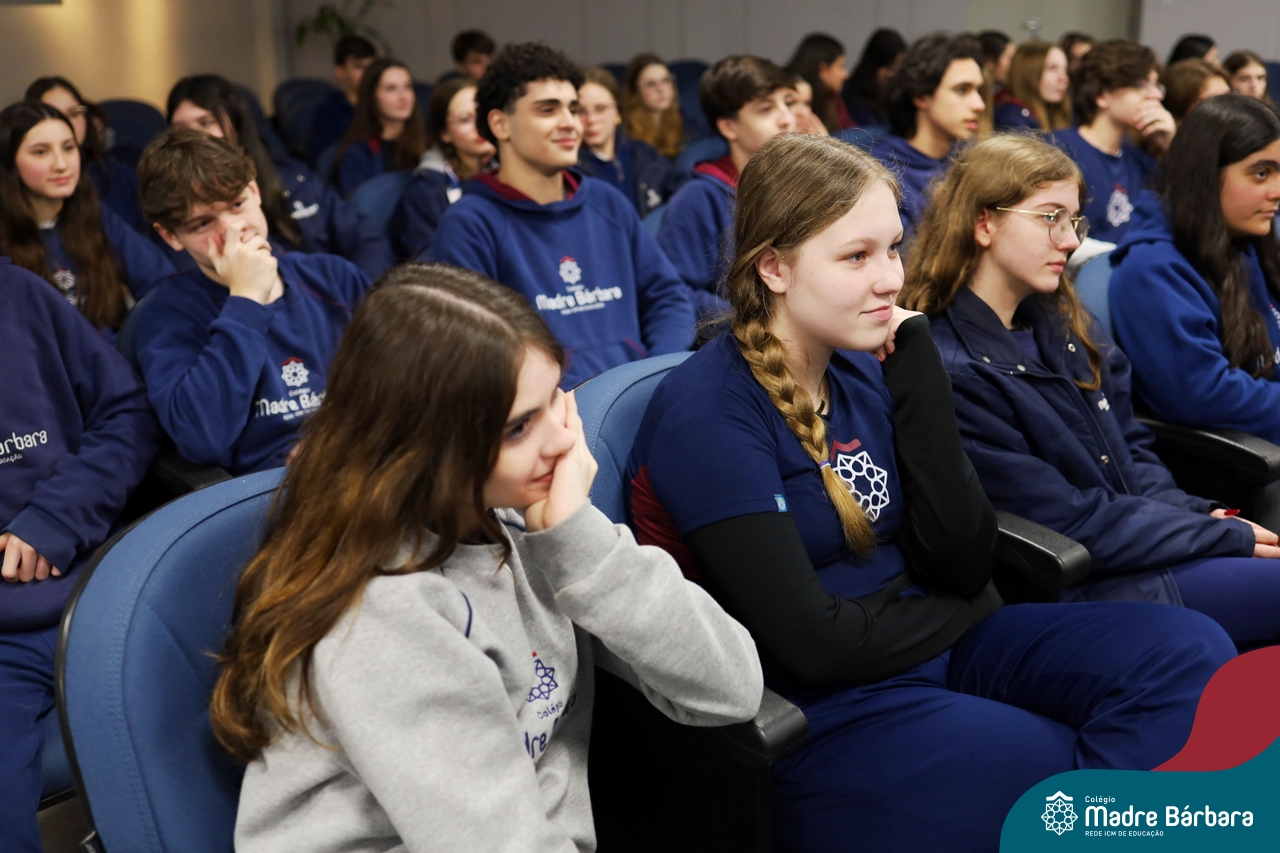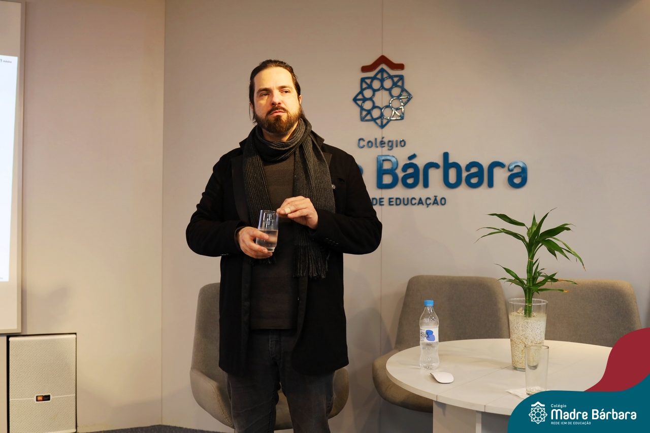 Os alunos do 9º ano do Ensino Fundamental tiveram a oportunidade de conhecer um pouco mais sobre o mundo do Design em uma palestra especial com o professor Rodrigo Brod, referência nacional e internacional na área. O bate-papo integrou as atividades da disciplina de Tecnologia e Inovação, ministrada pela professora Bruna Scheeren, que explora conceitos de design e incentiva os alunos a desenvolverem seu olhar criativo e crítico para os desafios do presente e do futuro.