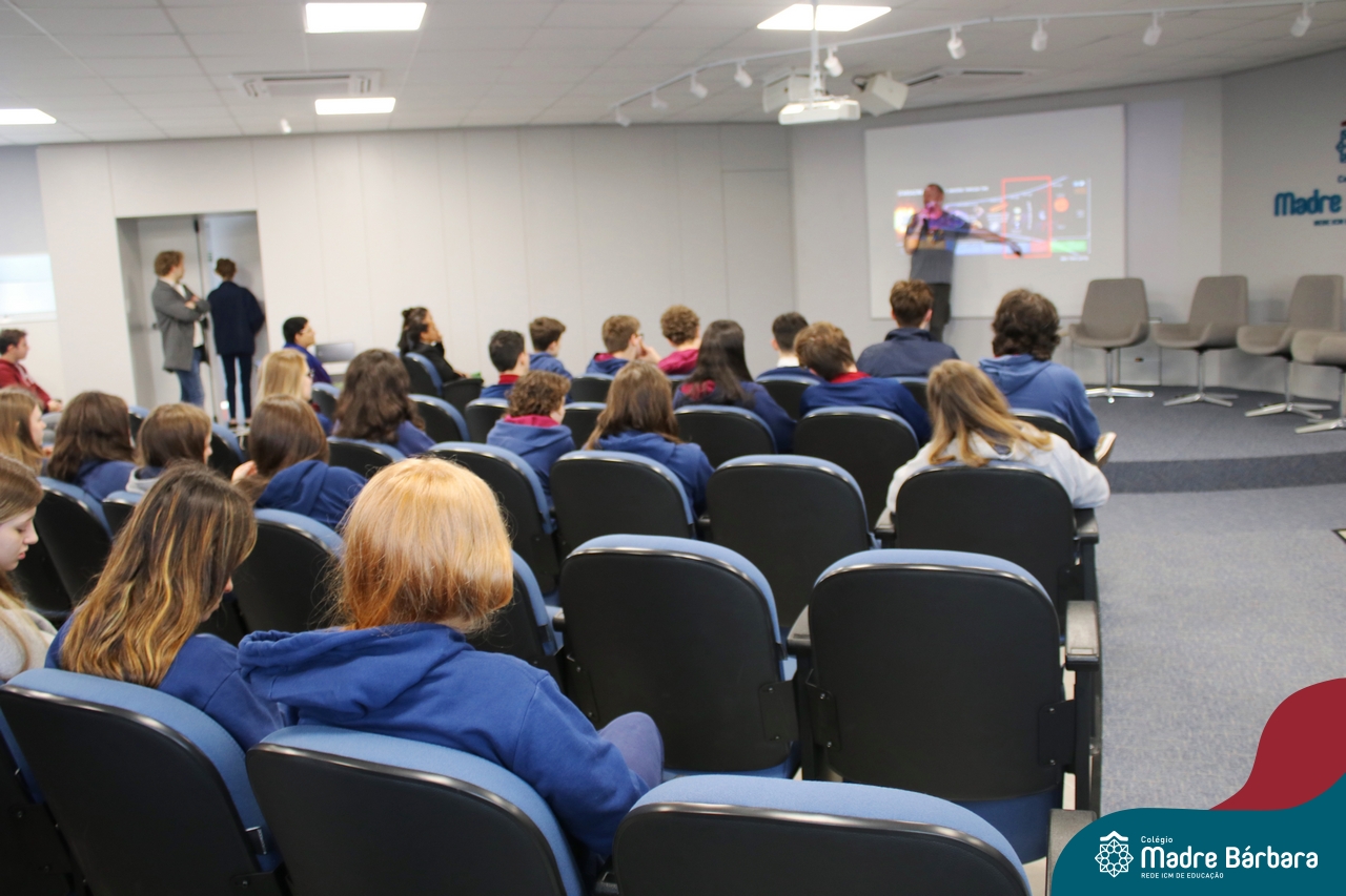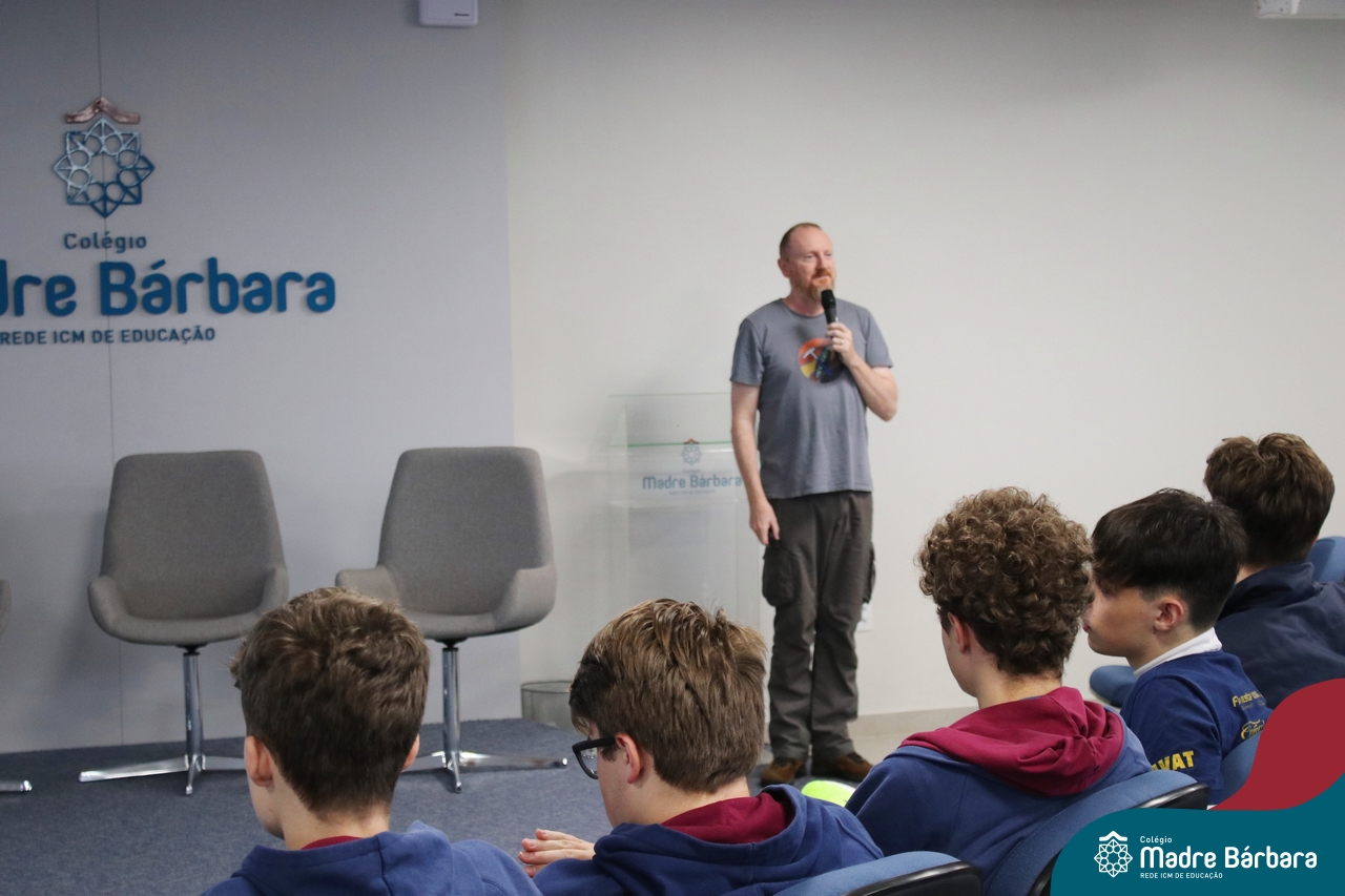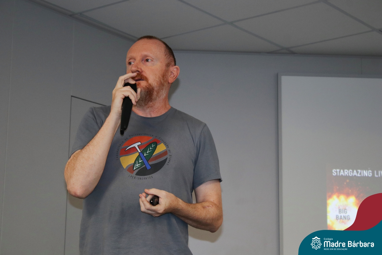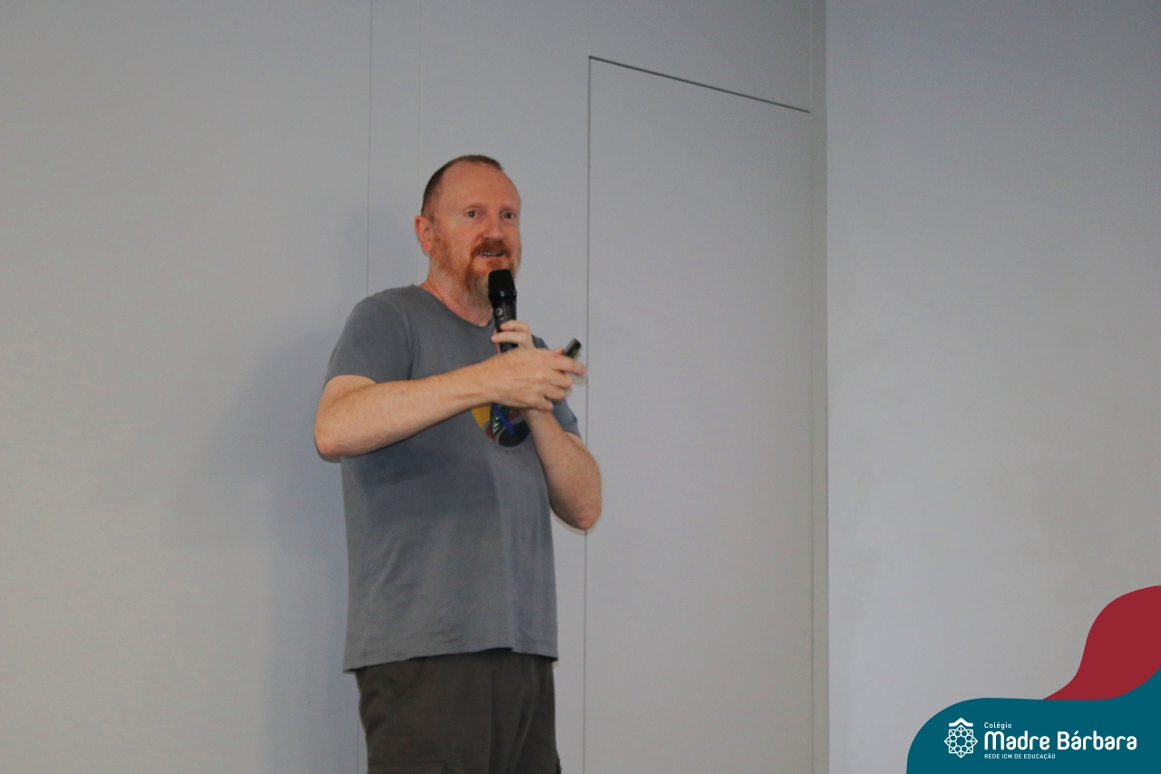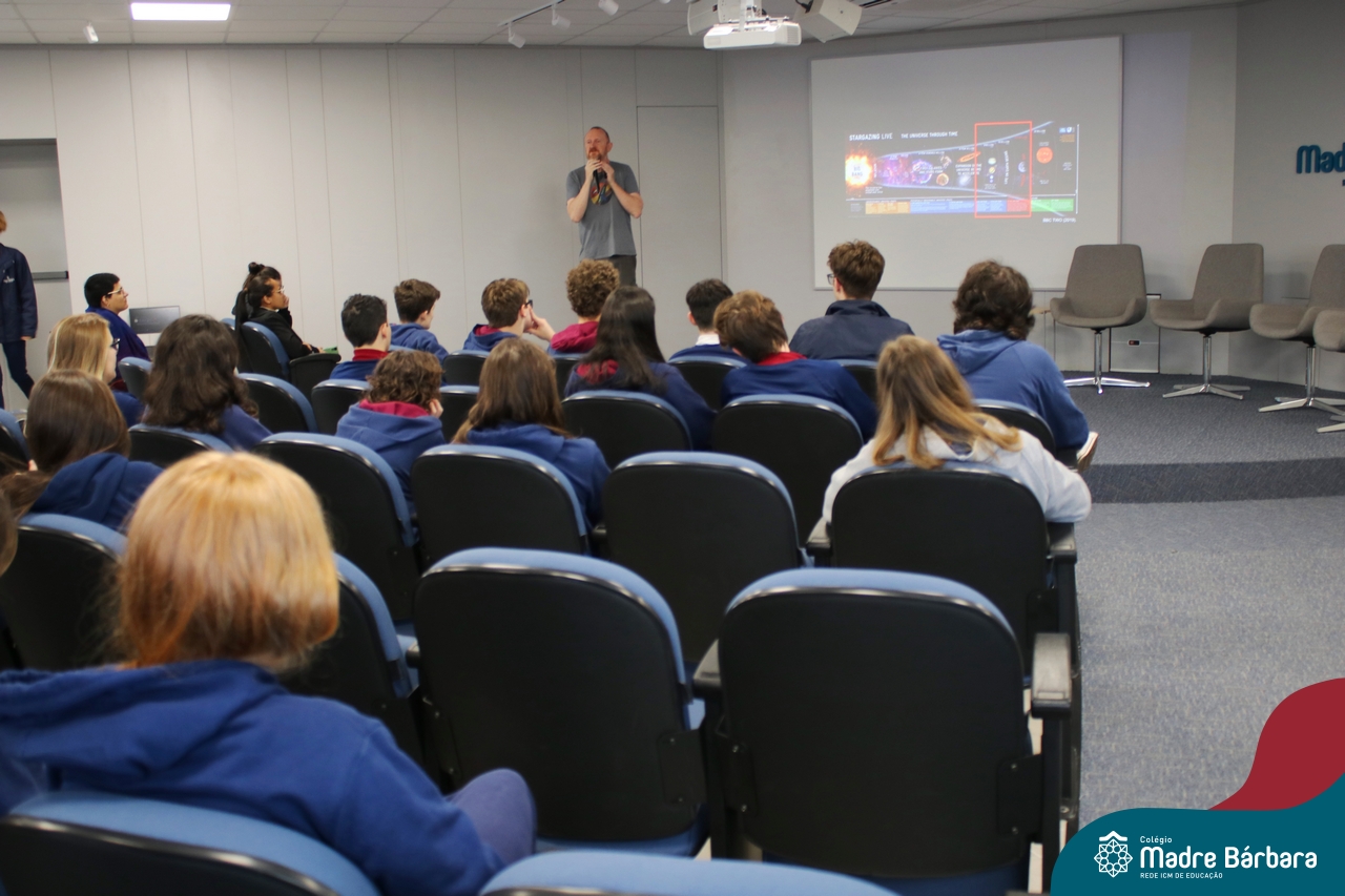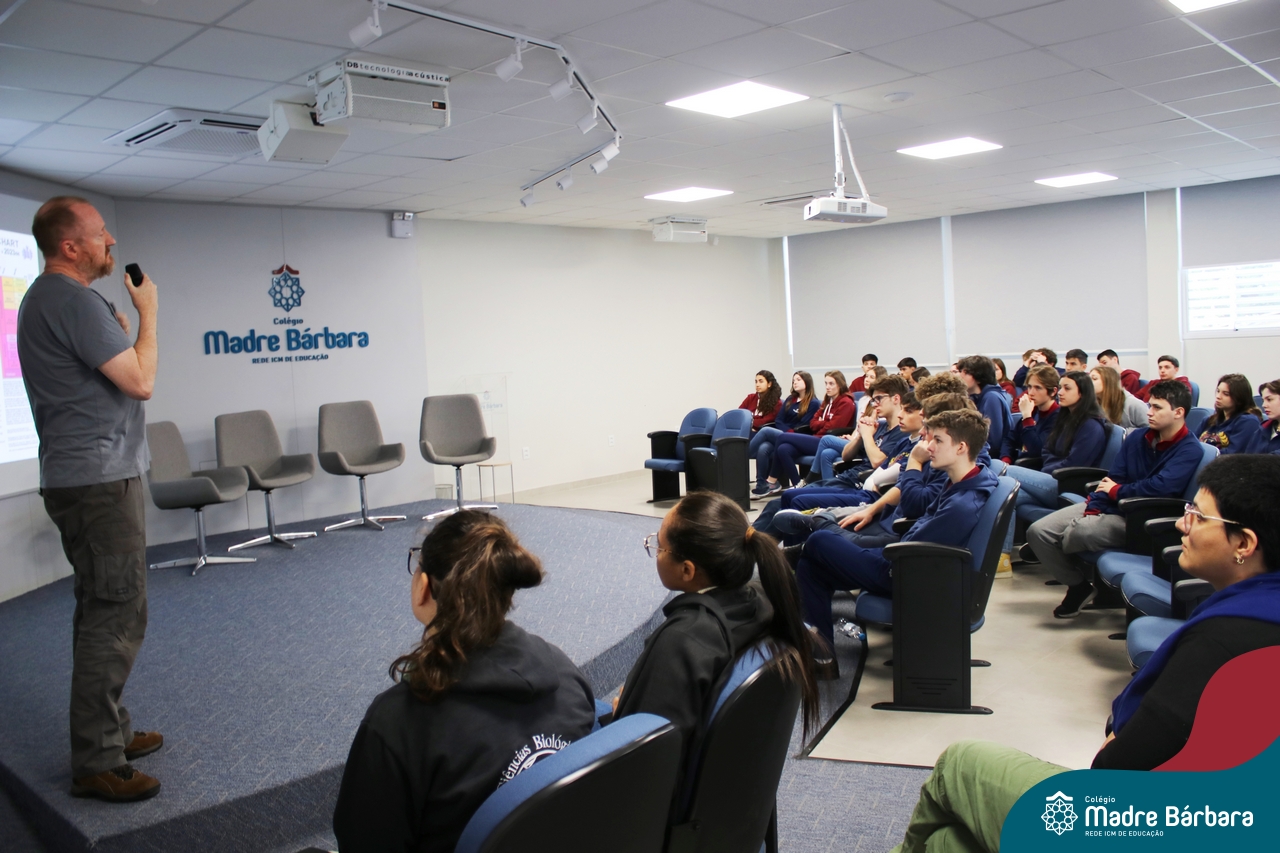 Dando sequência as atividades de abertura da Semana da Pátria, na manhã desta sexta-feira (01.09) o Colégio Madre Bárbara – Rede ICM recebeu a presença do Doutor em Geociências, professor da Univates, André Jasper, para conversar com as turmas de 2ºs e 3ºs anos do Ensino Médio sobre “Os Sistemas e os Ciclos (Paleo)Ambientais”.