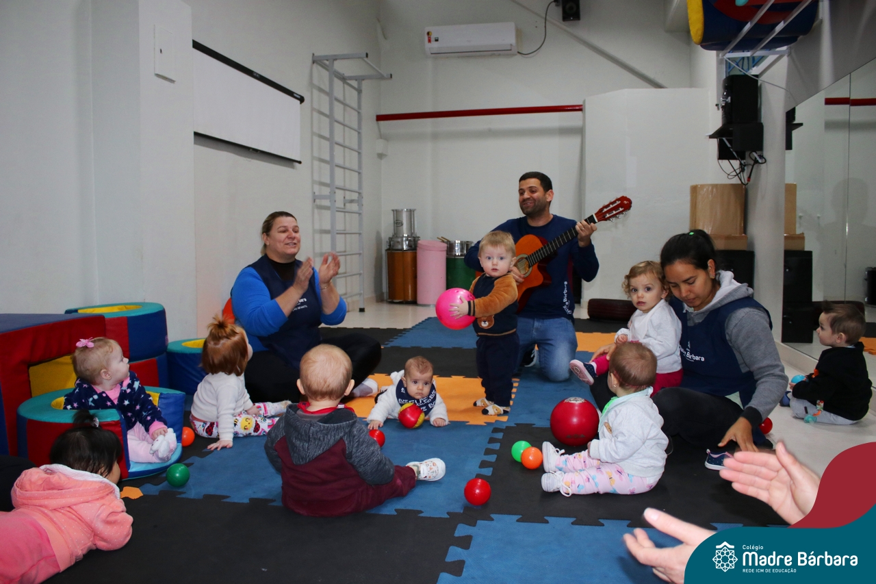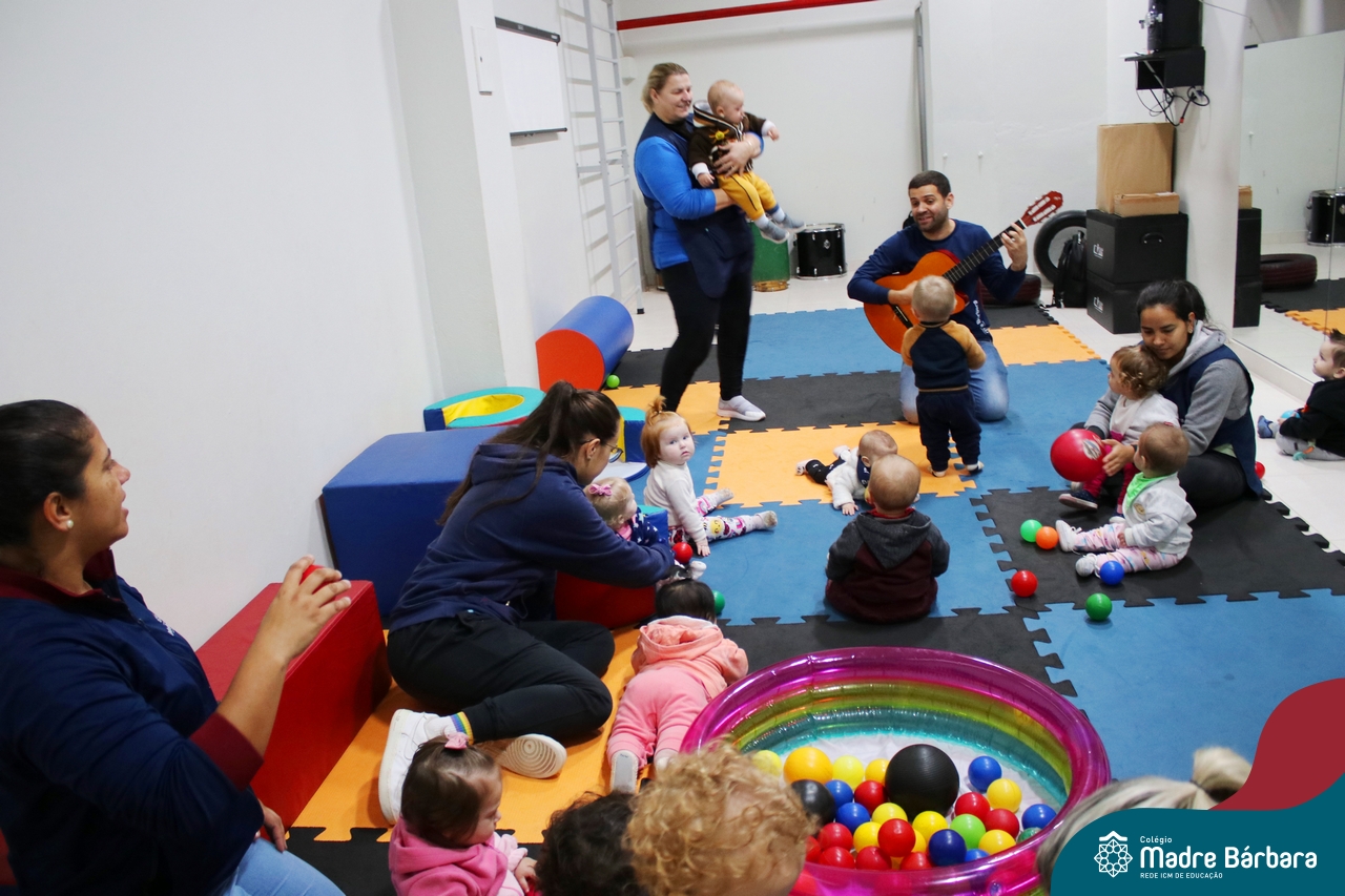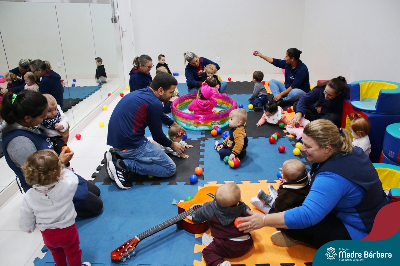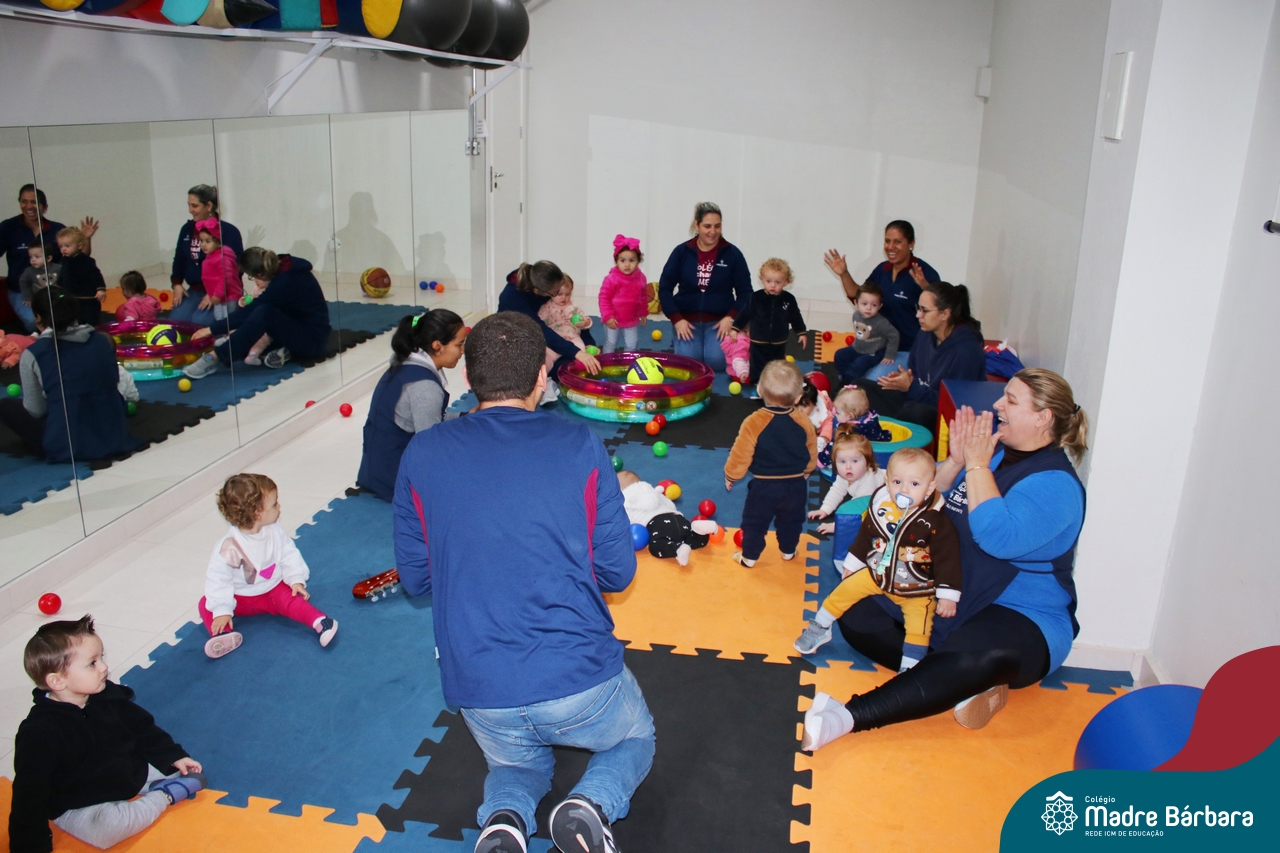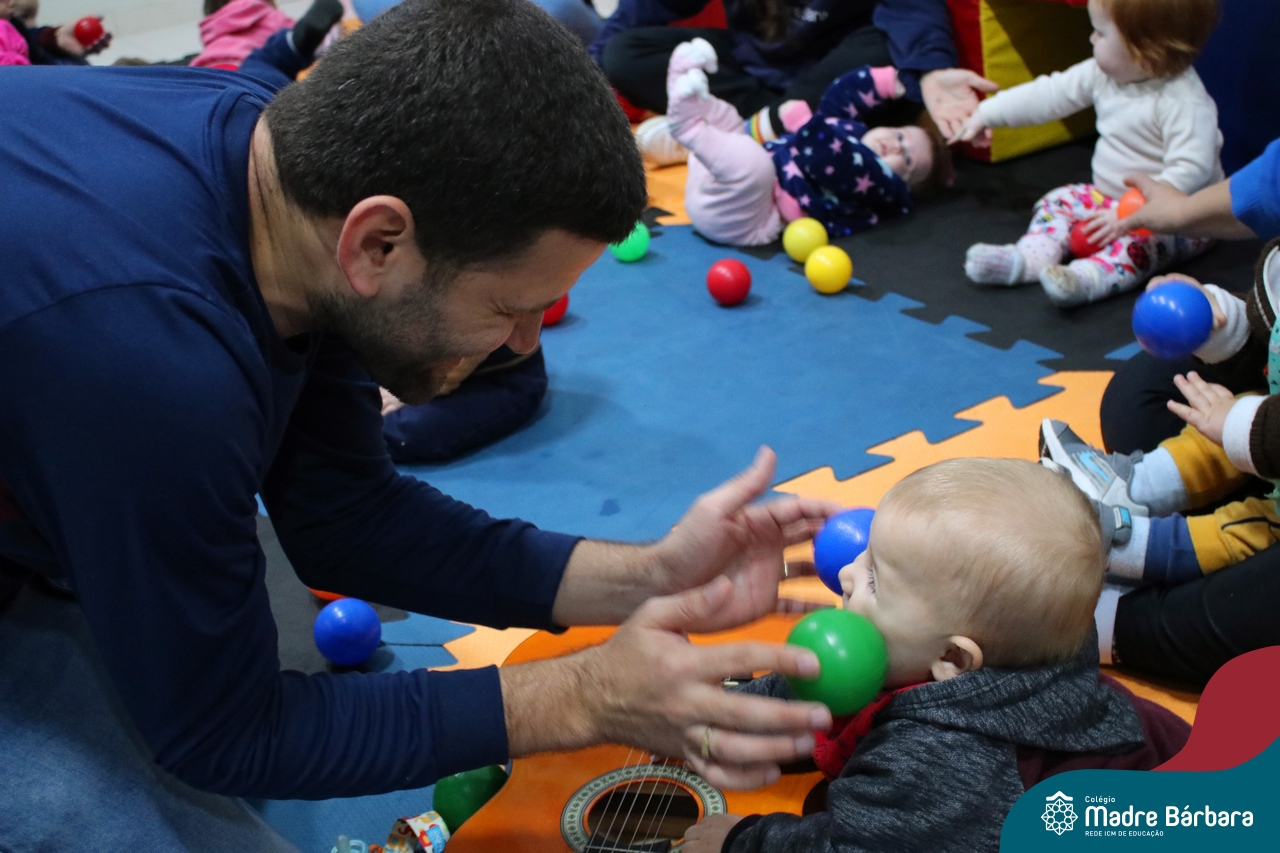 Com o intuito de contribuir com o desenvolvimento infantil através da música, que está diretamente relacionada à introdução da sensibilidade, estimulando a memória, concentração, comunicação e expressão corporal, os Níveis 1A e 1B juntamente com os professores: Rossete Rockenbach, Simone dos Santos, Deise Pereira e Marta Lorde, em parceria com o professor especialista Gilson Chacon proporcionaram uma linda vivência envolvendo bolas e a música. A situação aconteceu na quarta-feira, dia 12.07, despertando ainda mais o interesse por esta linguagem! Foi um momento de magia e encantamento para os pequenos, além de ser uma forma fantástica de brincar e se divertir.