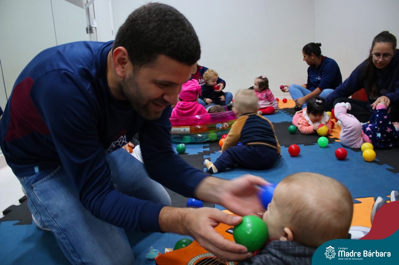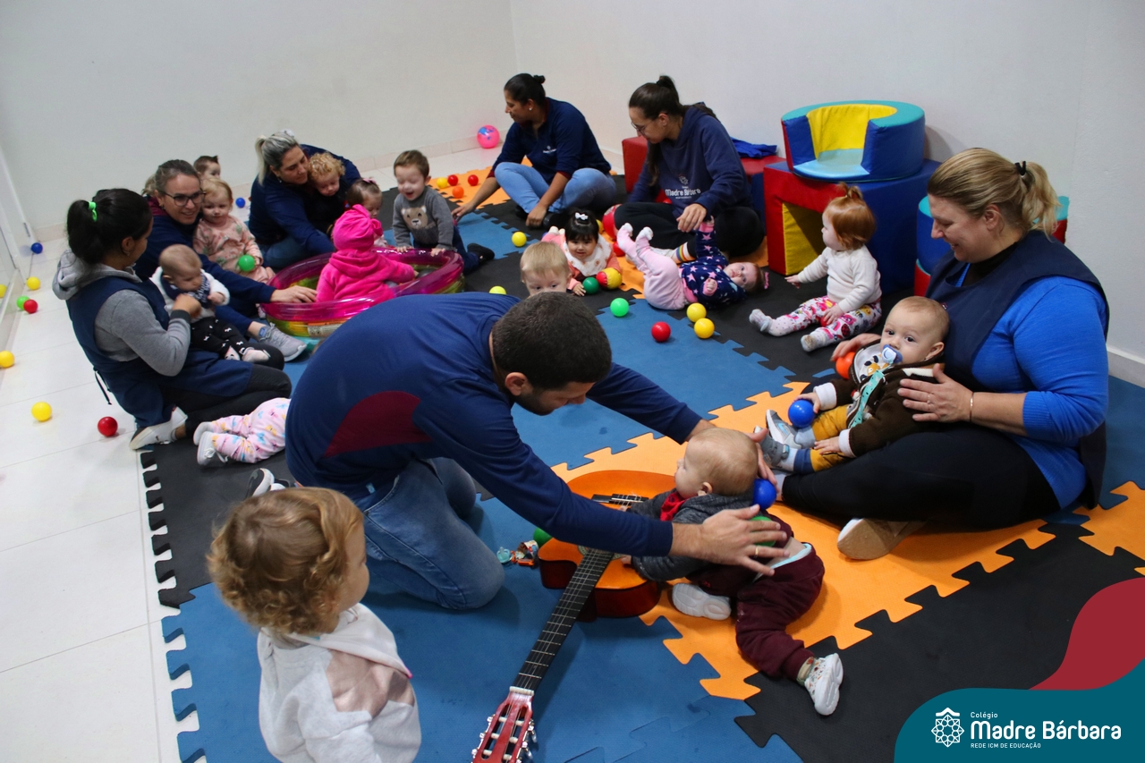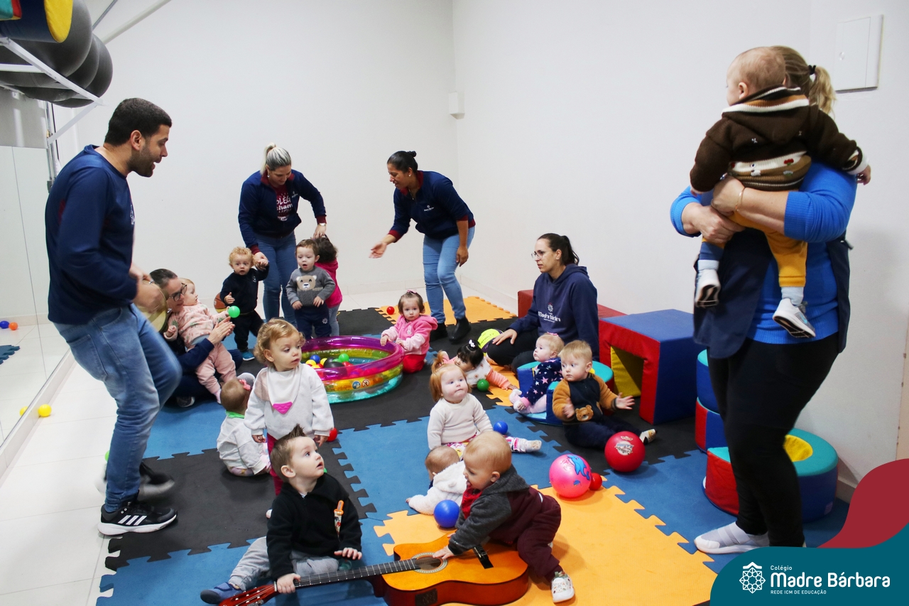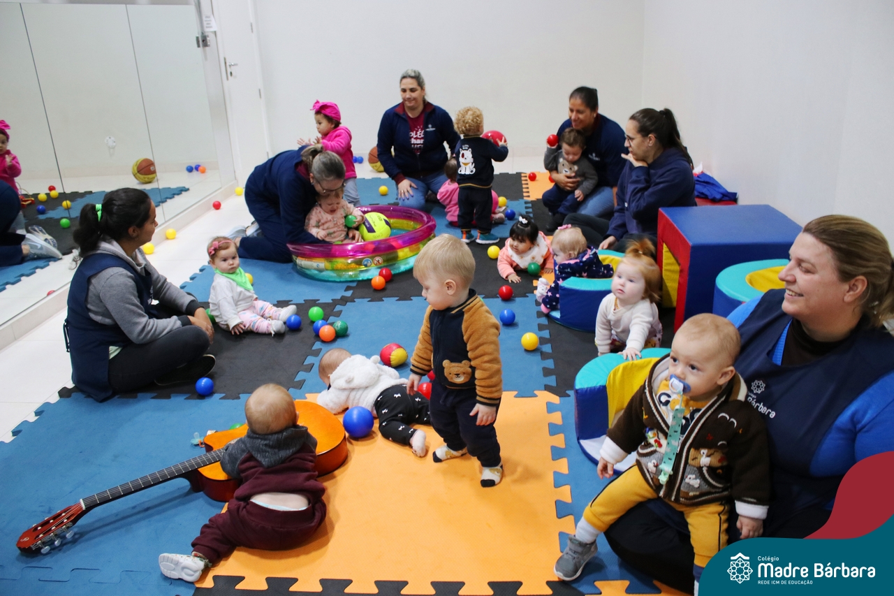 Com o intuito de contribuir com o desenvolvimento infantil através da música, que está diretamente relacionada à introdução da sensibilidade, estimulando a memória, concentração, comunicação e expressão corporal, os Níveis 1A e 1B juntamente com os professores: Rossete Rockenbach, Simone dos Santos, Deise Pereira e Marta Lorde, em parceria com o professor especialista Gilson Chacon proporcionaram uma linda vivência envolvendo bolas e a música. A situação aconteceu na quarta-feira, dia 12.07, despertando ainda mais o interesse por esta linguagem! Foi um momento de magia e encantamento para os pequenos, além de ser uma forma fantástica de brincar e se divertir.
