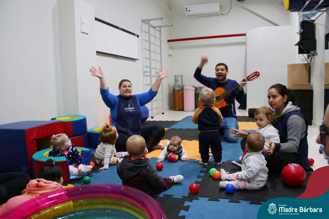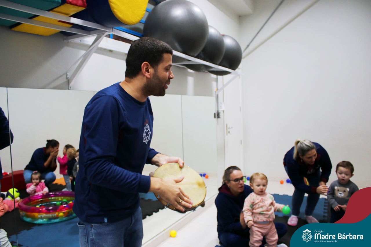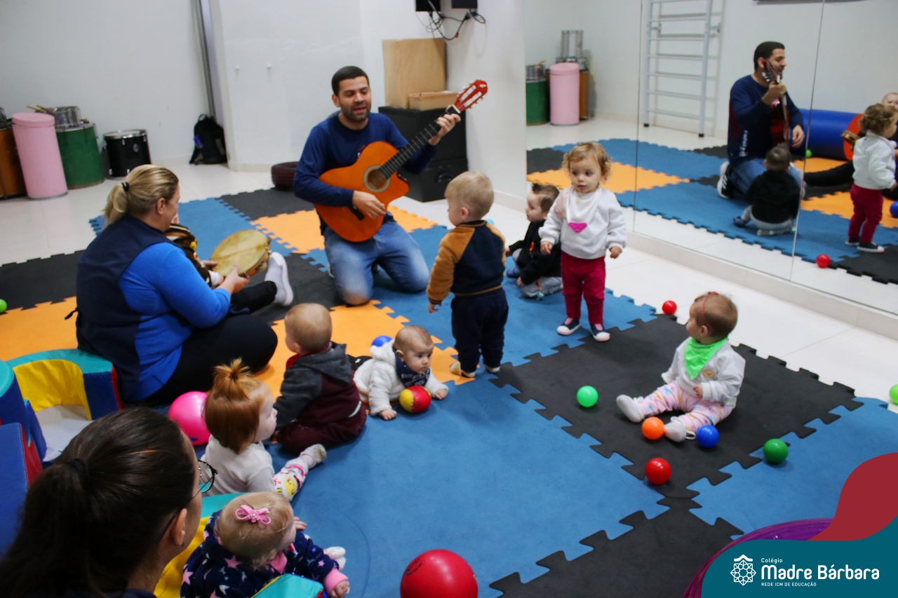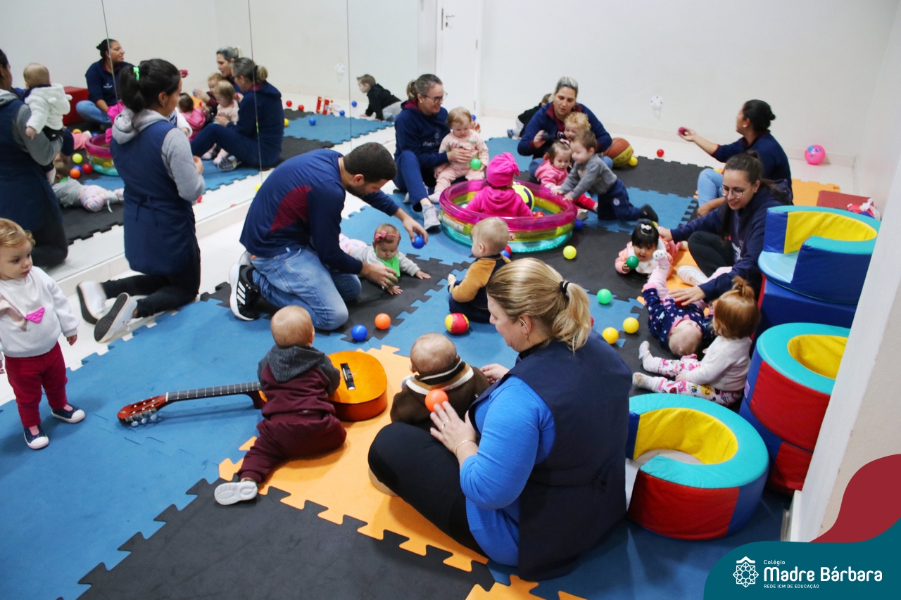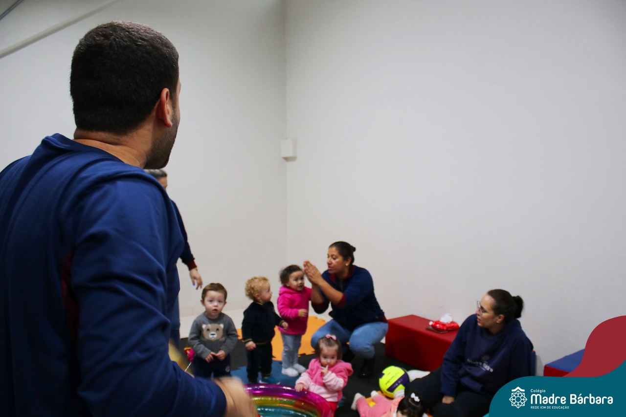 Com o intuito de contribuir com o desenvolvimento infantil através da música, que está diretamente relacionada à introdução da sensibilidade, estimulando a memória, concentração, comunicação e expressão corporal, os Níveis 1A e 1B juntamente com os professores: Rossete Rockenbach, Simone dos Santos, Deise Pereira e Marta Lorde, em parceria com o professor especialista Gilson Chacon proporcionaram uma linda vivência envolvendo bolas e a música. A situação aconteceu na quarta-feira, dia 12.07, despertando ainda mais o interesse por esta linguagem! Foi um momento de magia e encantamento para os pequenos, além de ser uma forma fantástica de brincar e se divertir.