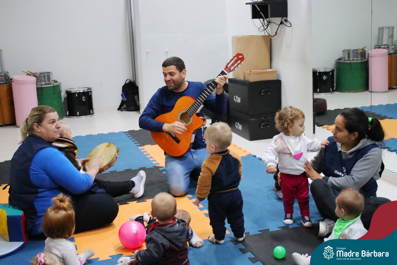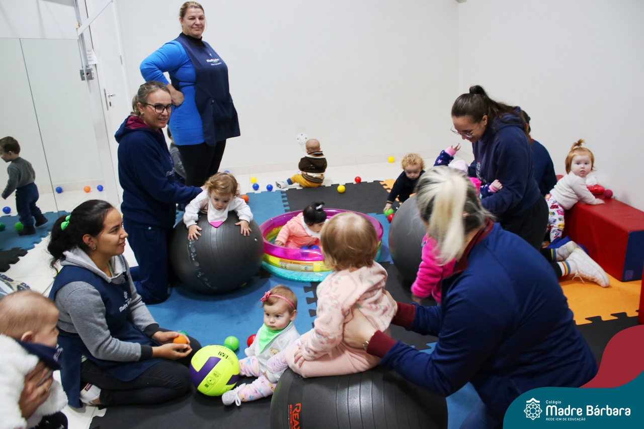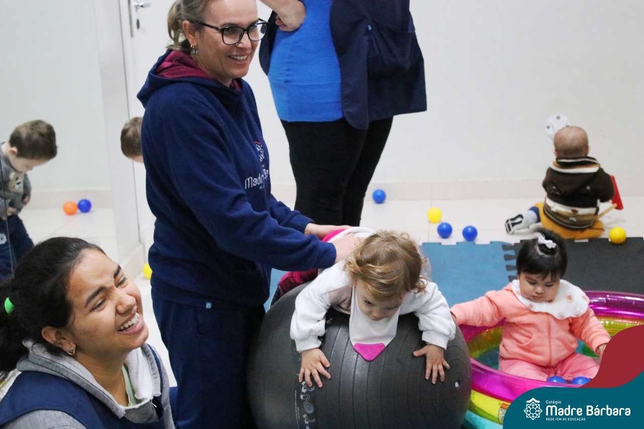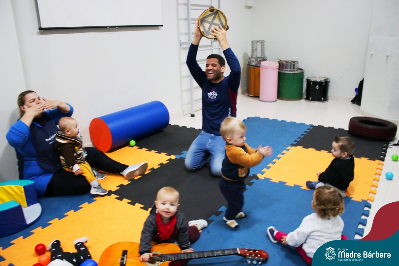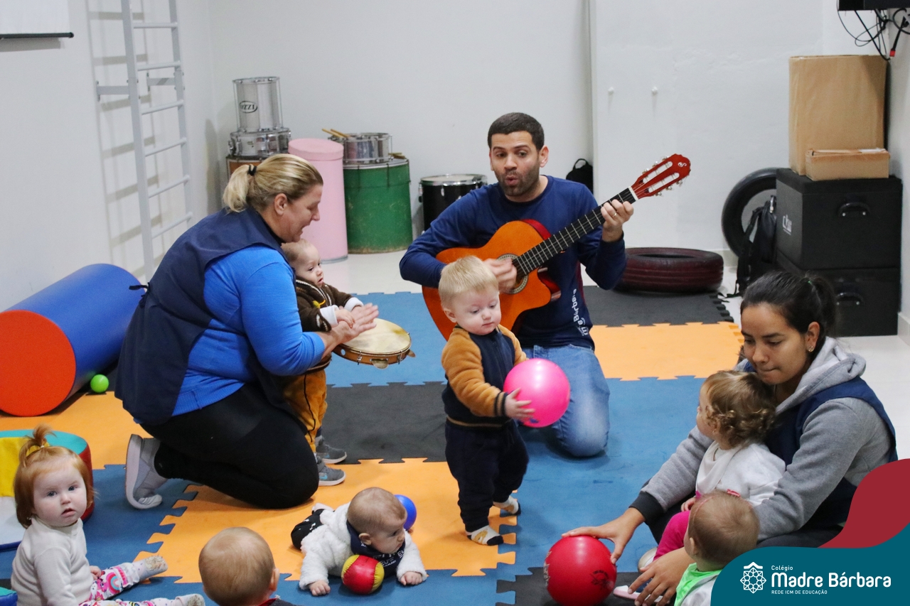 Com o intuito de contribuir com o desenvolvimento infantil através da música, que está diretamente relacionada à introdução da sensibilidade, estimulando a memória, concentração, comunicação e expressão corporal, os Níveis 1A e 1B juntamente com os professores: Rossete Rockenbach, Simone dos Santos, Deise Pereira e Marta Lorde, em parceria com o professor especialista Gilson Chacon proporcionaram uma linda vivência envolvendo bolas e a música. A situação aconteceu na quarta-feira, dia 12.07, despertando ainda mais o interesse por esta linguagem! Foi um momento de magia e encantamento para os pequenos, além de ser uma forma fantástica de brincar e se divertir.
