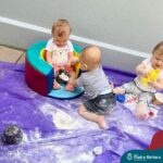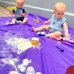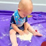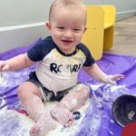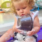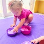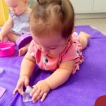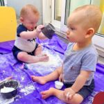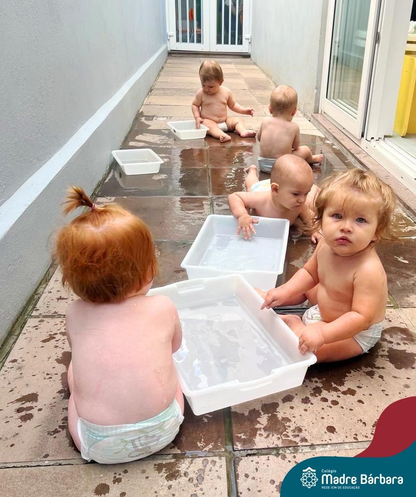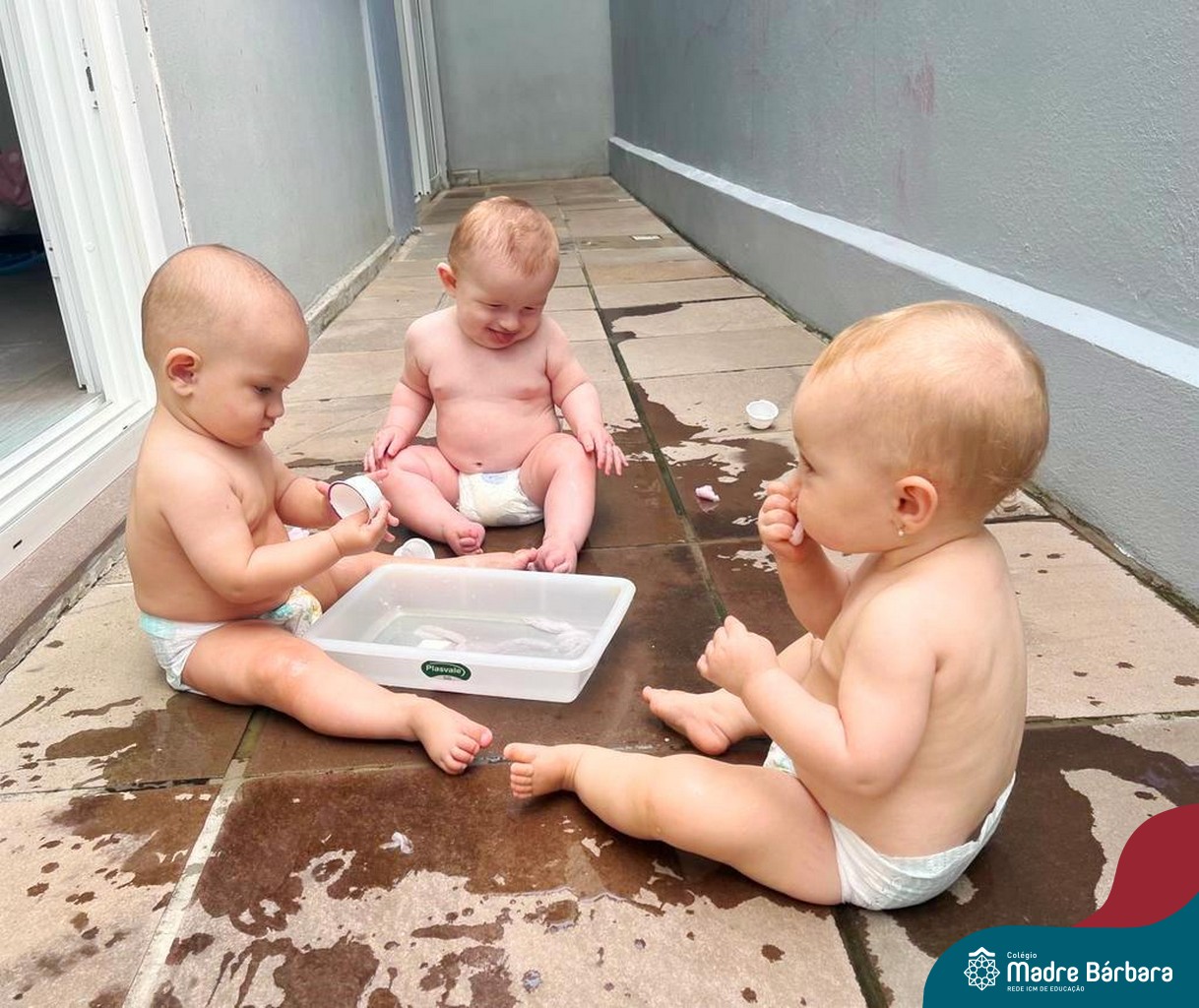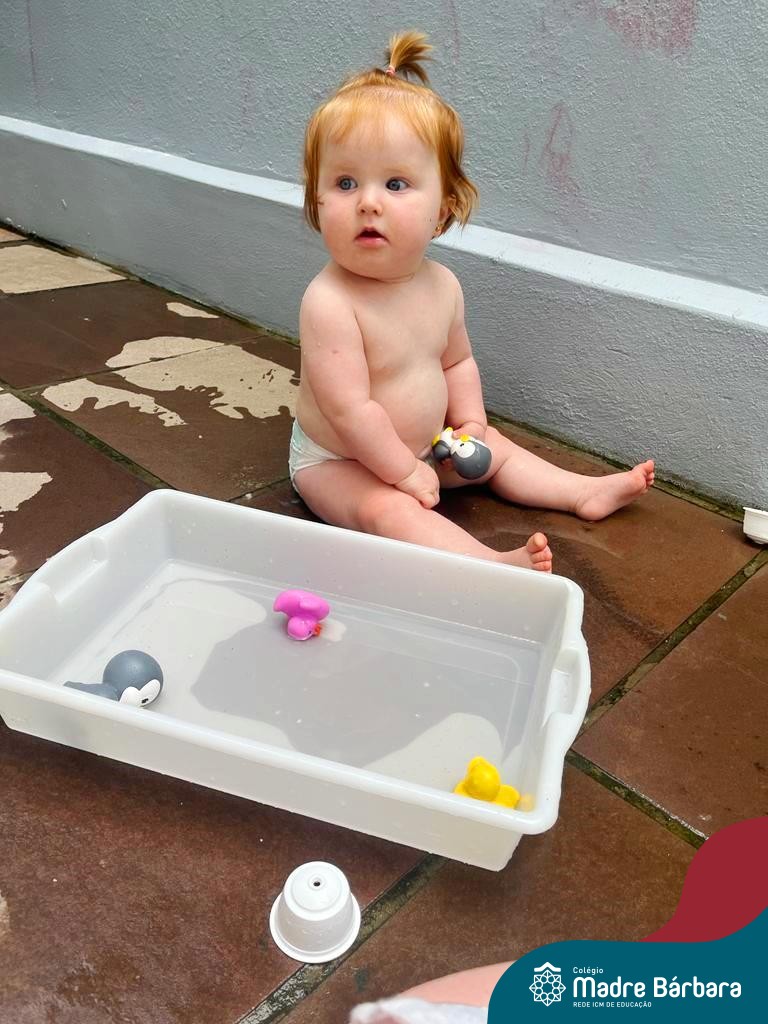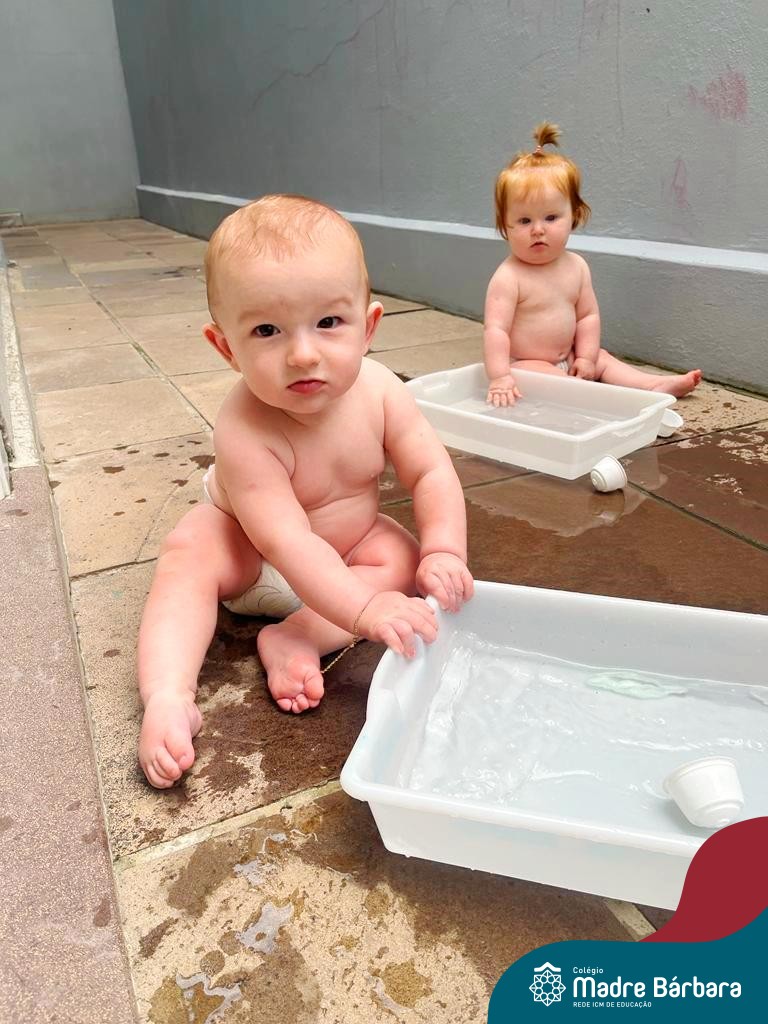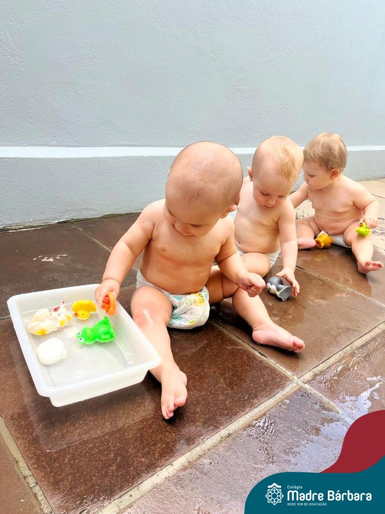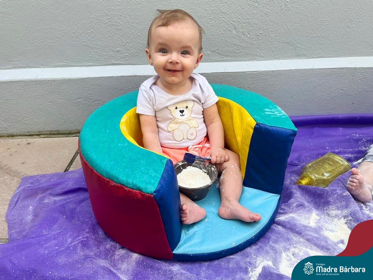 Nas últimas duas semana os bebês do Nível 1A – tarde vivenciaram prazerosos momentos de experimentações. As professoras Fernanda e Dayana proporcionaram três situações sensoriais envolvendo farinha, água e gelo. Os espaços convidativos fizeram com que os bebês se sentissem à vontade para explorar as diferentes texturas e temperaturas. Durante as vivências eles abraçaram as inúmeras possibilidades de exploração. Percebemos quanta riqueza existia em cada intenção de descobrir, interagir, pesquisar e se divertir.