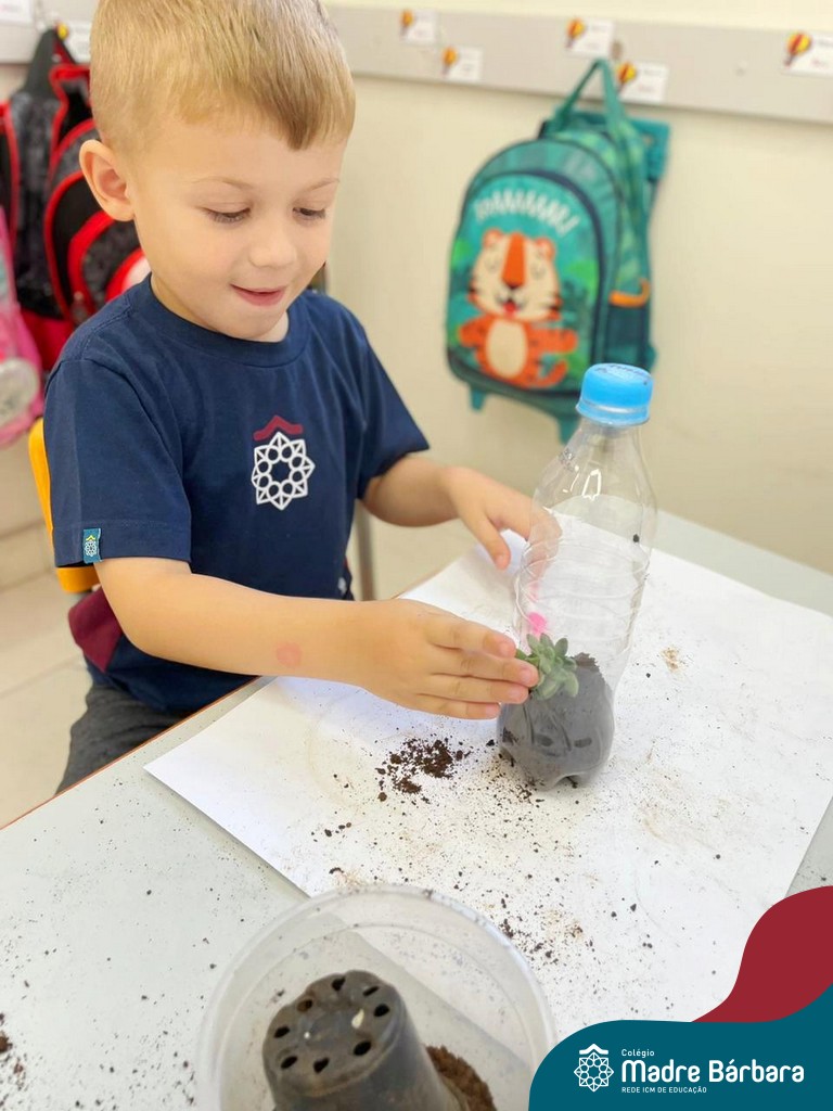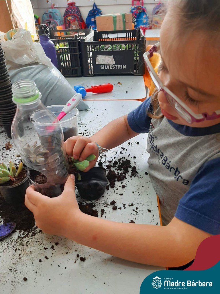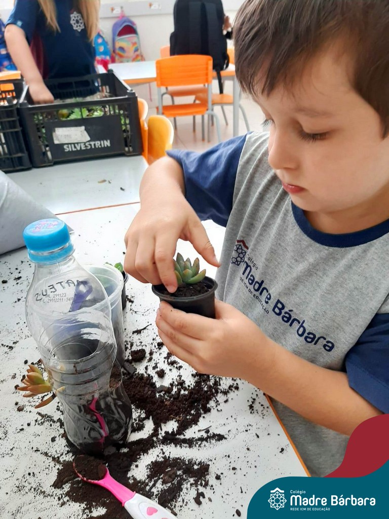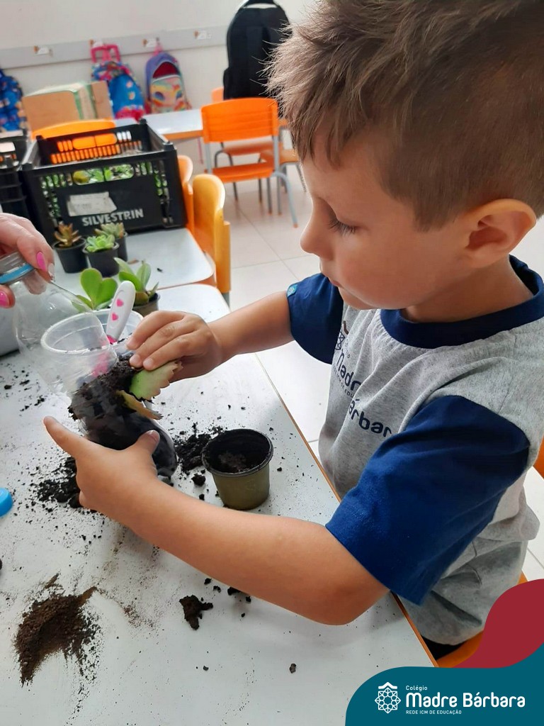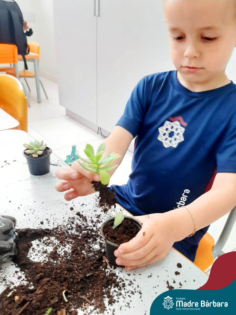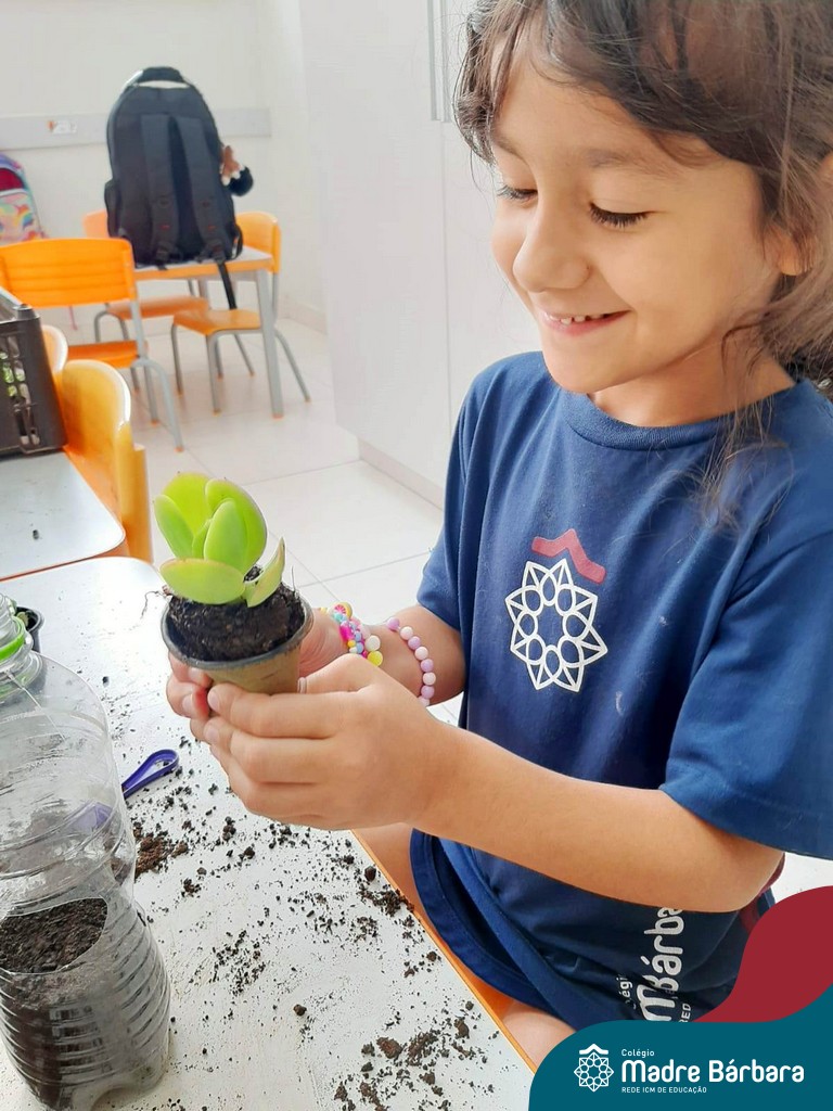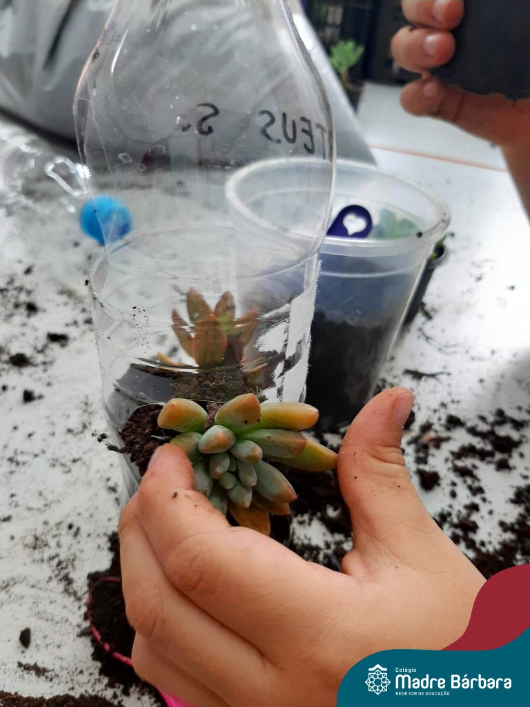 As suculentas são plantas que convertem ‘ares impuros’ em ar puro. É uma excelente planta para ter dentro de casa, assim como nos jardins. Não necessitam de muita água e fazem bem à saúde. As turmas do Turno Extracurricular Nível 4 (tarde) e Nível 4 e 5 (manhã), brincaram e exploraram desde o seu plantio, nervuras e texturas, aprendendo as formas de cuidar e alimentar sua planta.