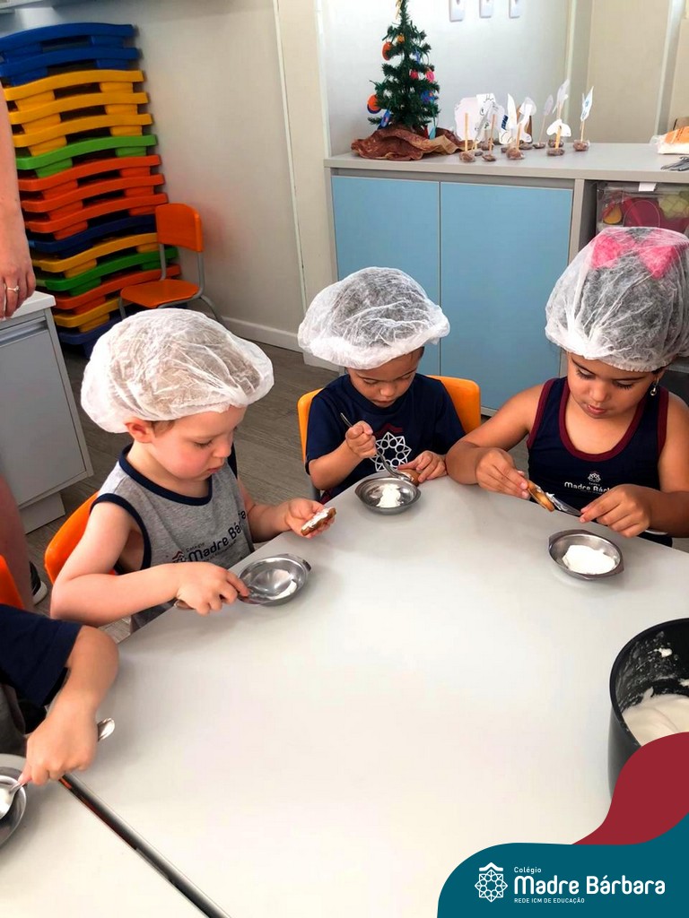 As turmas 2B e 2C manhã produziram biscoitos natalinos para entrar no clima de Natal. As crianças acompanharam e participaram da preparação dos mesmos com o propósito de realizar um momento especial para saborear e dividir com as suas famílias.
