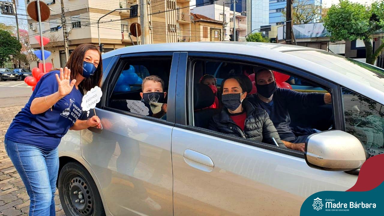 Na manhã e tarde de sábado (15.08) a equipe dos Anos Iniciais do Colégio Madre Bárbara – Rede ICM realizou a Blitz da Liderança para os alunos com o objetivo de comemorar o Dia do Estudante e presenteá-los com uma lembrança. Foi momento de reencontro, emoção e muita alegria entre alunos, famílias, professores, Irmãs e equipe diretiva. Além da Blitz, as turmas dos 3ºs anos realizaram o Rally Literário “Missão Líder Leitor” lançando o Projeto de Leitura das turmas. Os alunos precisavam desvendar enigmas pela cidade, passando pela Biblioteca da Univates e Biblioteca Pública Municipal, até chegarem ao Madre Bárbara e receberem livros para leitura.