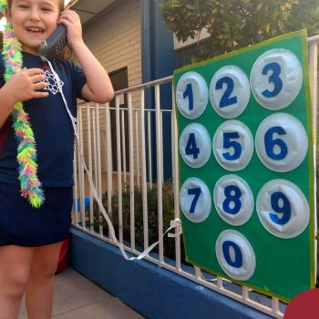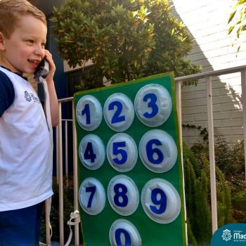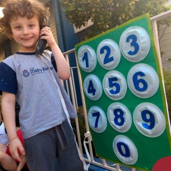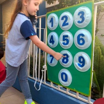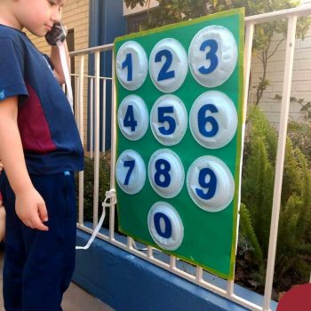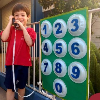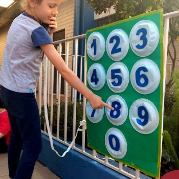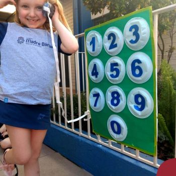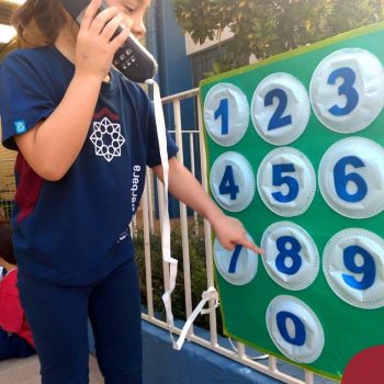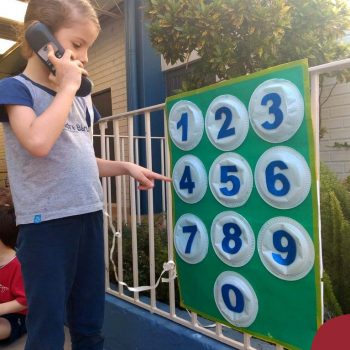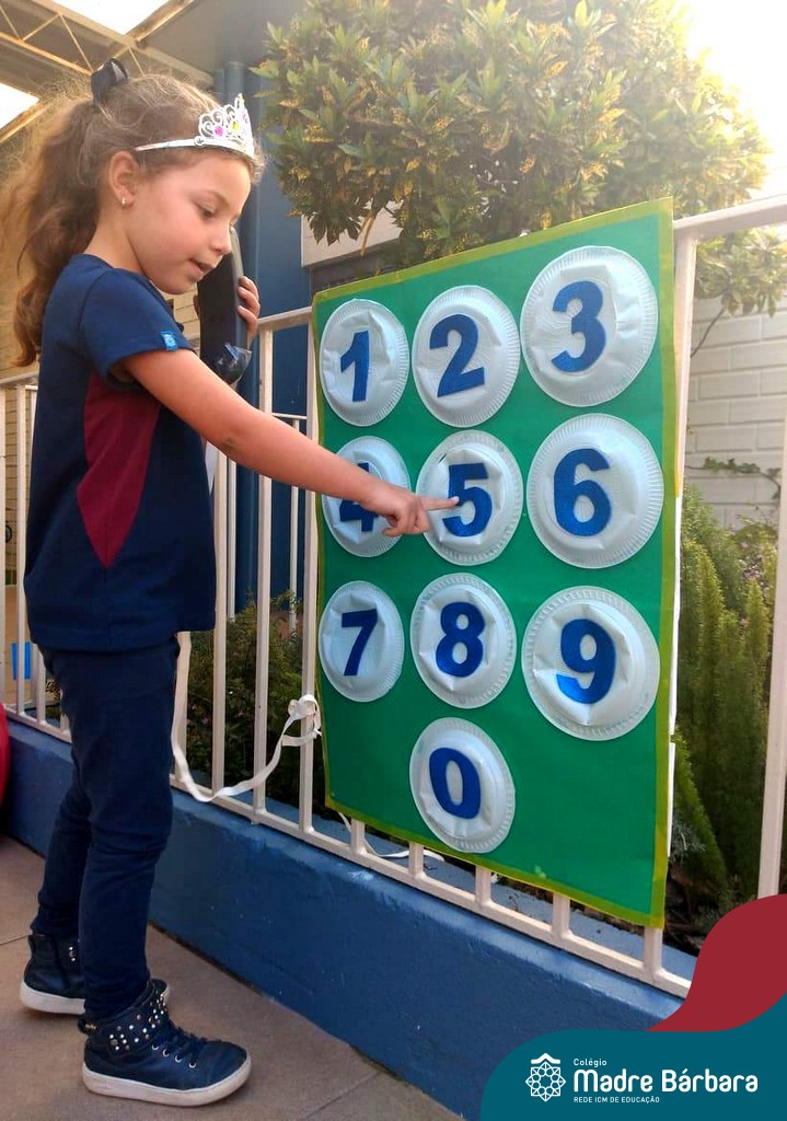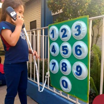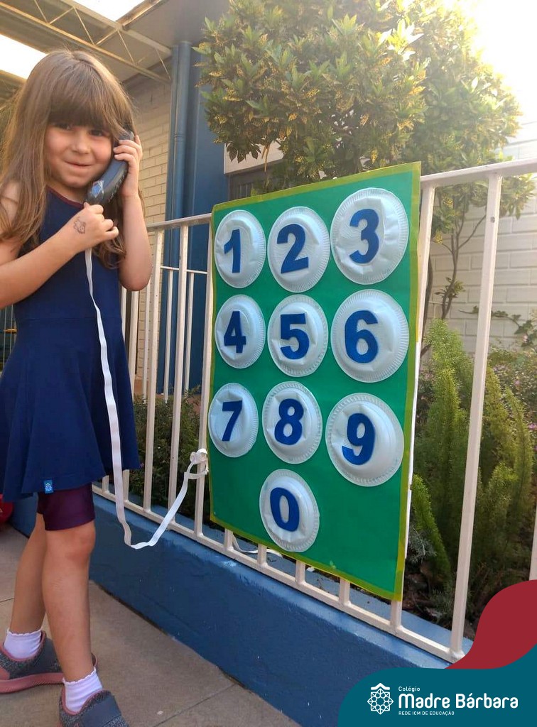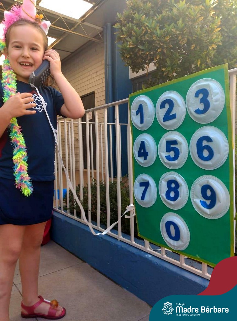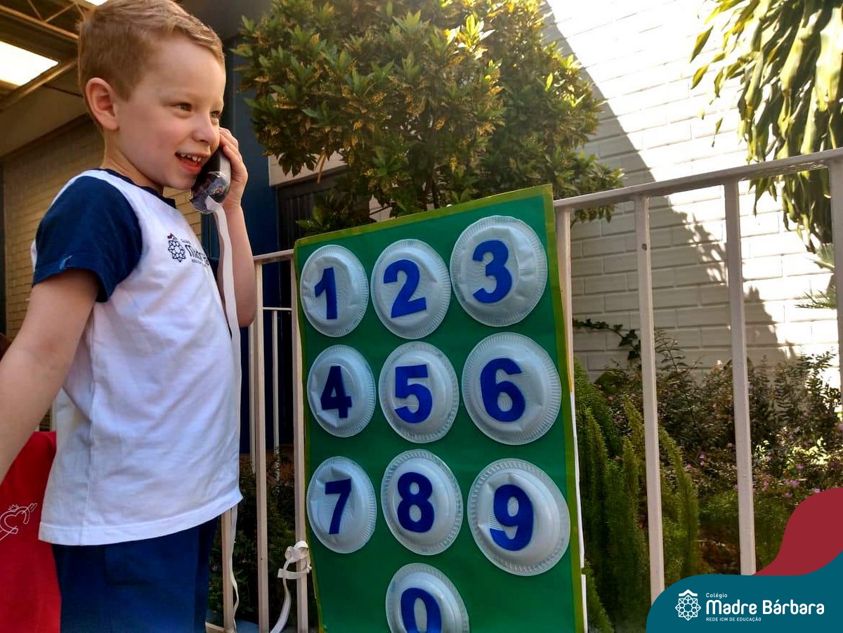 As crianças do nível 4C juntamente com a professora Fabiele e as monitoras Bruna e Mariana realizaram uma brincadeira muito divertida em um “telefone gigante”. Com o intuito de trabalhar os numerais e a oralidade, cada criança, com o auxílio da professora, “discou” o número de algum familiar, desenvolvendo assim, o reconhecimento numérico. Também, foram realizadas outras possibilidades de explorar o telefone, priorizando a aprendizagem dos números de maneira lúdica e divertida.