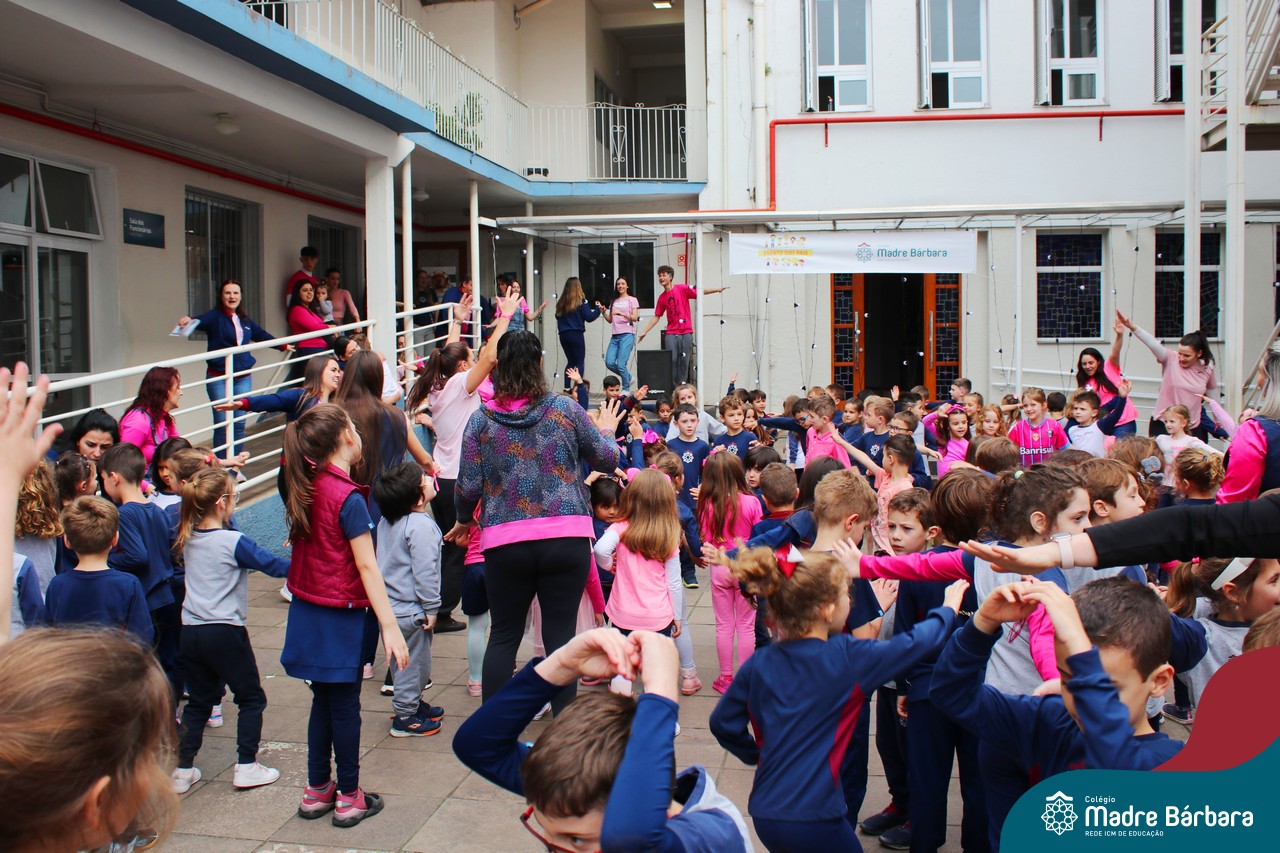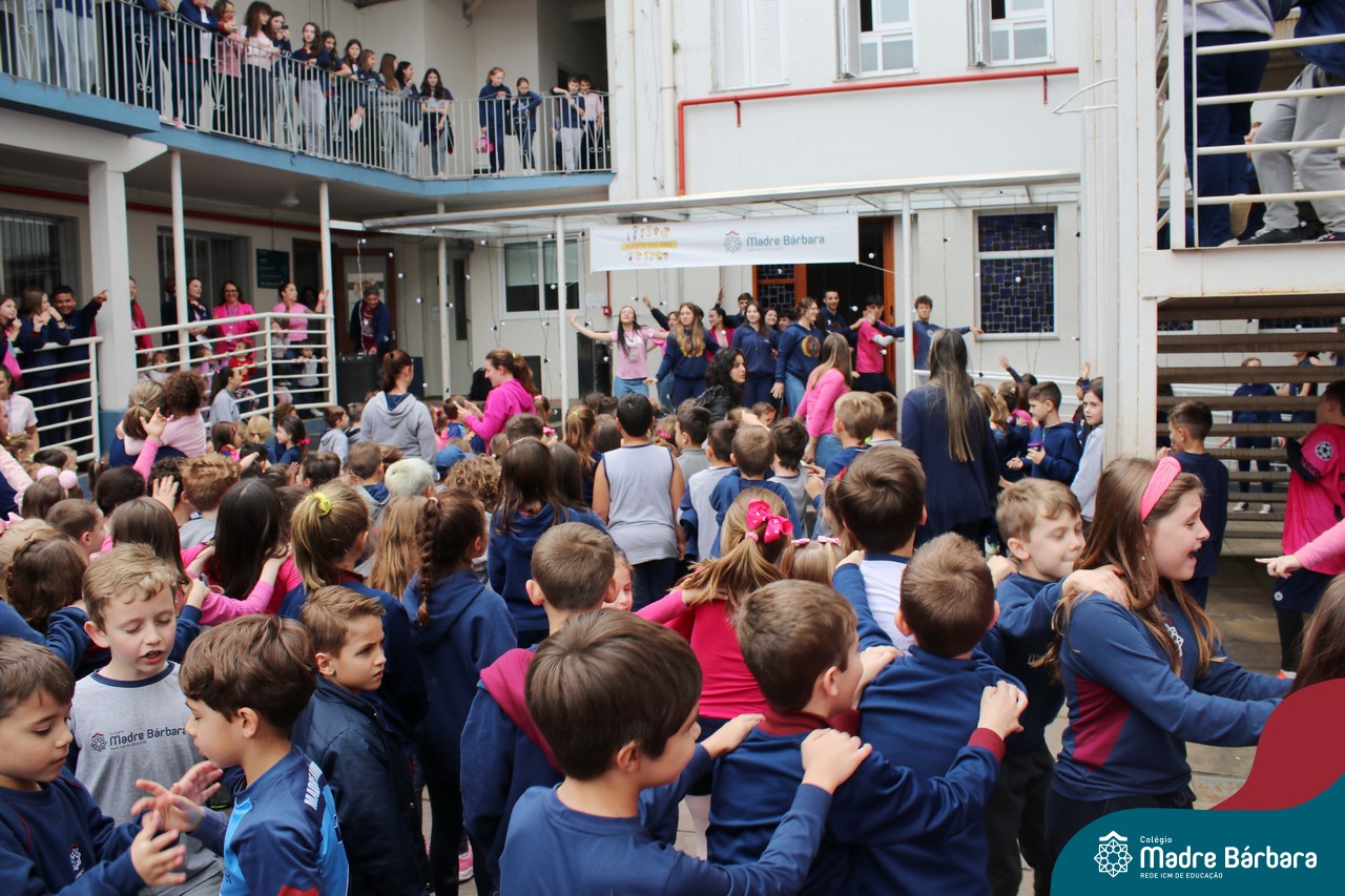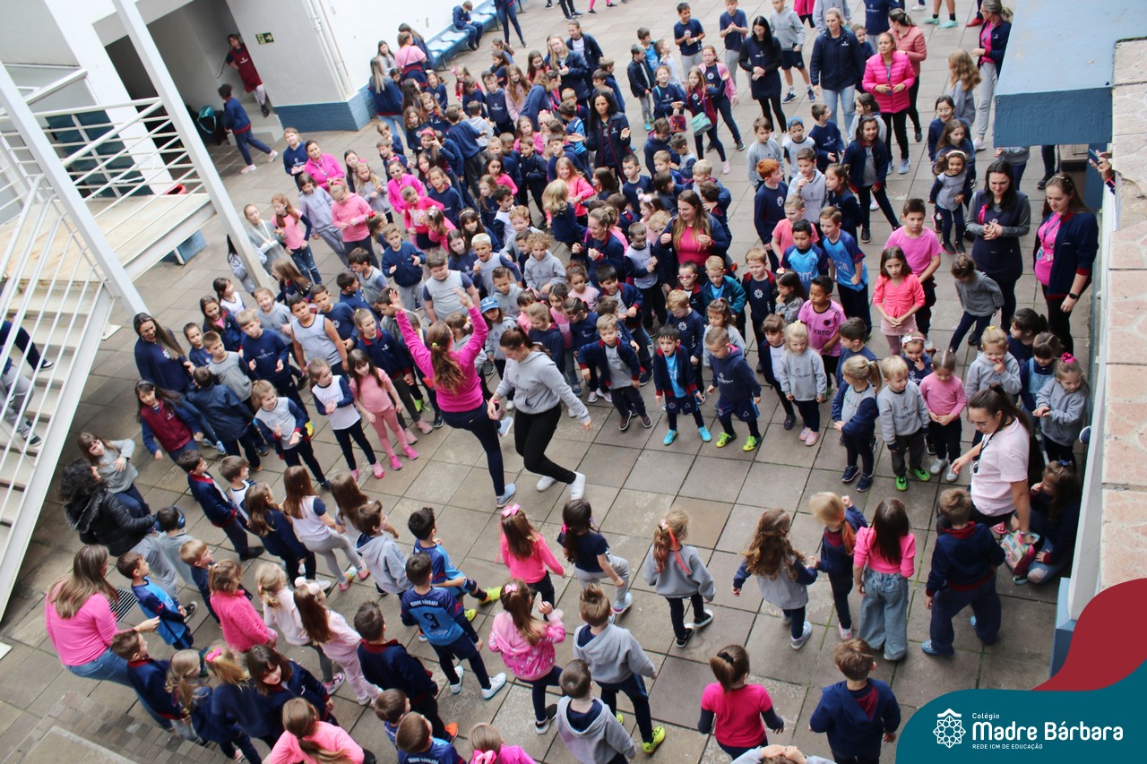Ainda dentro da Programação do Mês das Crianças, o Serviço de Pastoral Escolar, o Grêmio Estudantil e as turmas dos Níveis 5, estiveram organizando um flash mob para fazer as crianças e jovens se movimentarem. A atividade contou com a apresentação em dança da música “Superfantástico” e “Lindo Balão Azul”. O encontro ocorreu no turno da manhã e da tarde. Agradecemos o envolvimento dos organizadores e participação dos estudantes.