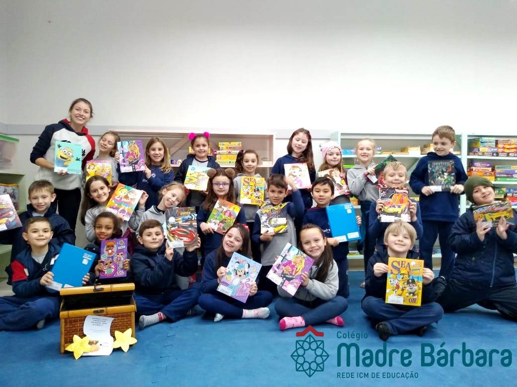 Com muita Sinergia o grupo realizou os desafios, que os levou ao Baú do Tesouro. Para surpresa deles junto ao baú estavam os cadernos de caligrafia.