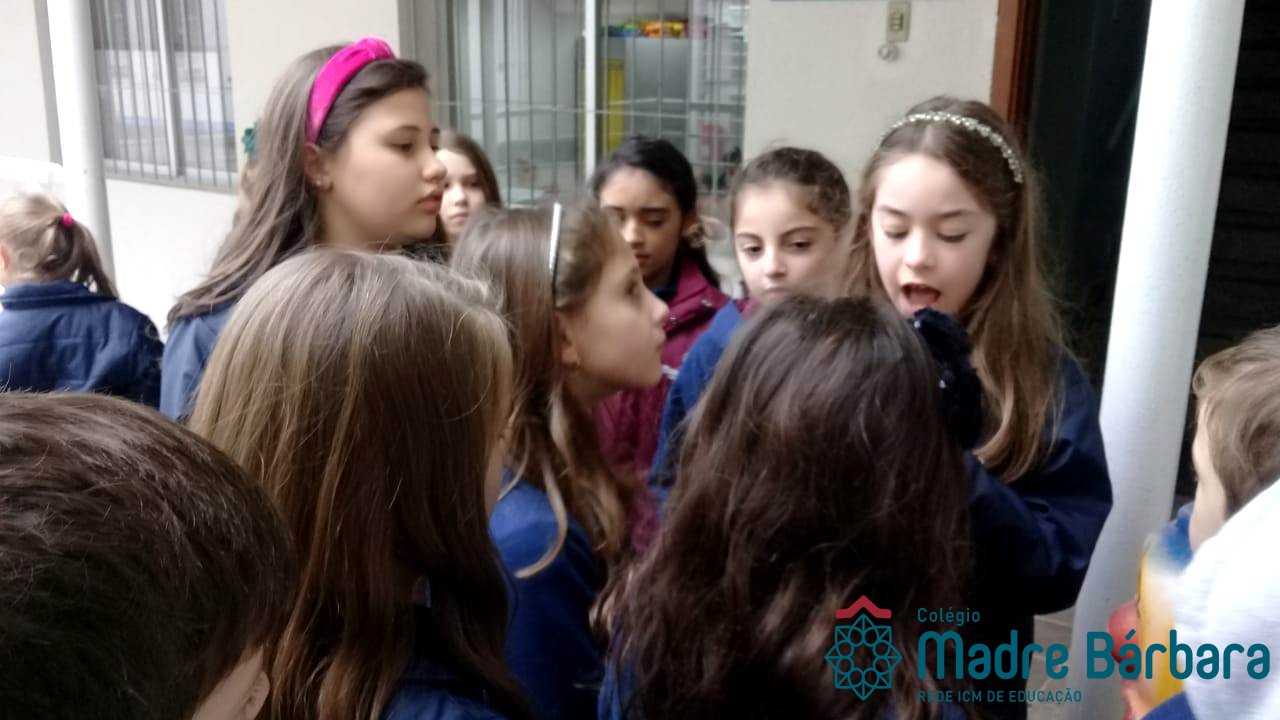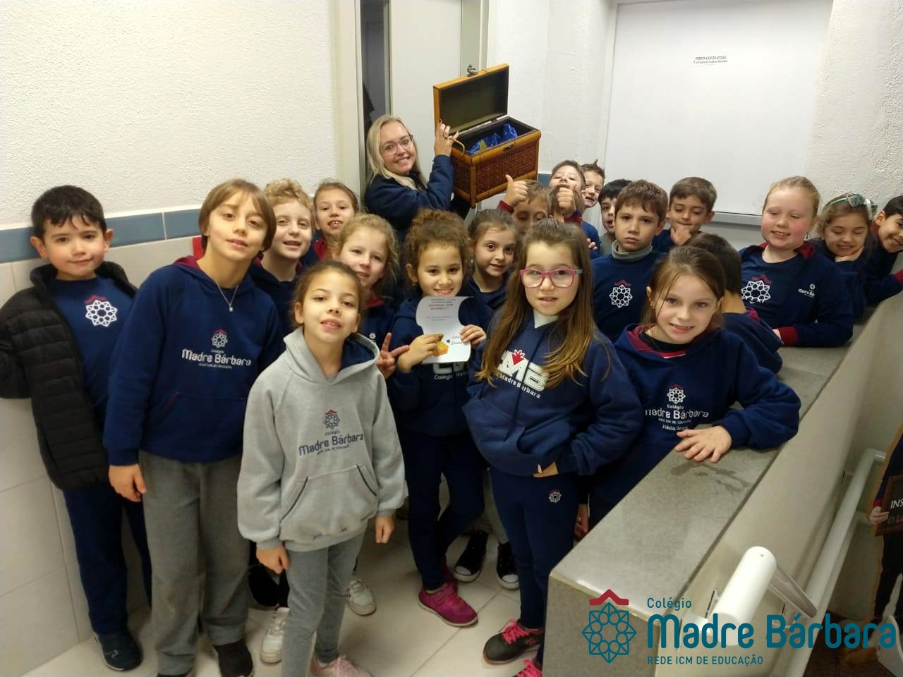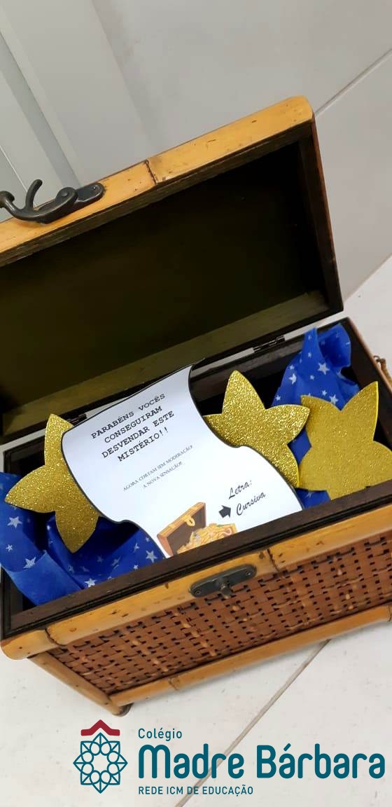 Para introduzir a letra cursiva, ou seja, a letra emendada, as professoras dos 2ºs anos do Colégio Madre Bárbara, realizaram uma ”Caça ao Tesouro”. Os alunos foram desafiados a procurarem pistas que levariam a um tesouro. Empolgados com a ideia de serem detetives, saíram pelo pátio da escola a procura das pistas. Cada pista continha uma tarefa que deveria ser realizada em equipe e indicava o local da outra.