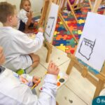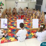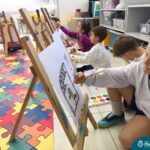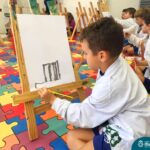 Nesta segunda- feira, 27 de março, as crianças do Nível 5 do Turno Extracurricular juntamente com as professoras Iasmine e Heloísa, realizaram uma situação de aprendizagem de pintura a partir do Projeto “Cadê o passarinho que estava aqui?” . O Projeto surgiu quando as crianças encontraram um ninho no Espaço de Formação Rede ICM e queriam descobrir onde estava o passarinho. Entre várias situações, surgiu a pintura do pássaro Calopsita e sua gaiola. Na sala, pincel e tinta na mão, as crianças foram desafiadas a usar a criatividade e mãos à obra. Mexer com tinta dá às crianças a possibilidade de explorar diferentes materiais e se aproximar de uma importante expressão artística, além de estimular os sentidos, auxiliar no desenvolvimento da coordenação motora e incentivar na percepção das cores.