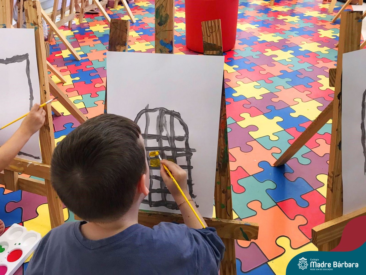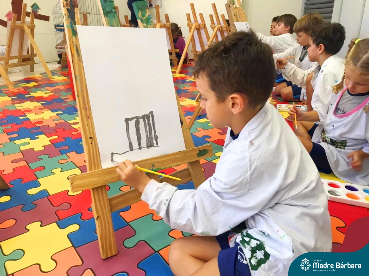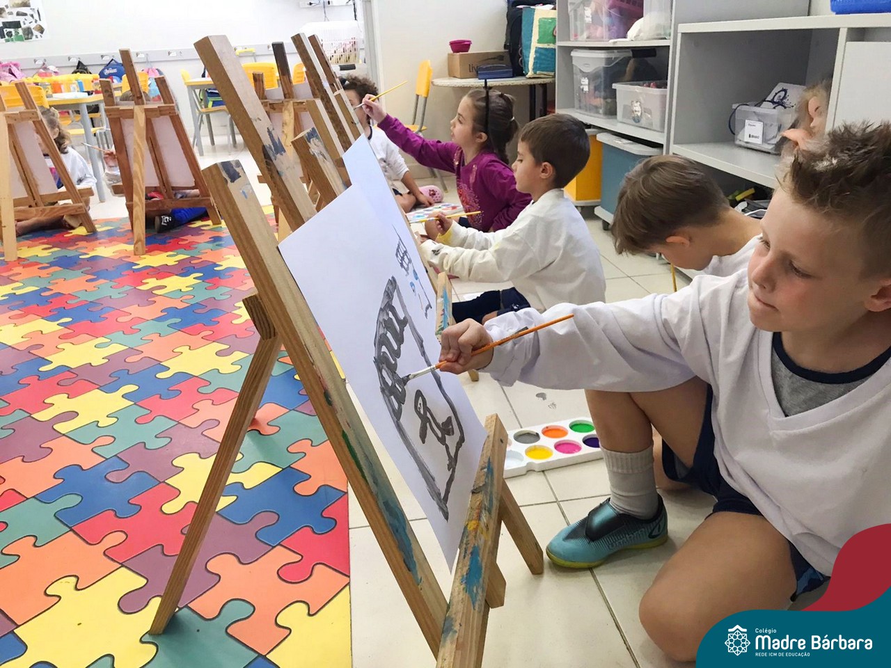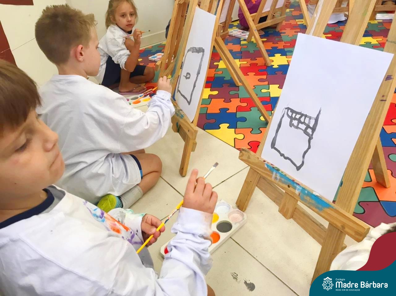 Nesta segunda- feira, 27 de março, as crianças do Nível 5 do Turno Extracurricular juntamente com as professoras Iasmine e Heloísa, realizaram uma situação de aprendizagem de pintura a partir do Projeto “Cadê o passarinho que estava aqui?” . O Projeto surgiu quando as crianças encontraram um ninho no Espaço de Formação Rede ICM e queriam descobrir onde estava o passarinho. Entre várias situações, surgiu a pintura do pássaro Calopsita e sua gaiola. Na sala, pincel e tinta na mão, as crianças foram desafiadas a usar a criatividade e mãos à obra. Mexer com tinta dá às crianças a possibilidade de explorar diferentes materiais e se aproximar de uma importante expressão artística, além de estimular os sentidos, auxiliar no desenvolvimento da coordenação motora e incentivar na percepção das cores.
