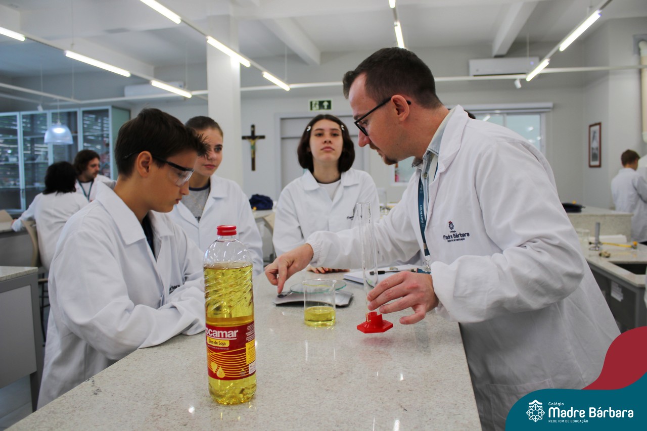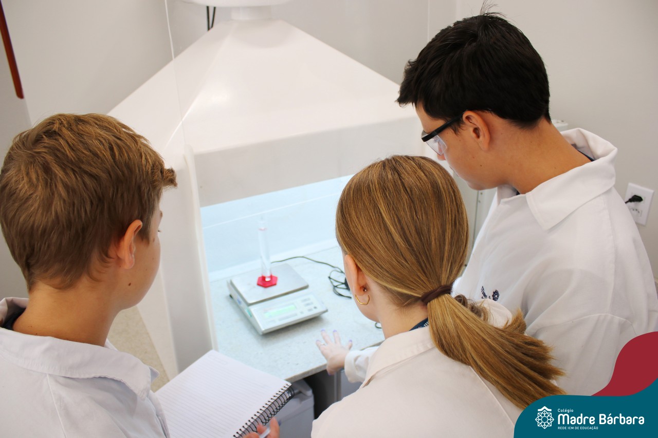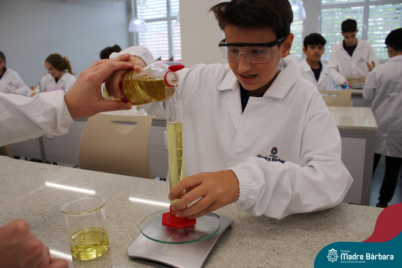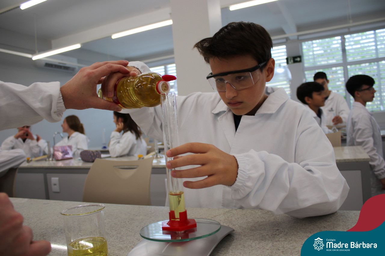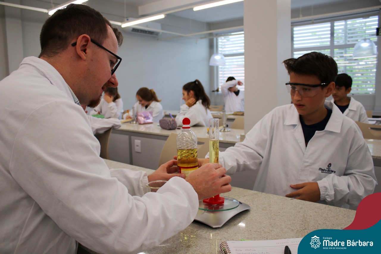 Na última segunda-feira (06) estudantes das turmas de 9ªs séries do Ensino Fundamental foram desafiados a identificarem materiais por meio de suas propriedades. Durante a aula, discussões relacionadas às propriedades gerais e específicas da matéria foram estabelecidas com o propósito de identificar e caracterizar materiais de uso cotidiano dos estudantes, bem como, contextualizar a importância desses parâmetros na indústria, por exemplo. A proposta de trabalho busca oferecer aos estudantes uma visão tecnológica e está relacionada à disciplina de Química, ministrada pelo professor Aliar Jung.