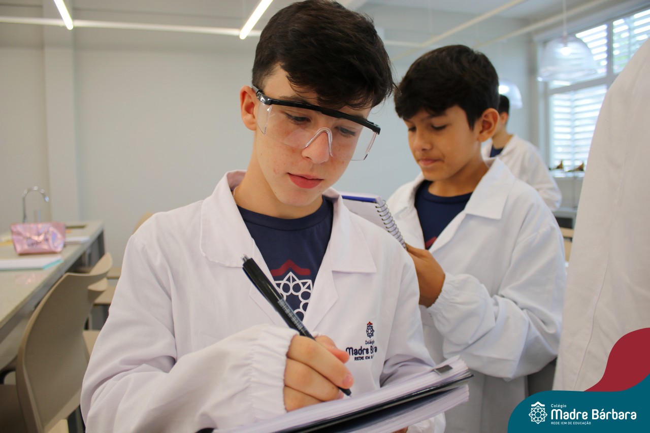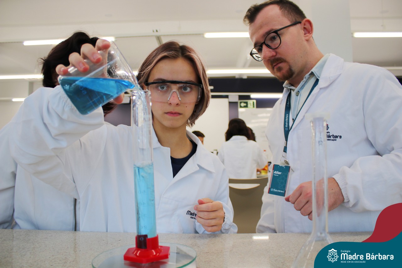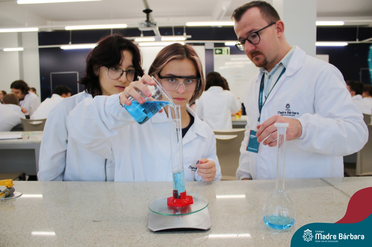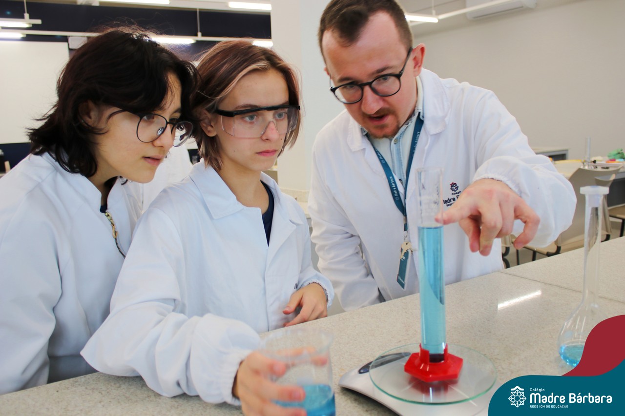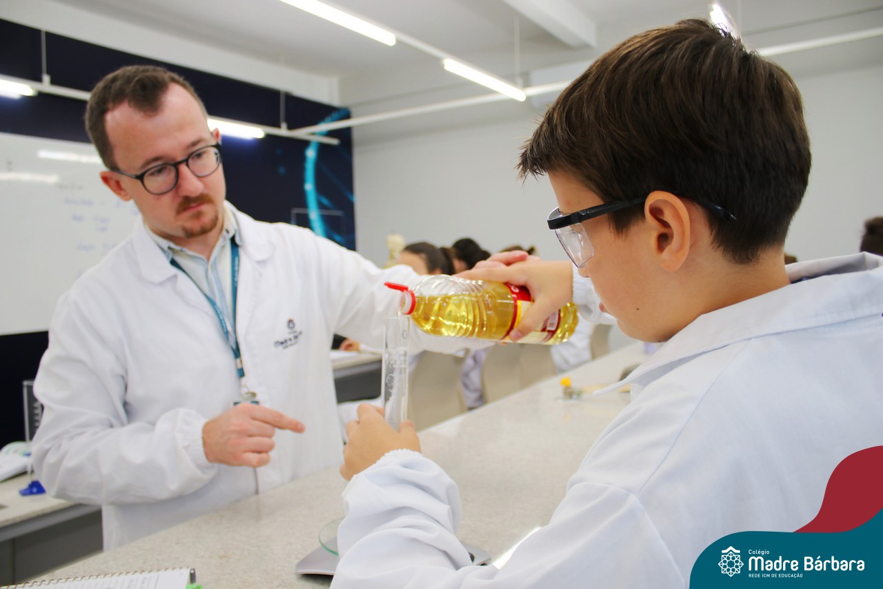 Na última segunda-feira (06) estudantes das turmas de 9ªs séries do Ensino Fundamental foram desafiados a identificarem materiais por meio de suas propriedades. Durante a aula, discussões relacionadas às propriedades gerais e específicas da matéria foram estabelecidas com o propósito de identificar e caracterizar materiais de uso cotidiano dos estudantes, bem como, contextualizar a importância desses parâmetros na indústria, por exemplo. A proposta de trabalho busca oferecer aos estudantes uma visão tecnológica e está relacionada à disciplina de Química, ministrada pelo professor Aliar Jung.
