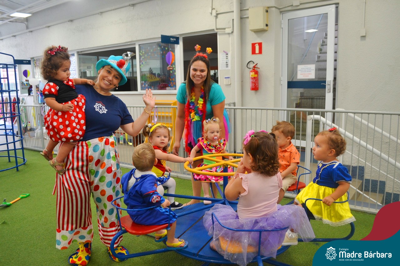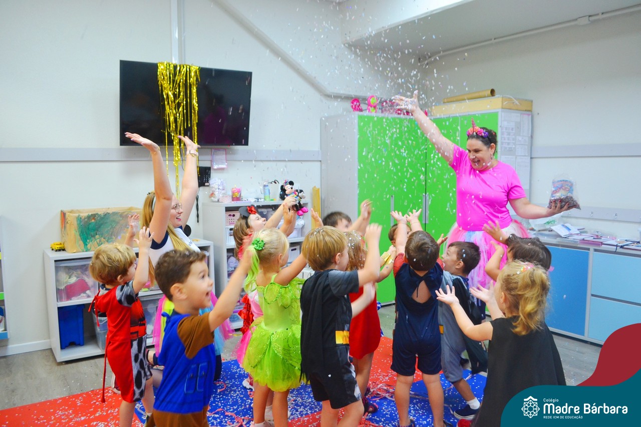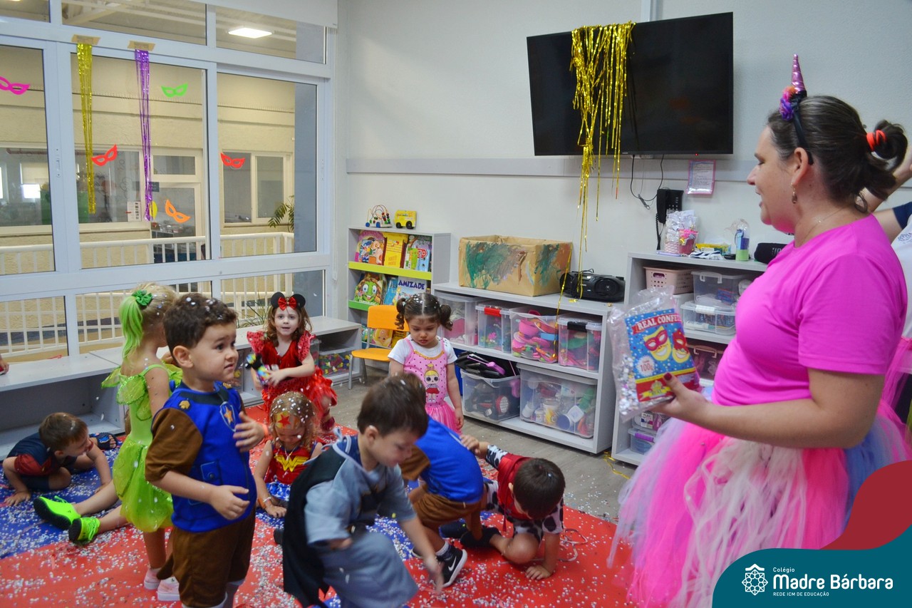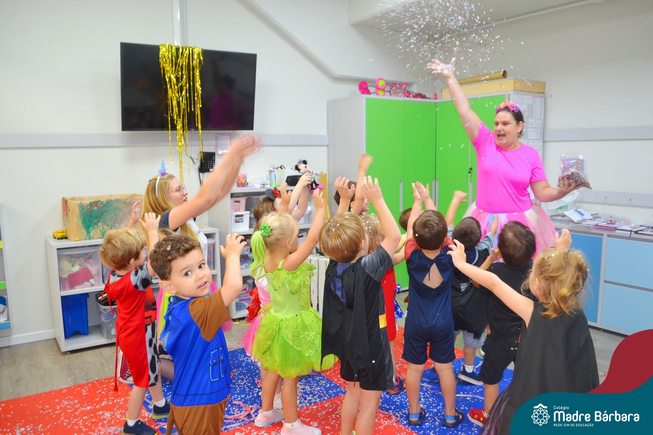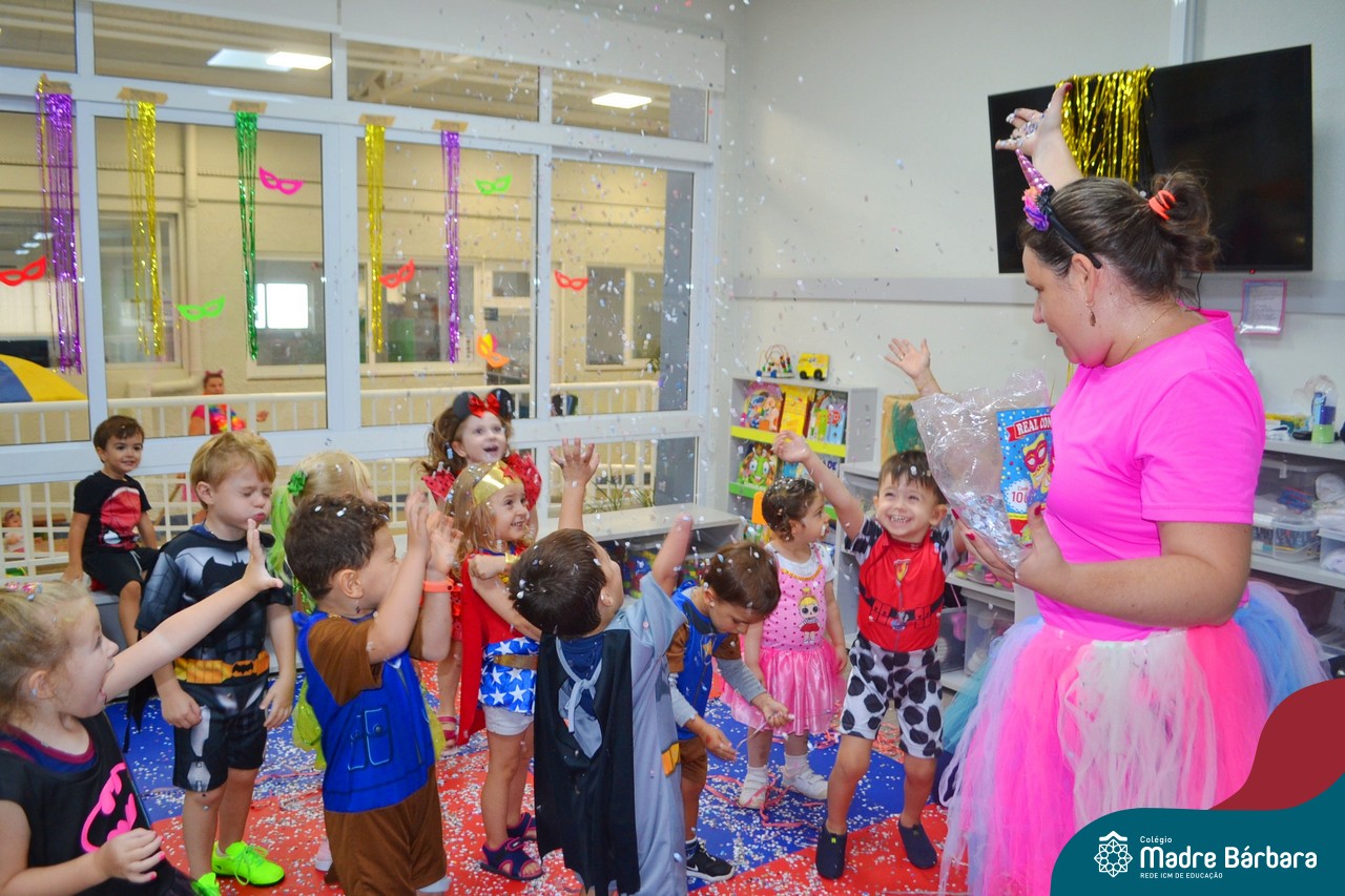 “Allah-la-ô, ô-ô-ô, ô-ô-ô… ” Cedo da manhã as turmas da Educação Infantil já estavam em clima de carnaval. Teve bailinho com canto e dança, brincadeiras, cores, decoração e muito confete! Claro que sem esquecer as fantasias maravilhosas que nossas crianças estavam desfilando pelo Colégio Madre Bárbara – Rede ICM. Foi demais nosso carnaval pela manhã e de tarde tem mais!