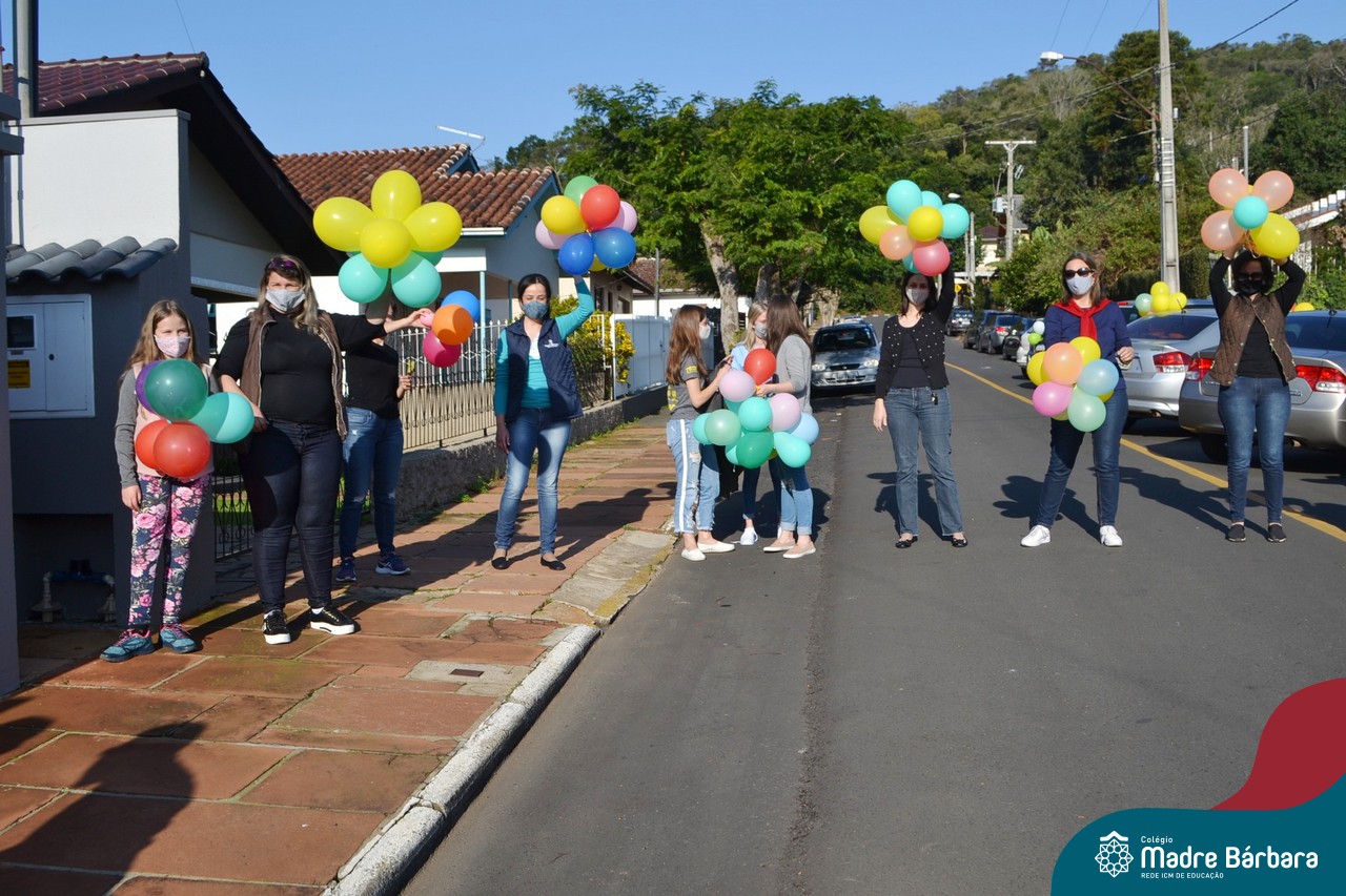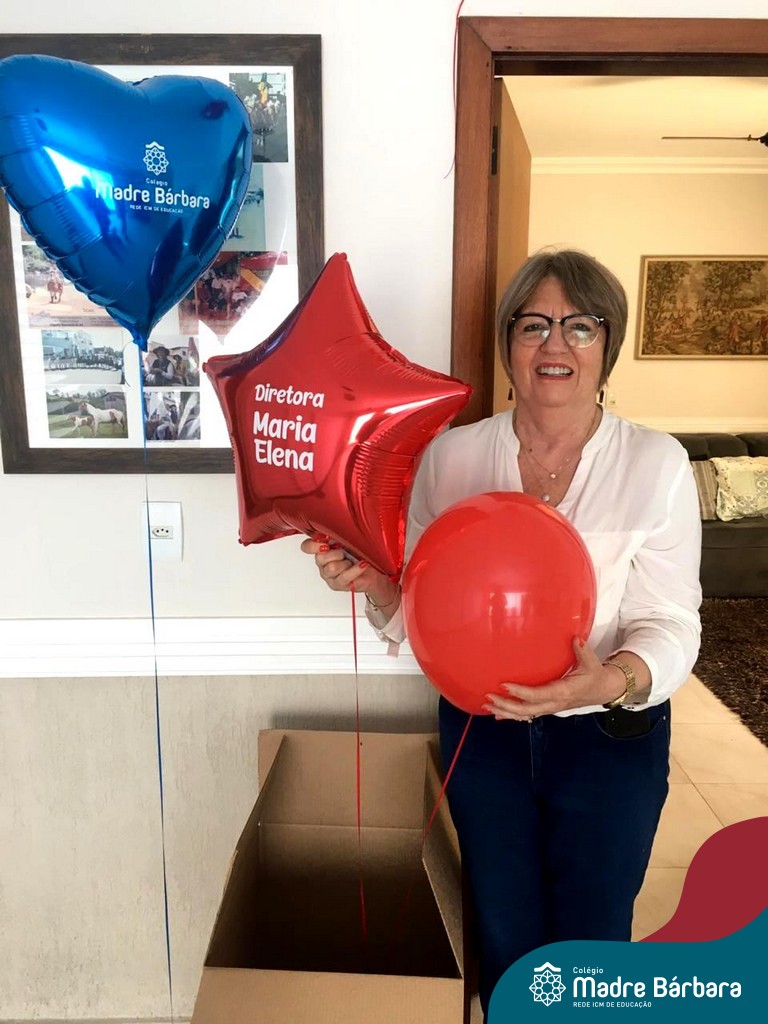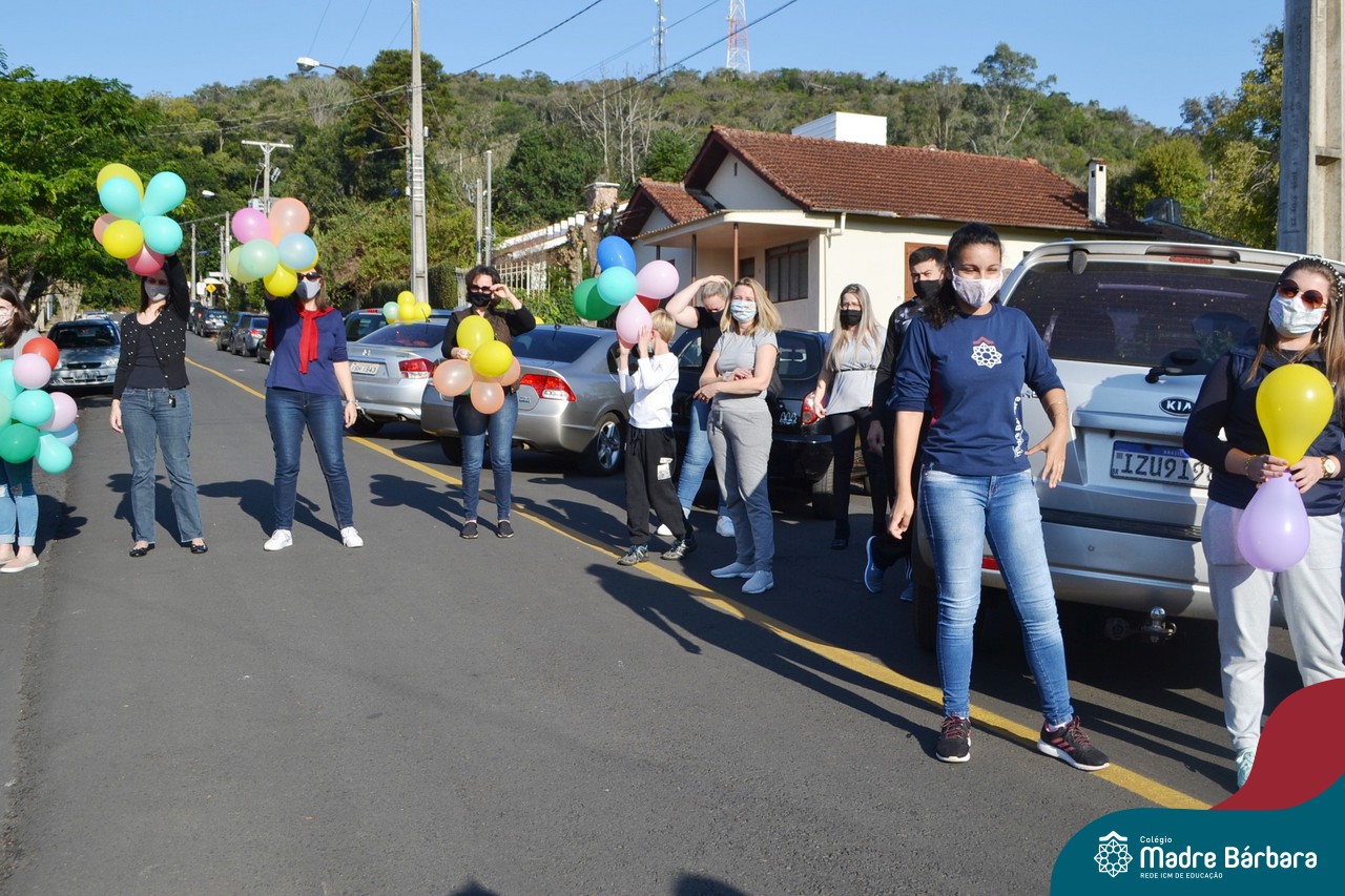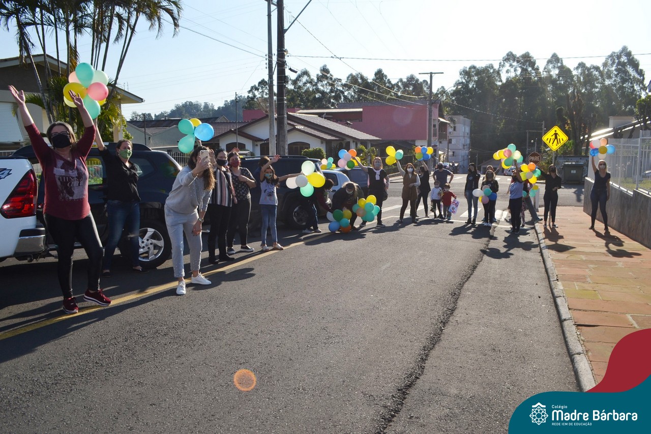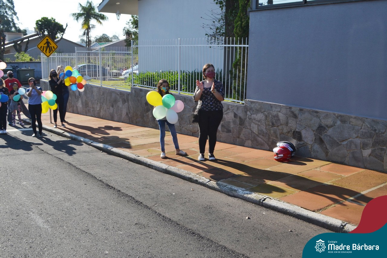 Na tarde de sábado (01.08) a aniversariante do dia, diretora Maria Elena Jacques, foi surpreendida em sua casa com uma Carreata Surpresa de Aniversário. O encontro contou com representantes de diversos segmentos do Colégio Madre Bárbara – Rede ICM. Entre eles professores, funcionários, equipe diretiva, Irmãs, Associação de Pais e Mestres (APM), alunos e o Grêmio Estudantil (Gembar).