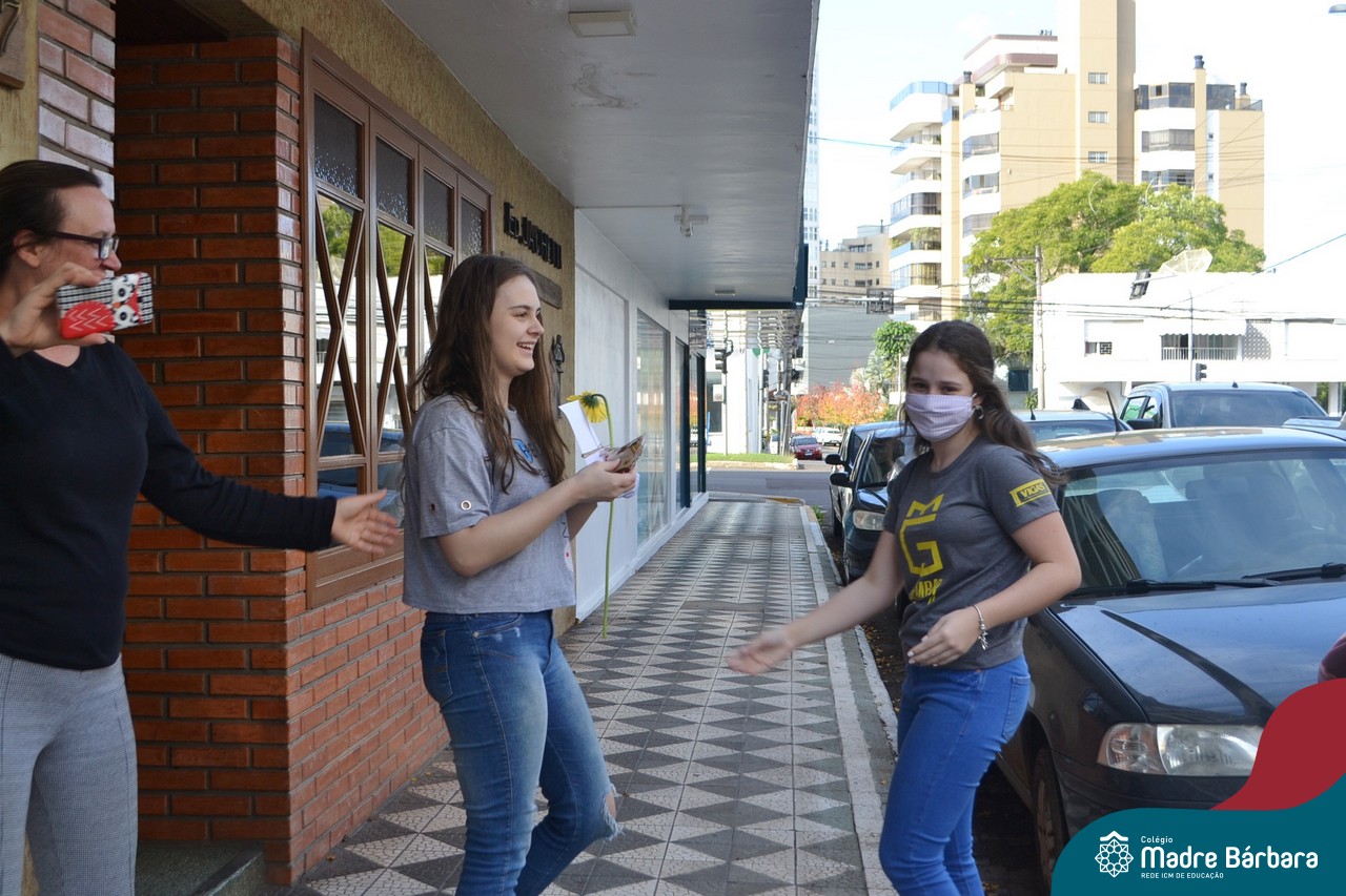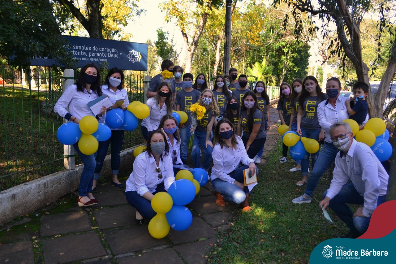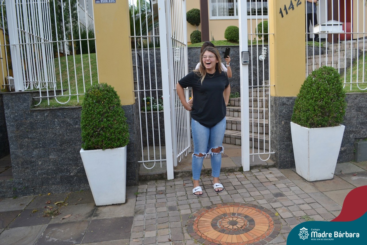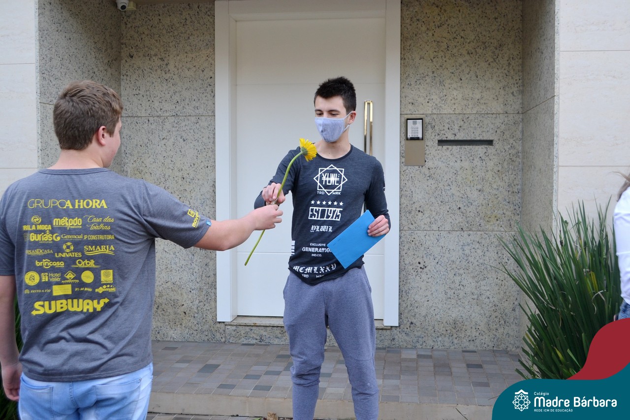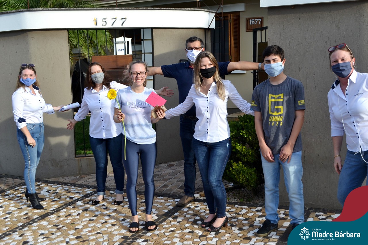 A emoção tomou conta dessa sexta-feira, dia 12 de junho. Professores, Grêmio Estudantil (Gembar), Pais, Funcionários e Equipe Diretiva do Colégio Madre Bárbara surpreenderam a grande turma do Terceirão 2020. Em carreata, 14 carros enfeitados com balões dividiram-se para passar na casa dos 40 alunos do 3º ano. Os alunos receberam cartas escritas a mão por seus professoras, além de flores de flores e cookies do Gembar. Quanta emoção!