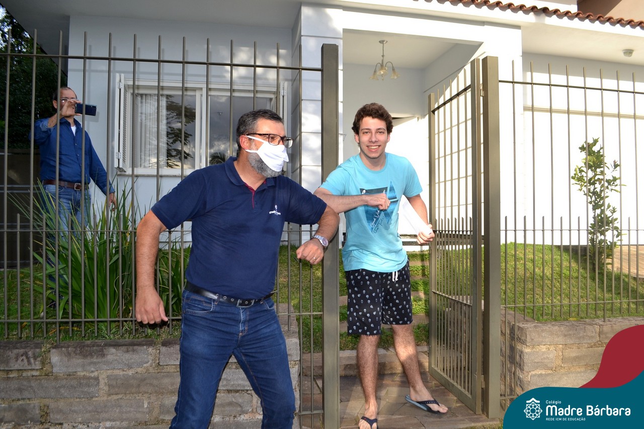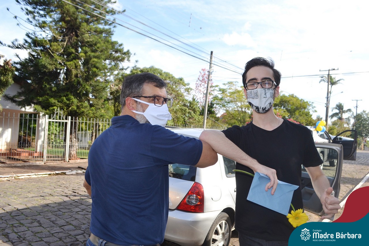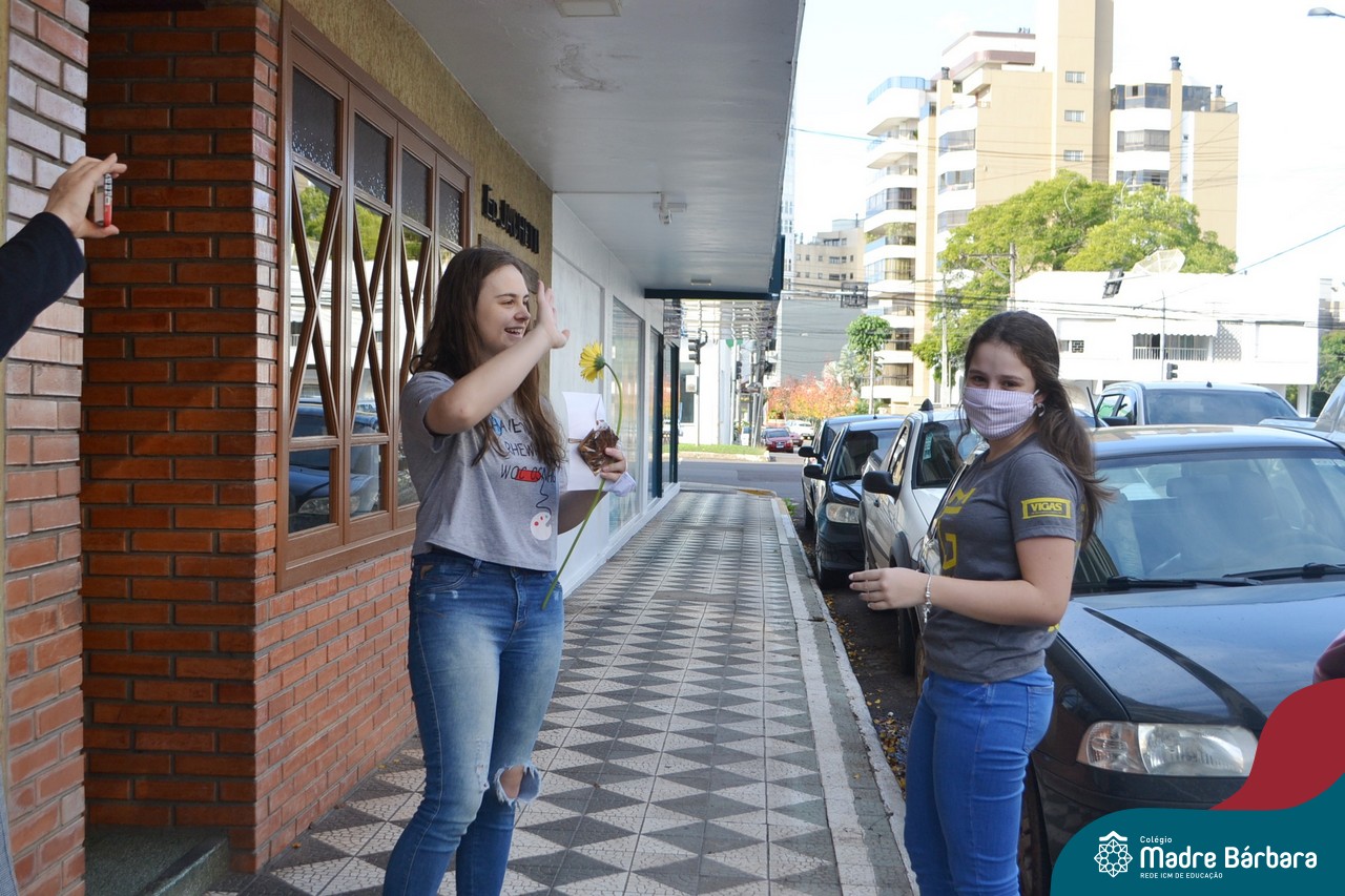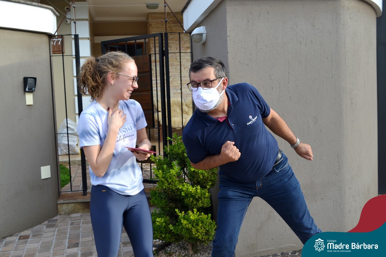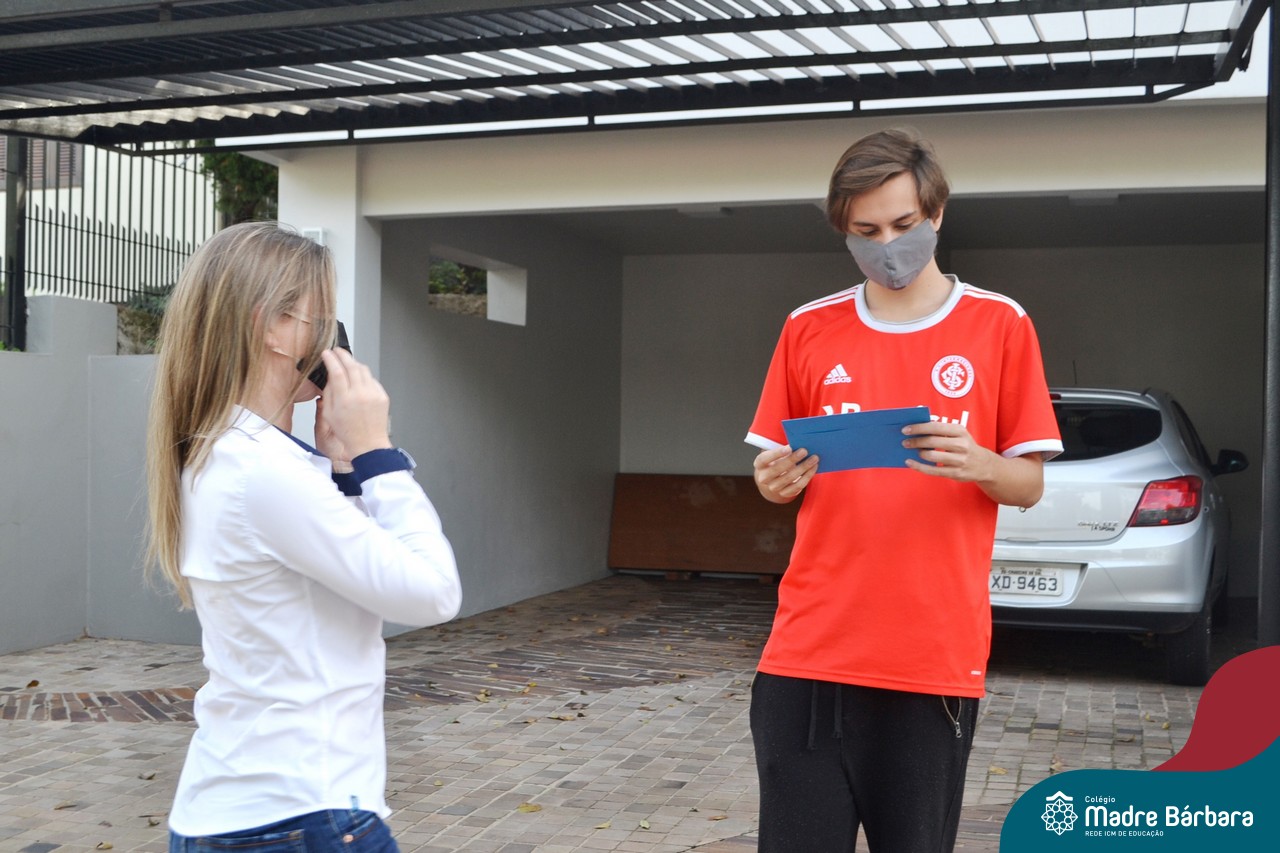 A emoção tomou conta dessa sexta-feira, dia 12 de junho. Professores, Grêmio Estudantil (Gembar), Pais, Funcionários e Equipe Diretiva do Colégio Madre Bárbara surpreenderam a grande turma do Terceirão 2020. Em carreata, 14 carros enfeitados com balões dividiram-se para passar na casa dos 40 alunos do 3º ano. Os alunos receberam cartas escritas a mão por seus professoras, além de flores de flores e cookies do Gembar. Quanta emoção!