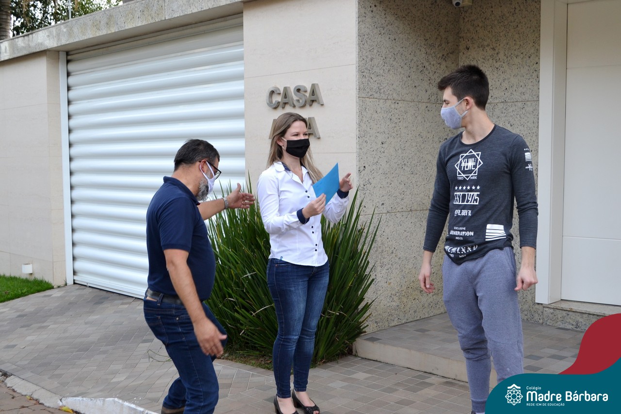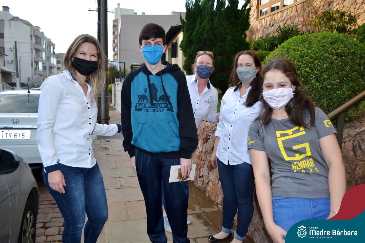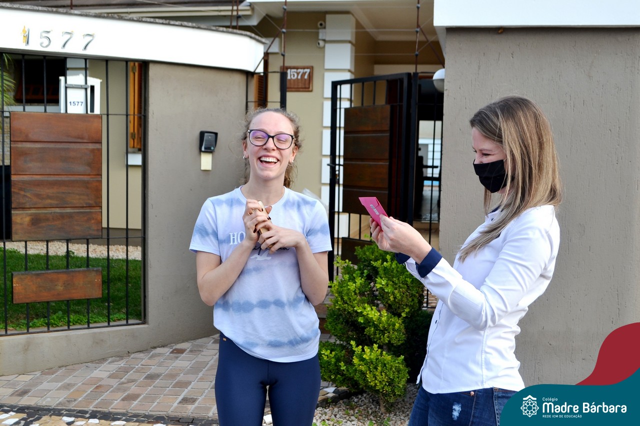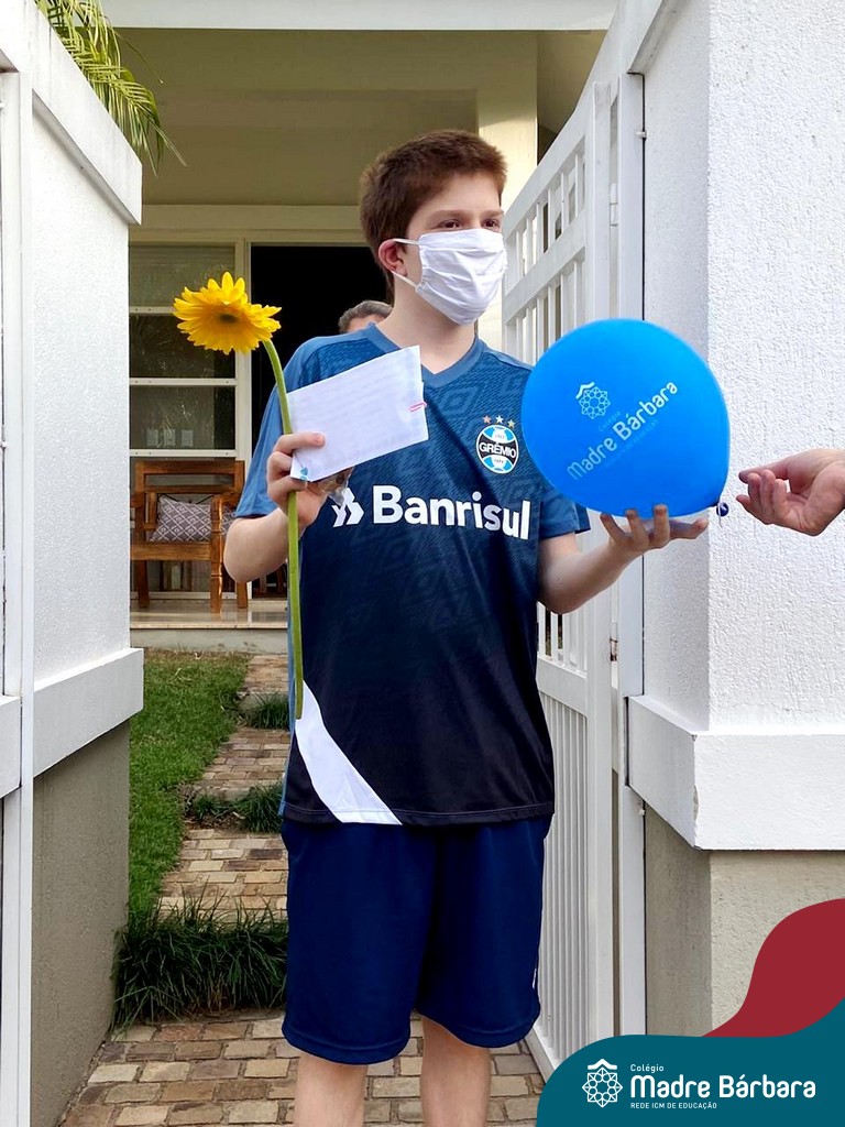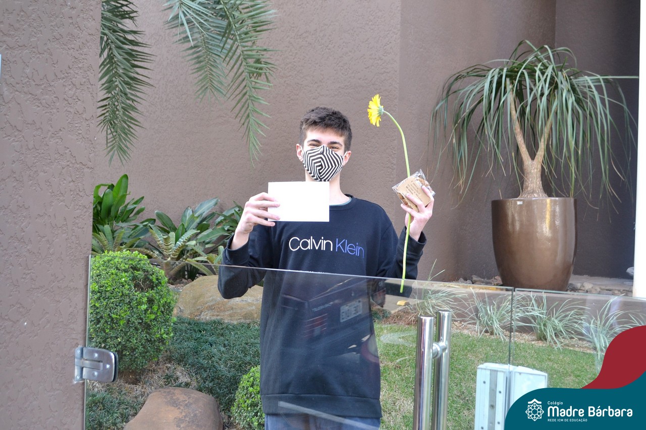 A emoção tomou conta dessa sexta-feira, dia 12 de junho. Professores, Grêmio Estudantil (Gembar), Pais, Funcionários e Equipe Diretiva do Colégio Madre Bárbara surpreenderam a grande turma do Terceirão 2020. Em carreata, 14 carros enfeitados com balões dividiram-se para passar na casa dos 40 alunos do 3º ano. Os alunos receberam cartas escritas a mão por seus professoras, além de flores de flores e cookies do Gembar. Quanta emoção!