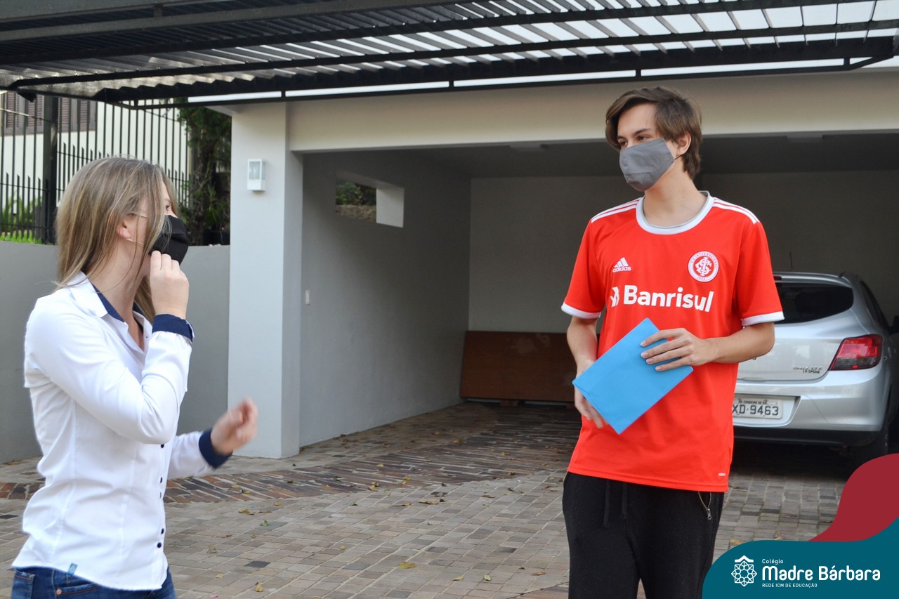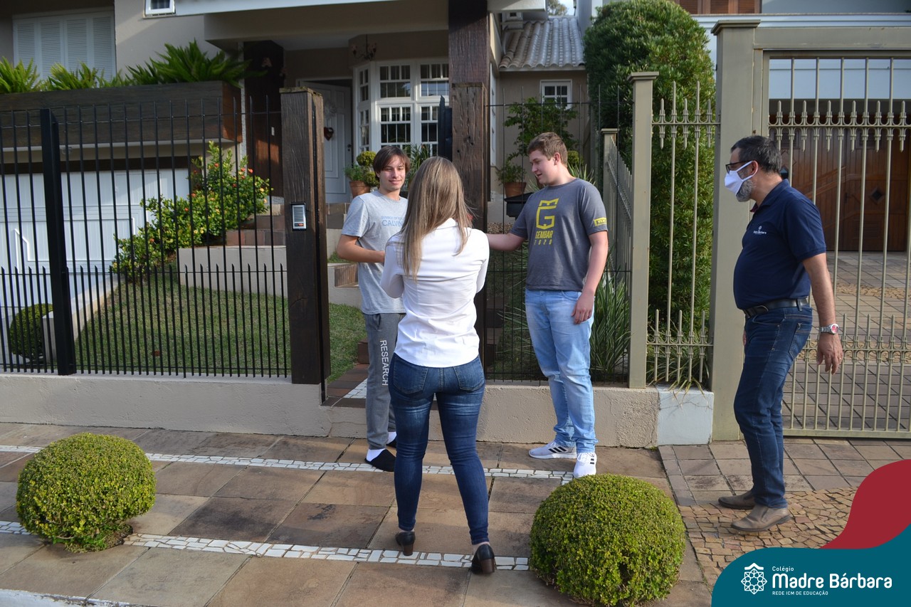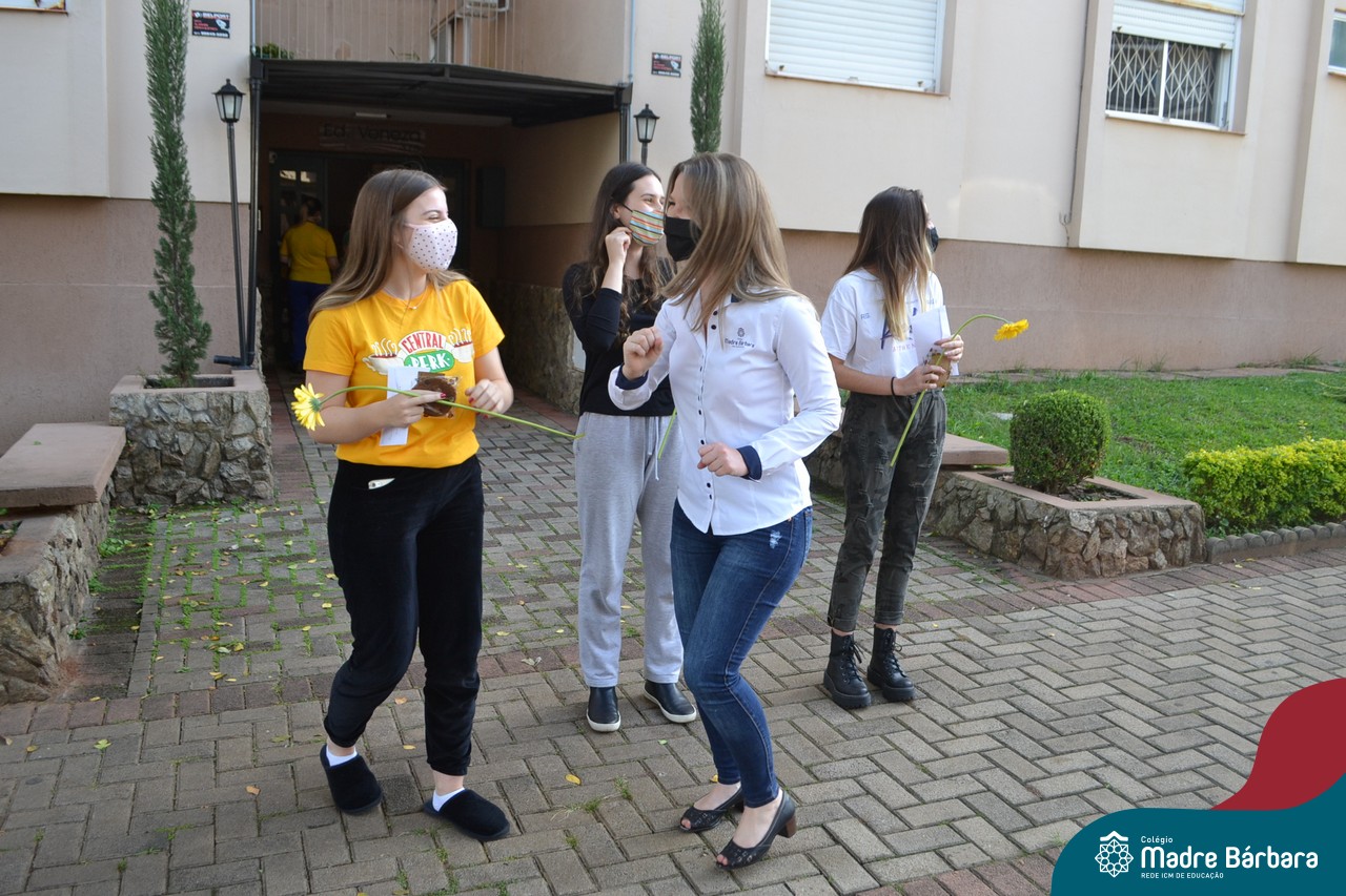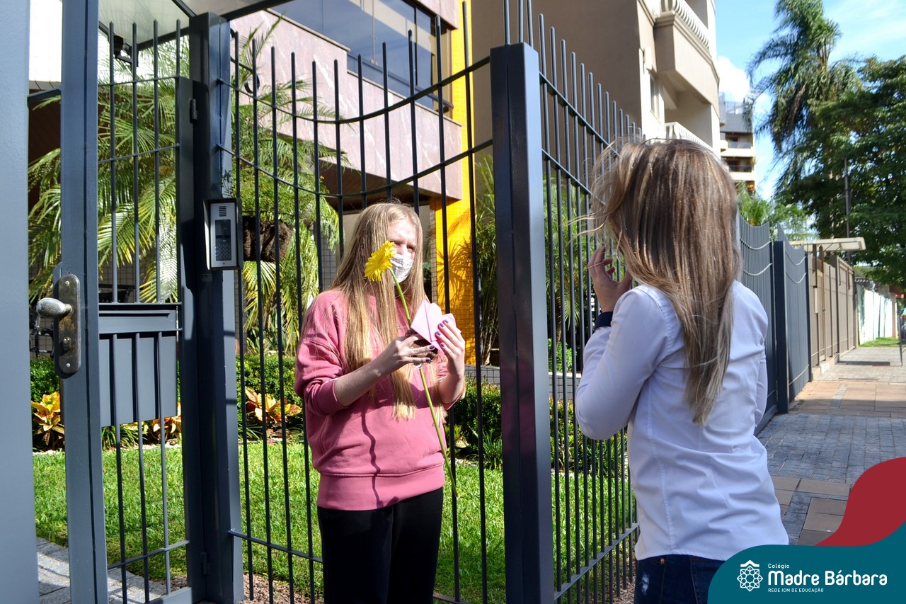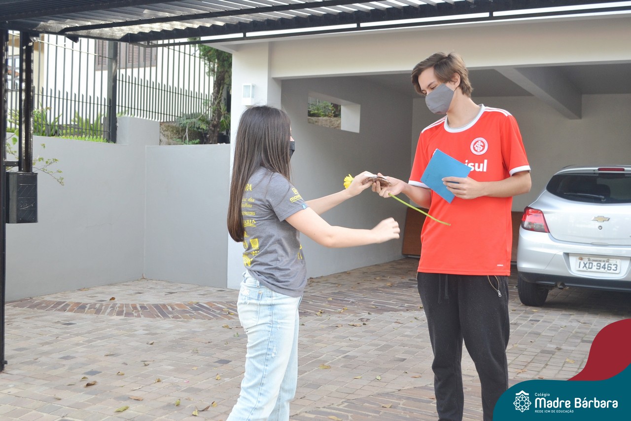 A emoção tomou conta dessa sexta-feira, dia 12 de junho. Professores, Grêmio Estudantil (Gembar), Pais, Funcionários e Equipe Diretiva do Colégio Madre Bárbara surpreenderam a grande turma do Terceirão 2020. Em carreata, 14 carros enfeitados com balões dividiram-se para passar na casa dos 40 alunos do 3º ano. Os alunos receberam cartas escritas a mão por seus professoras, além de flores de flores e cookies do Gembar. Quanta emoção!