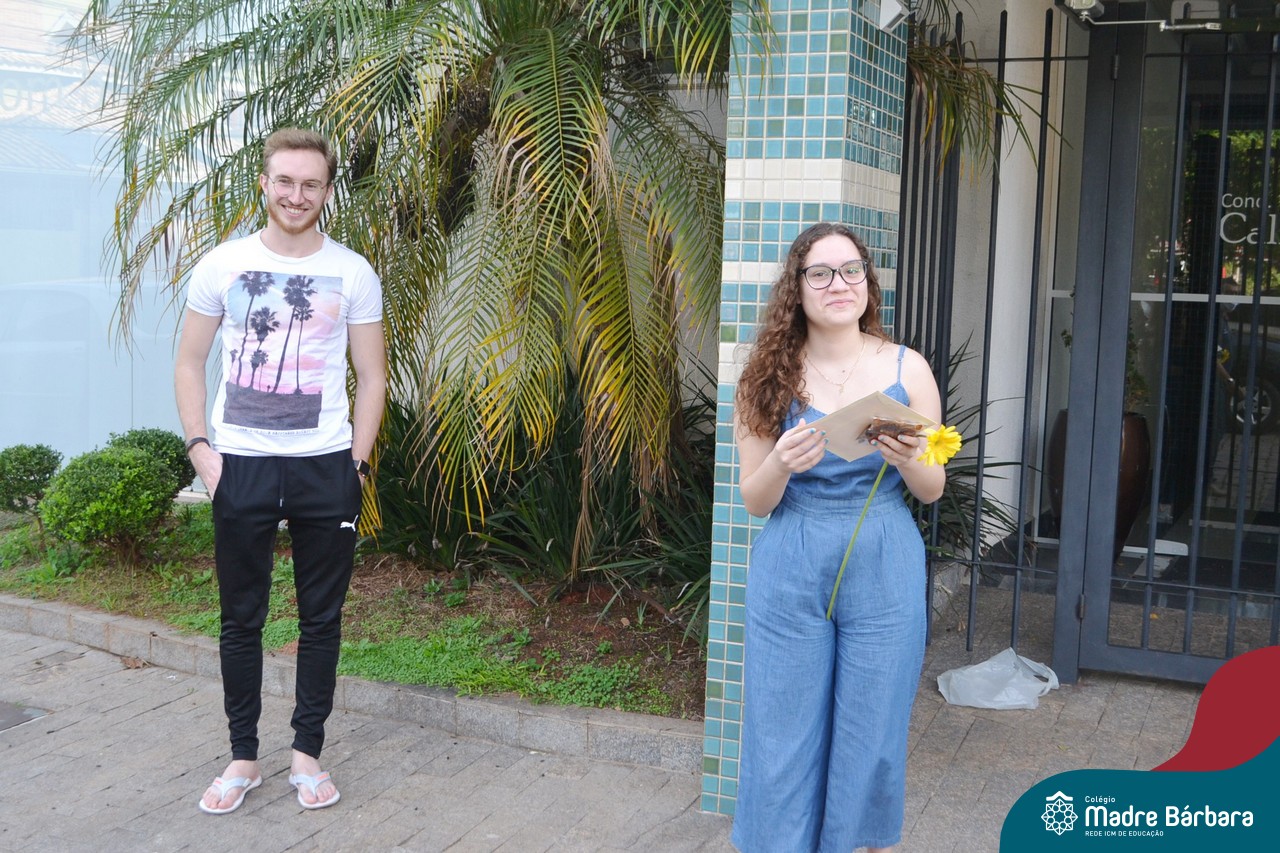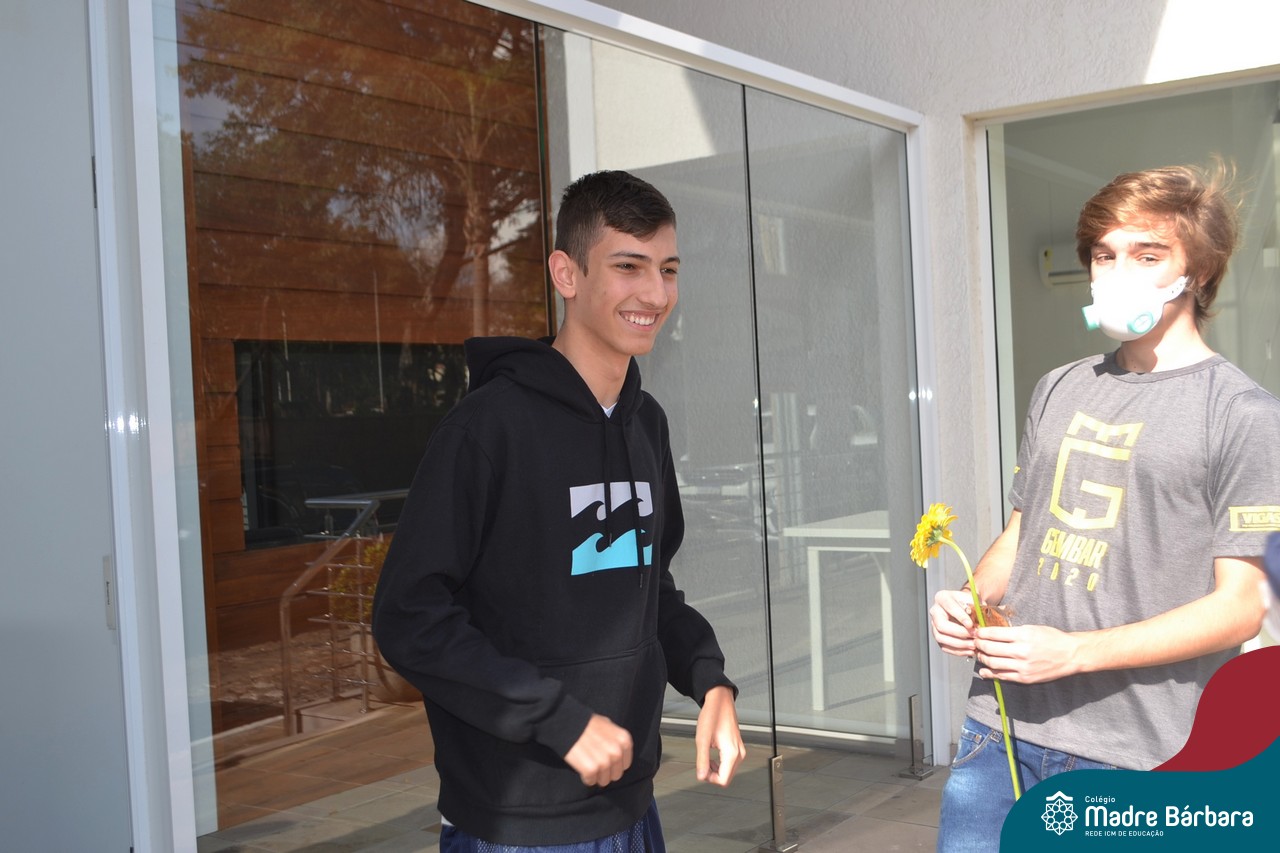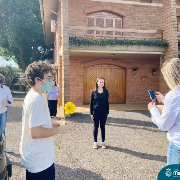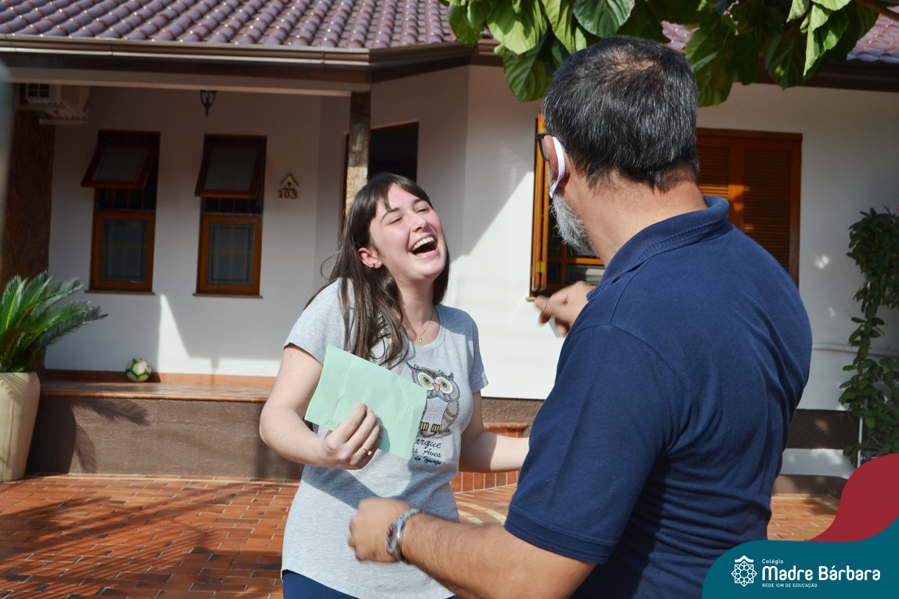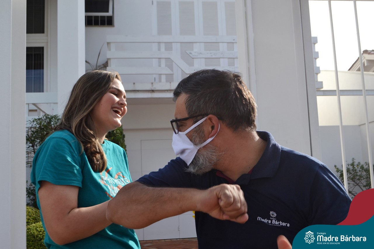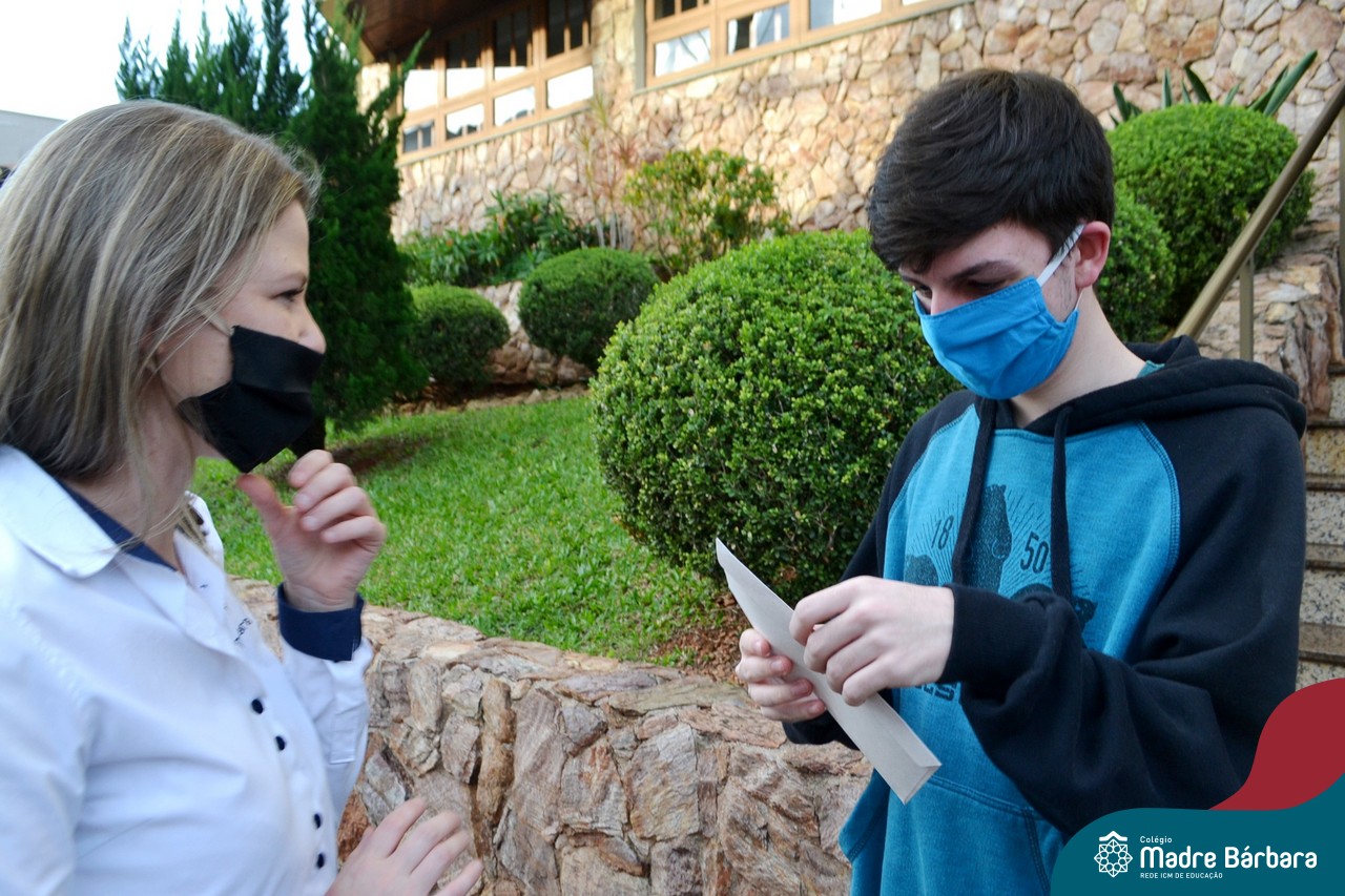 A emoção tomou conta dessa sexta-feira, dia 12 de junho. Professores, Grêmio Estudantil (Gembar), Pais, Funcionários e Equipe Diretiva do Colégio Madre Bárbara surpreenderam a grande turma do Terceirão 2020. Em carreata, 14 carros enfeitados com balões dividiram-se para passar na casa dos 40 alunos do 3º ano. Os alunos receberam cartas escritas a mão por seus professoras, além de flores de flores e cookies do Gembar. Quanta emoção!