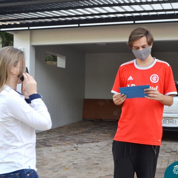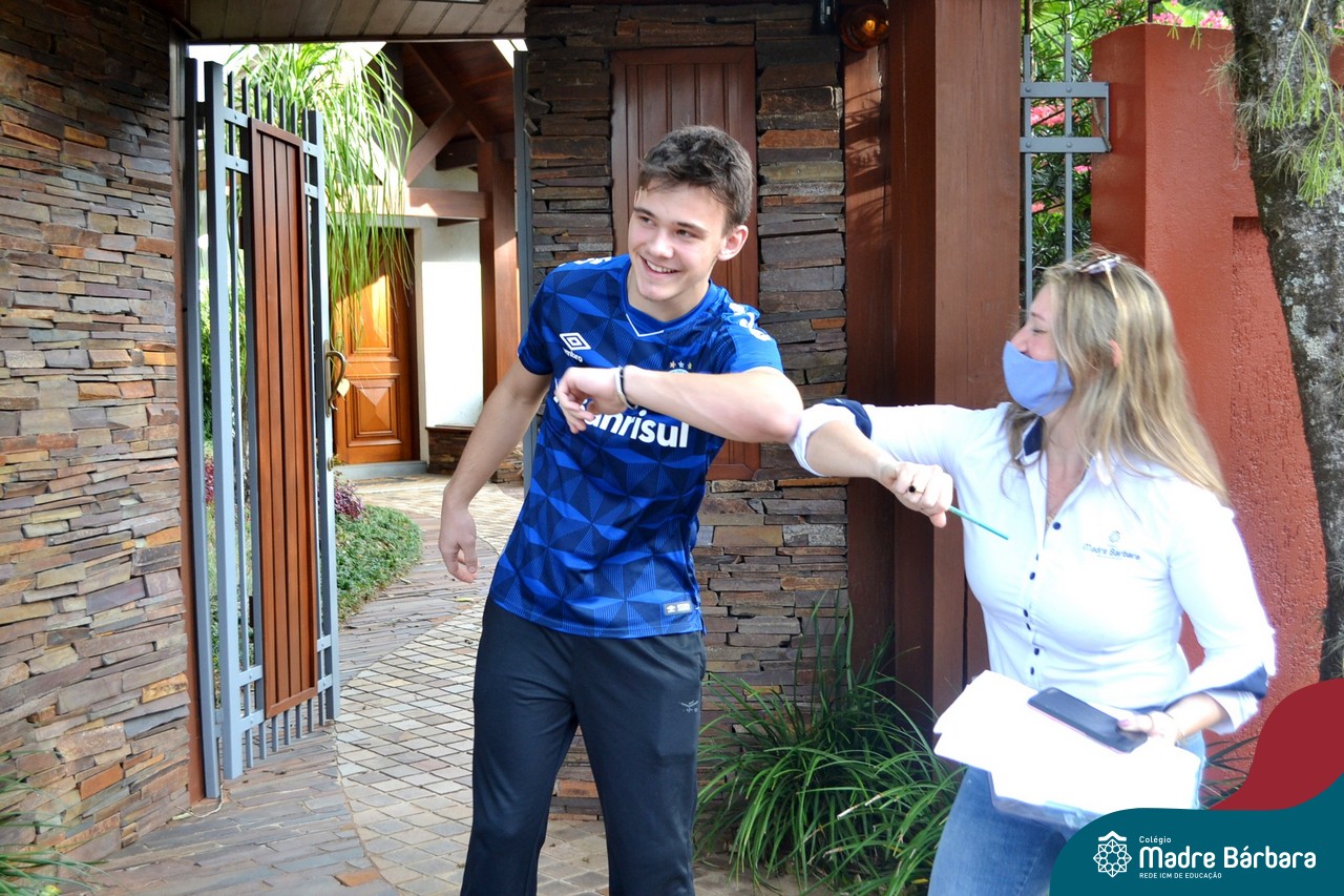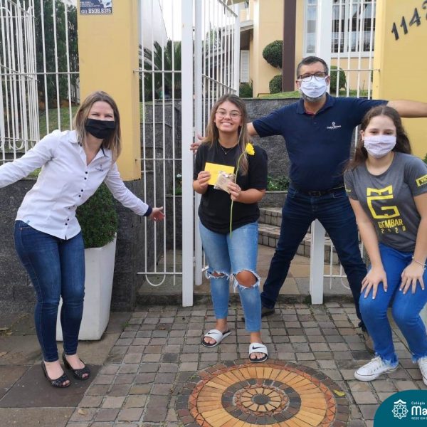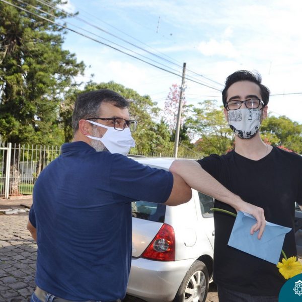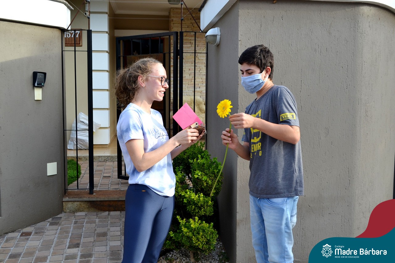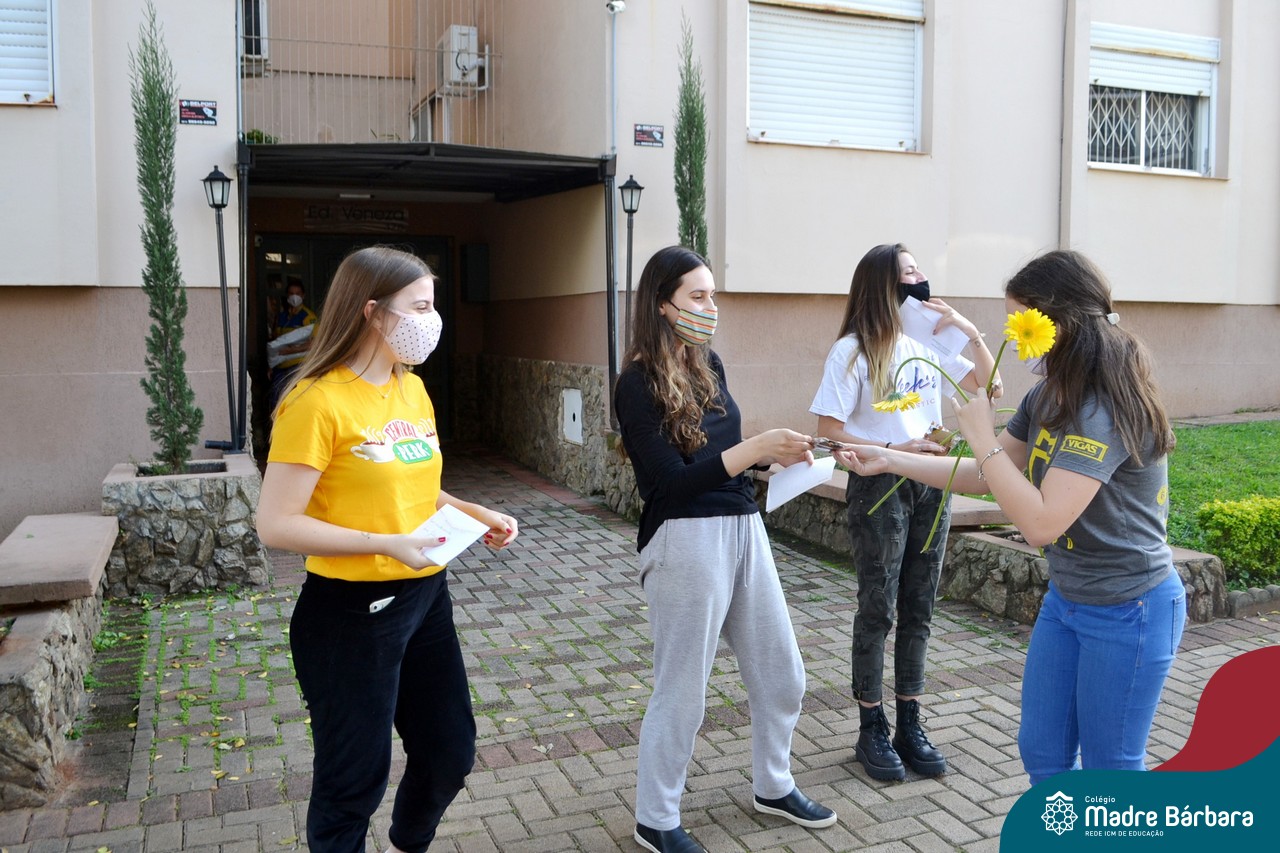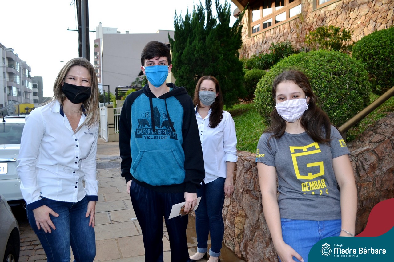 A emoção tomou conta dessa sexta-feira, dia 12 de junho. Professores, Grêmio Estudantil (Gembar), Pais, Funcionários e Equipe Diretiva do Colégio Madre Bárbara surpreenderam a grande turma do Terceirão 2020. Em carreata, 14 carros enfeitados com balões dividiram-se para passar na casa dos 40 alunos do 3º ano. Os alunos receberam cartas escritas a mão por seus professoras, além de flores de flores e cookies do Gembar. Quanta emoção!