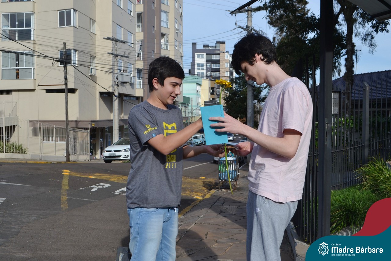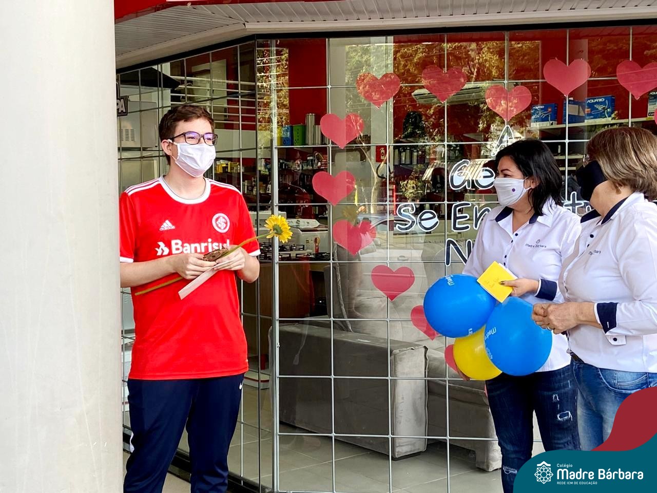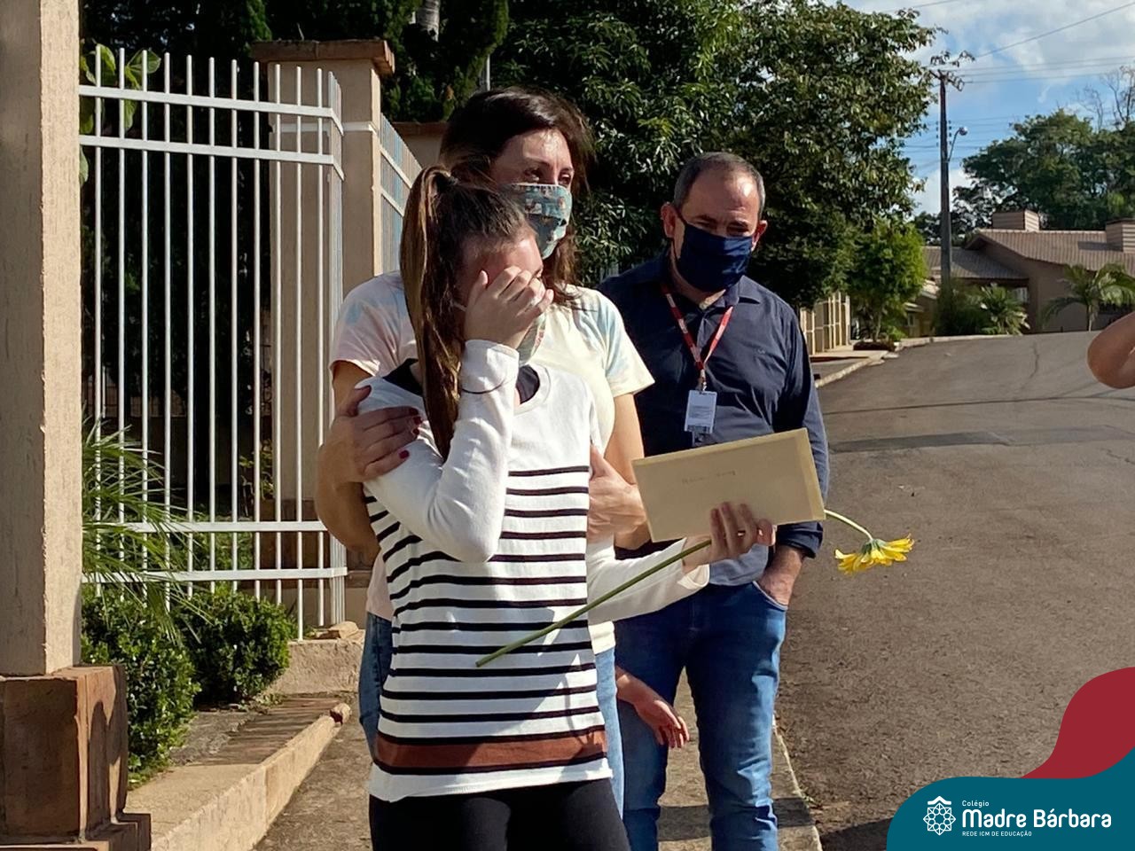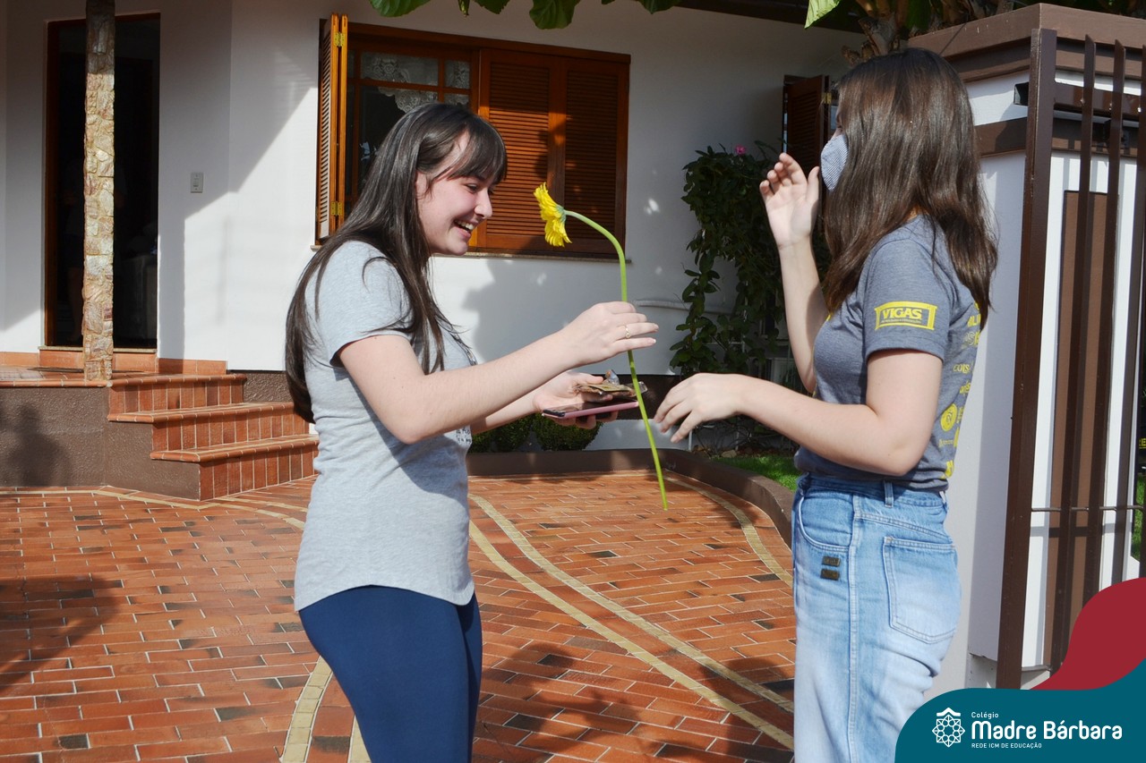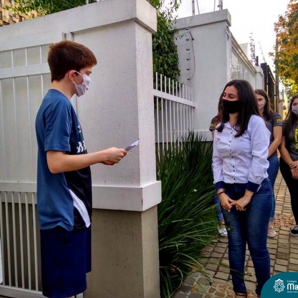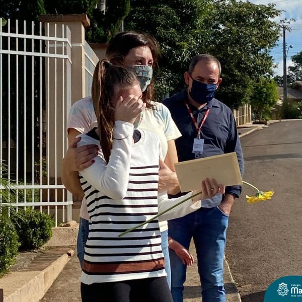 A emoção tomou conta dessa sexta-feira, dia 12 de junho. Professores, Grêmio Estudantil (Gembar), Pais, Funcionários e Equipe Diretiva do Colégio Madre Bárbara surpreenderam a grande turma do Terceirão 2020. Em carreata, 14 carros enfeitados com balões dividiram-se para passar na casa dos 40 alunos do 3º ano. Os alunos receberam cartas escritas a mão por seus professoras, além de flores de flores e cookies do Gembar. Quanta emoção!