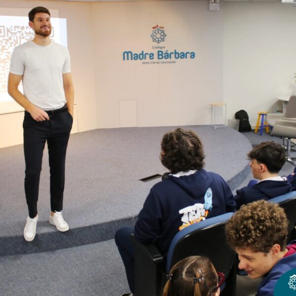 Estudantes do Ensino Médio participam de bate-papo em inglês com o ex-aluno que vive nos EUA