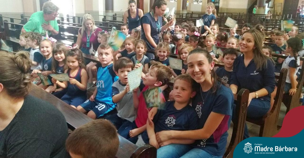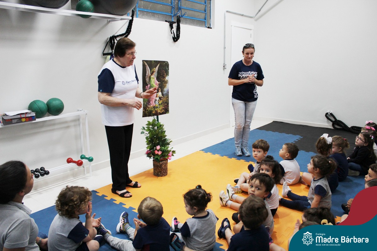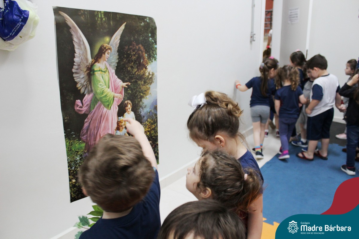 Nessa quarta-feira (02.10) as turmas da Educação Infantil participaram da Celebração do Anjo da Guarda organizada pela professora Carla Markus e Irmã Lorena Rachele, da Pastoral Escolar. Foi um momento de histórias, oração, canto, bênção e agradecimento. As crianças puderam conhecer de forma lúdica a imagem do anjo e levaram uma lembrança para casa. Foi um momento muito especial.