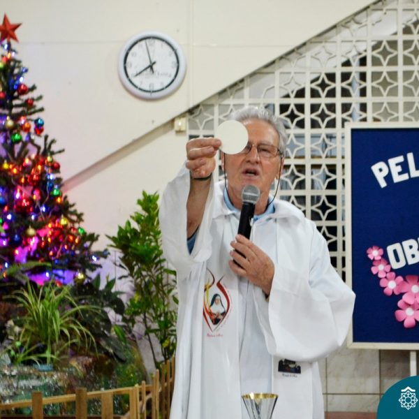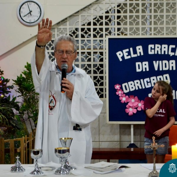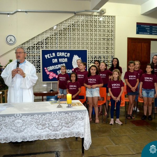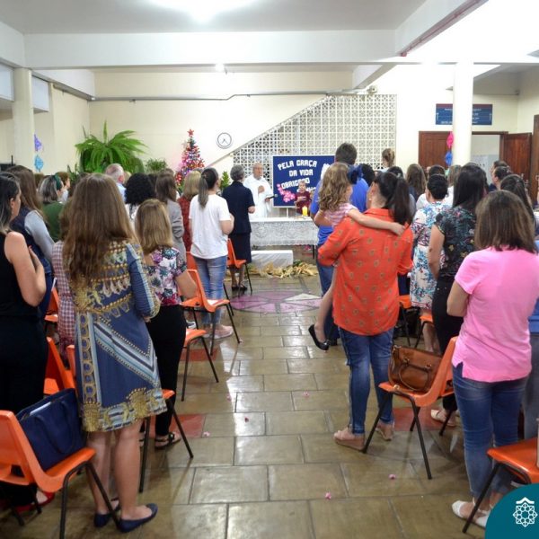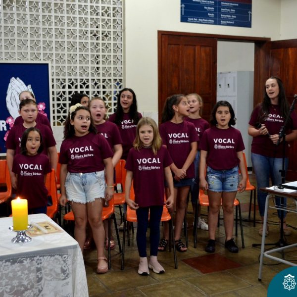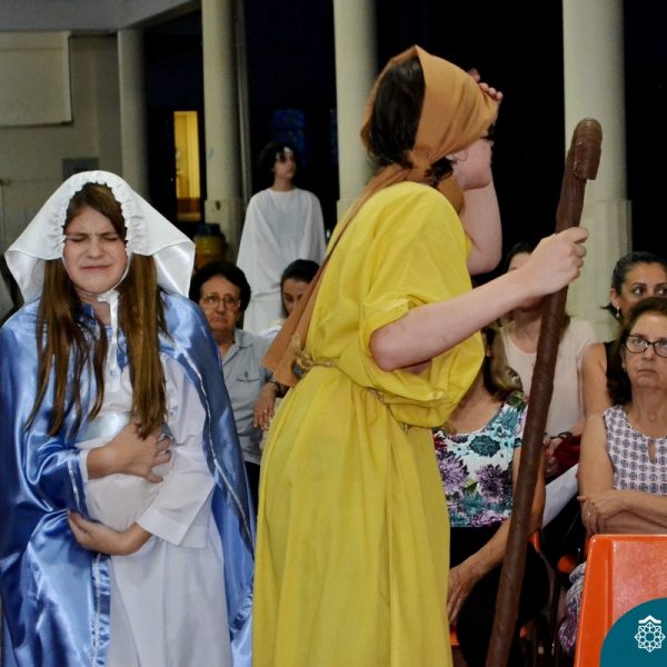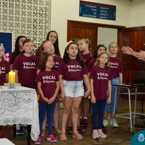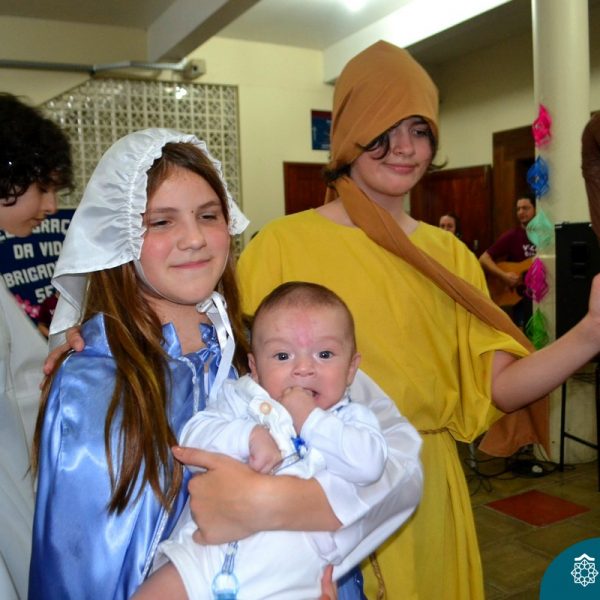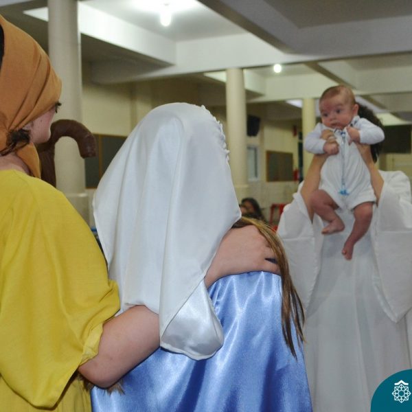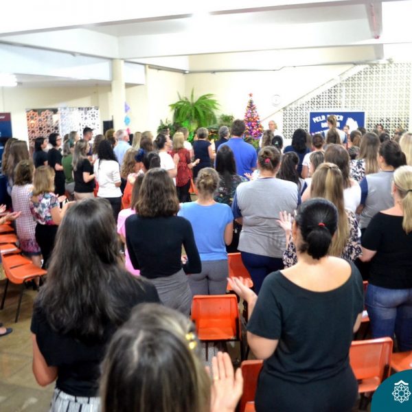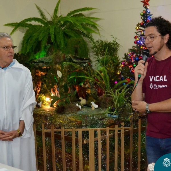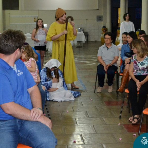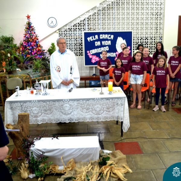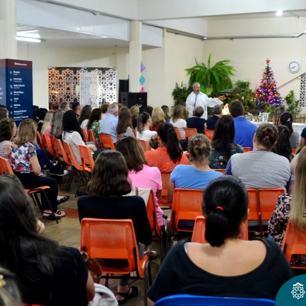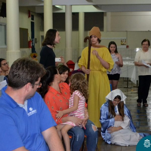 Na noite de terça-feira (26.11) ocorreu a Celebração de Natal para professores e funcionários do Colégio Madre Bárbara – Rede ICM com a participação do Padre Antônio Puhl. O momento contou com a encenação do nascimento do menino Jesus feito pelo Grupo de Teatro Touchê, coordenado pela professora Vanderléia Freitas. Já o Grupo Vocal Madre Bárbara de responsabilidade do educador musical Ricardo Petter, cuidou da música e animação do momento.