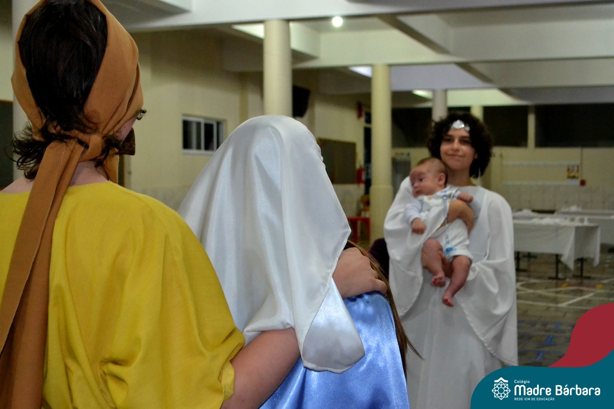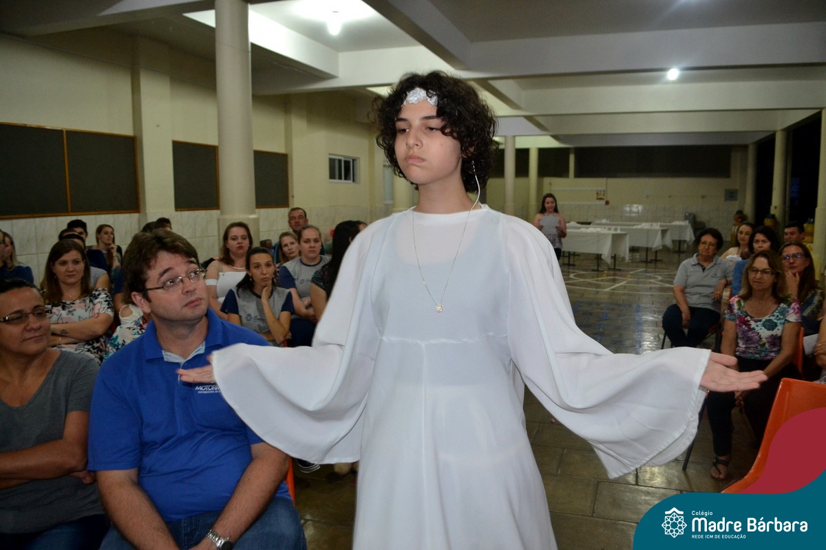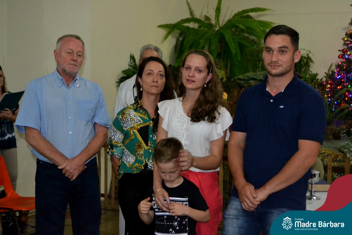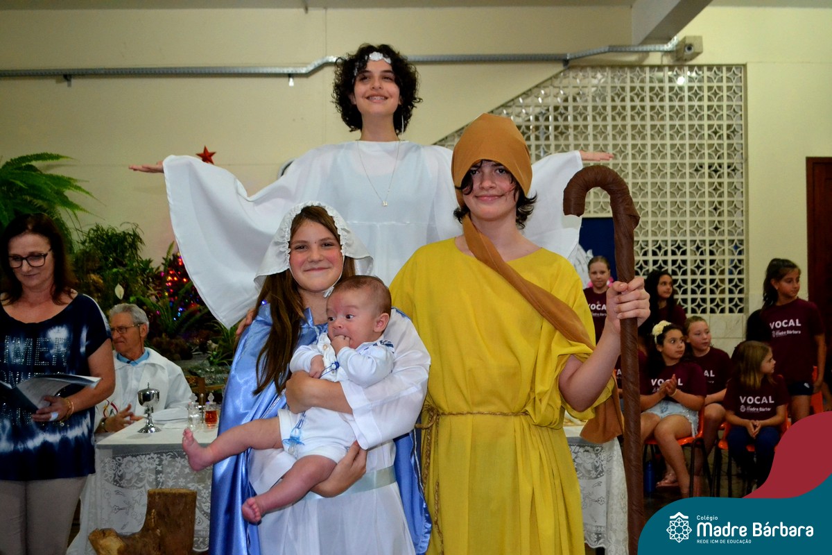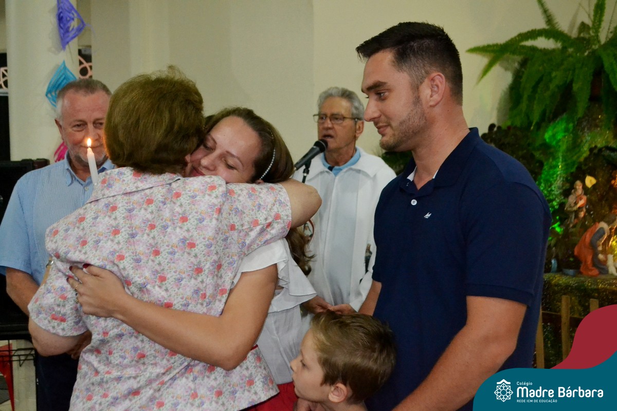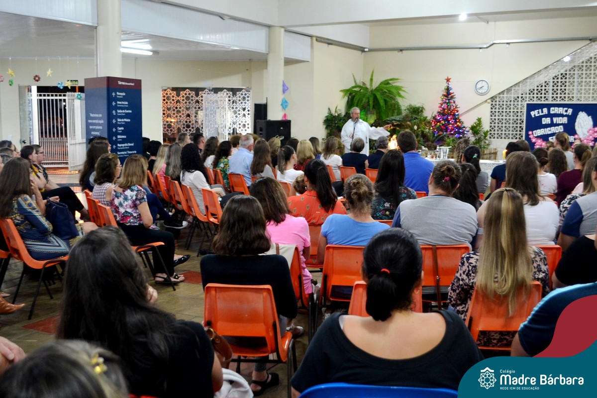 Na noite de terça-feira (26.11) ocorreu a Celebração de Natal para professores e funcionários do Colégio Madre Bárbara – Rede ICM com a participação do Padre Antônio Puhl. O momento contou com a encenação do nascimento do menino Jesus feito pelo Grupo de Teatro Touchê, coordenado pela professora Vanderléia Freitas. Já o Grupo Vocal Madre Bárbara de responsabilidade do educador musical Ricardo Petter, cuidou da música e animação do momento.