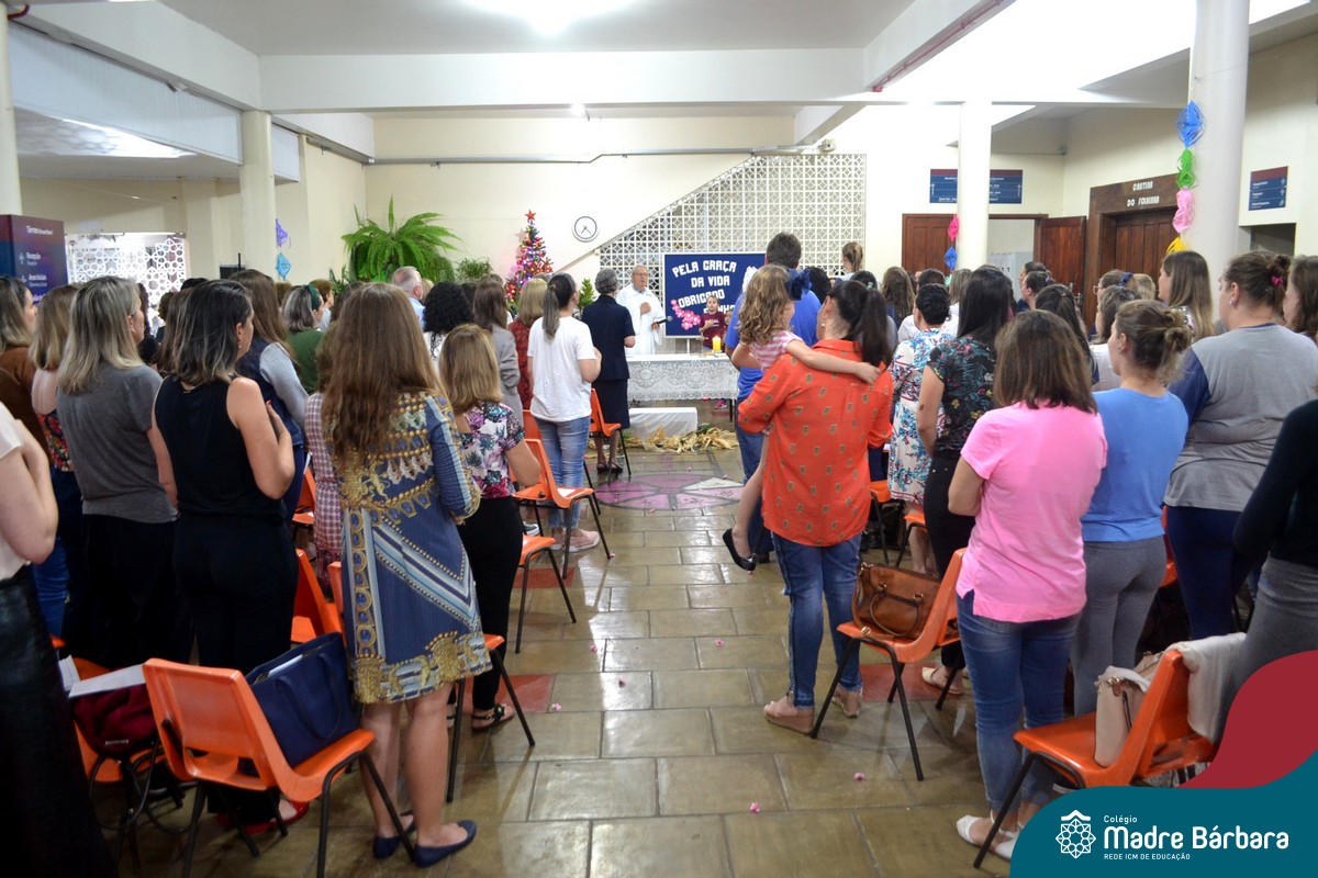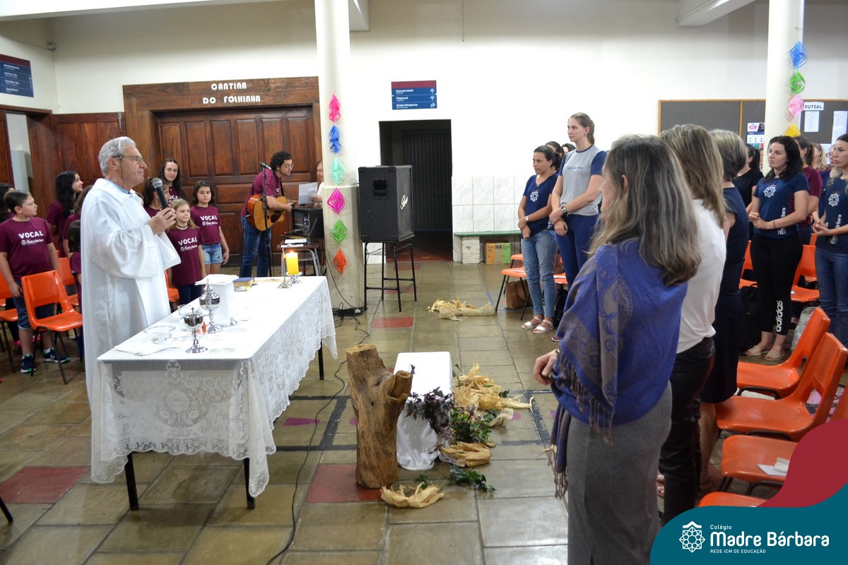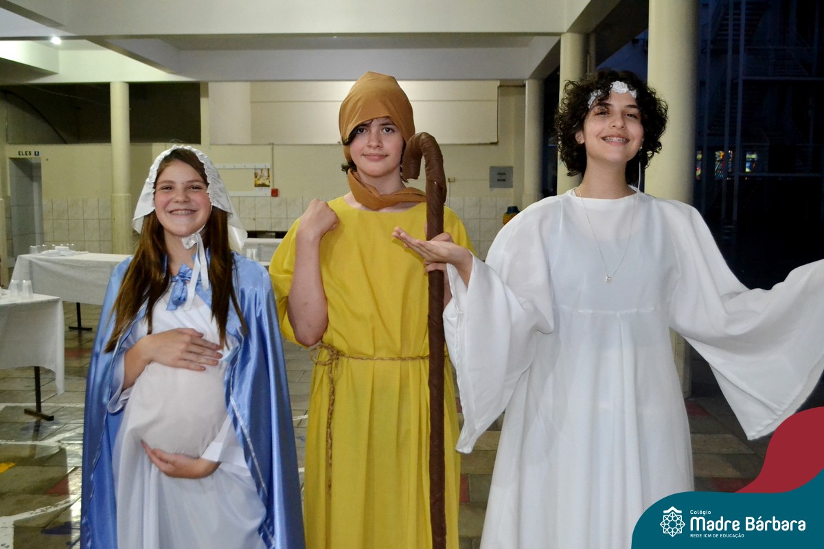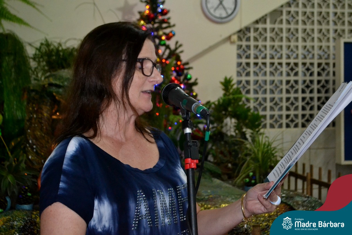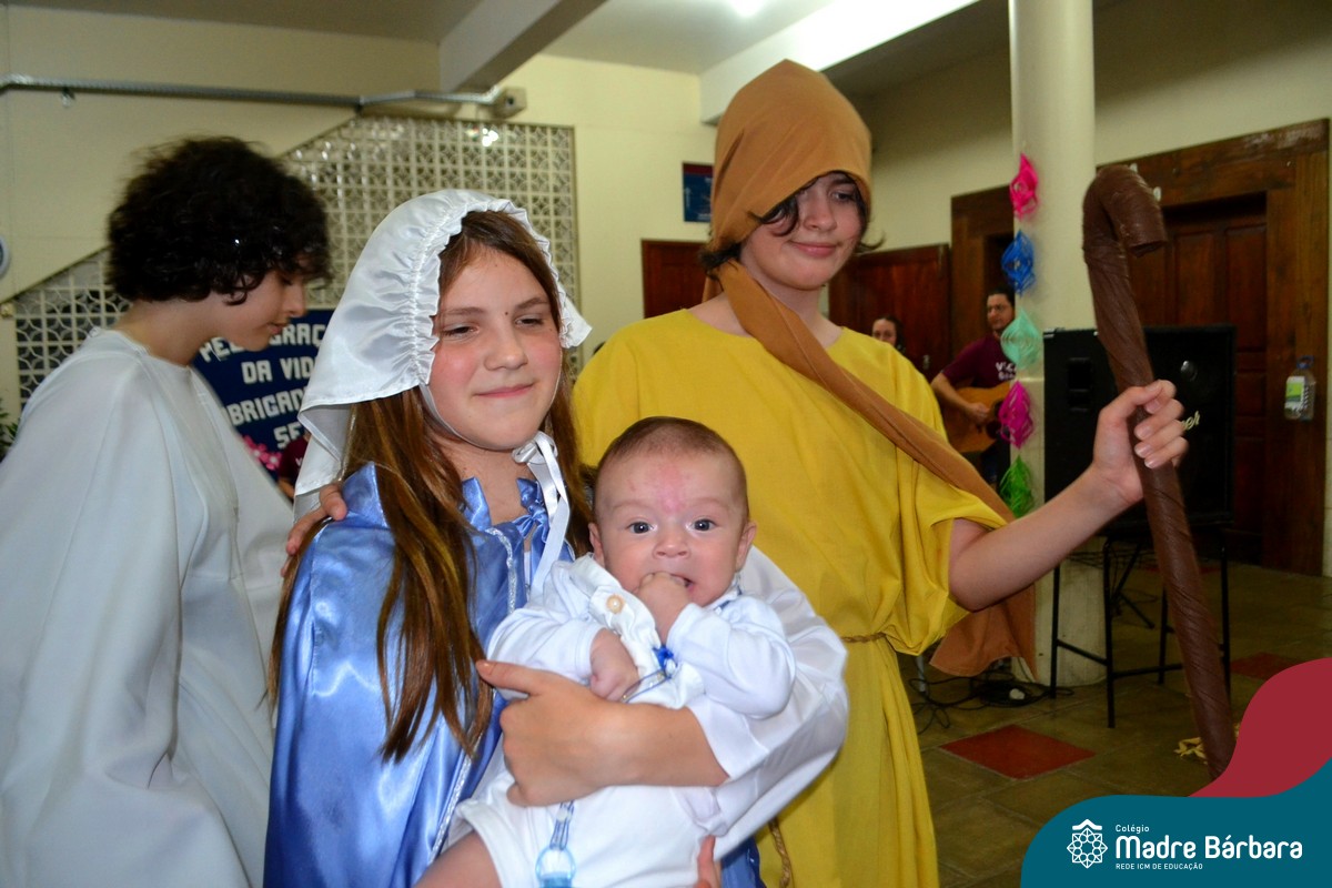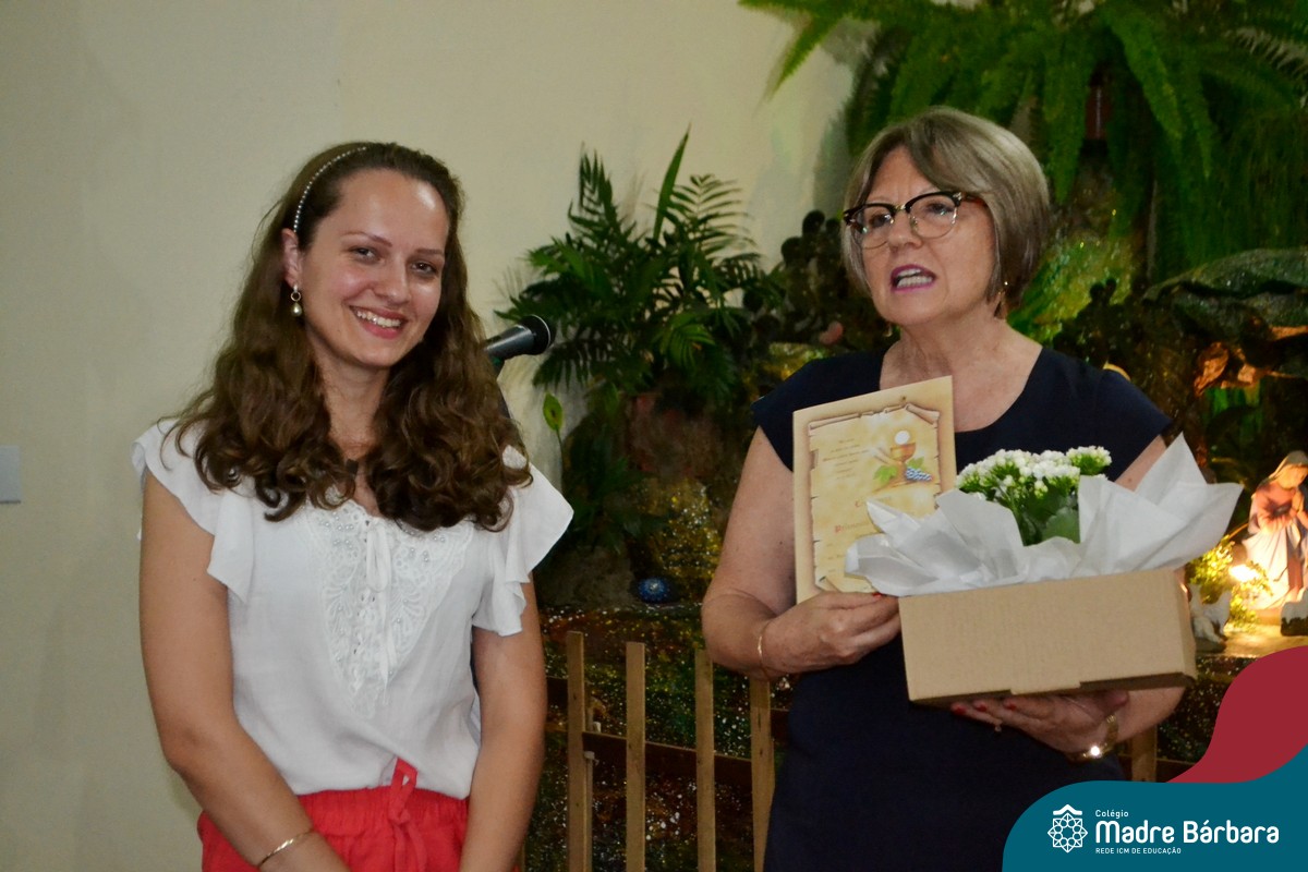 Na noite de terça-feira (26.11) ocorreu a Celebração de Natal para professores e funcionários do Colégio Madre Bárbara – Rede ICM com a participação do Padre Antônio Puhl. O momento contou com a encenação do nascimento do menino Jesus feito pelo Grupo de Teatro Touchê, coordenado pela professora Vanderléia Freitas. Já o Grupo Vocal Madre Bárbara de responsabilidade do educador musical Ricardo Petter, cuidou da música e animação do momento.