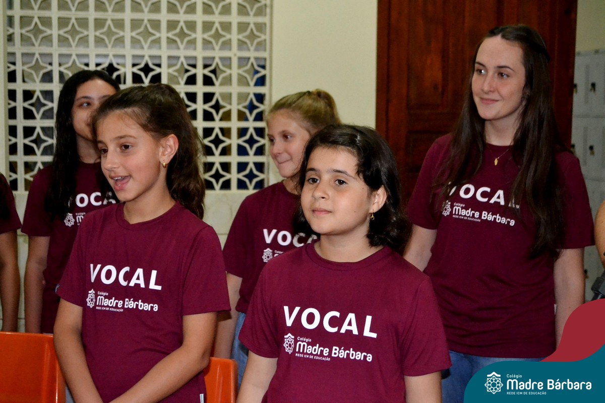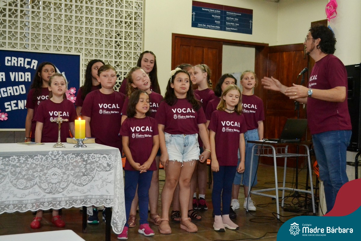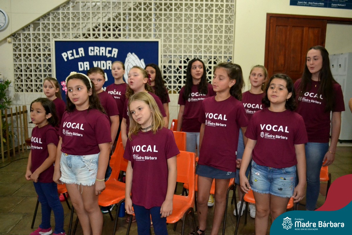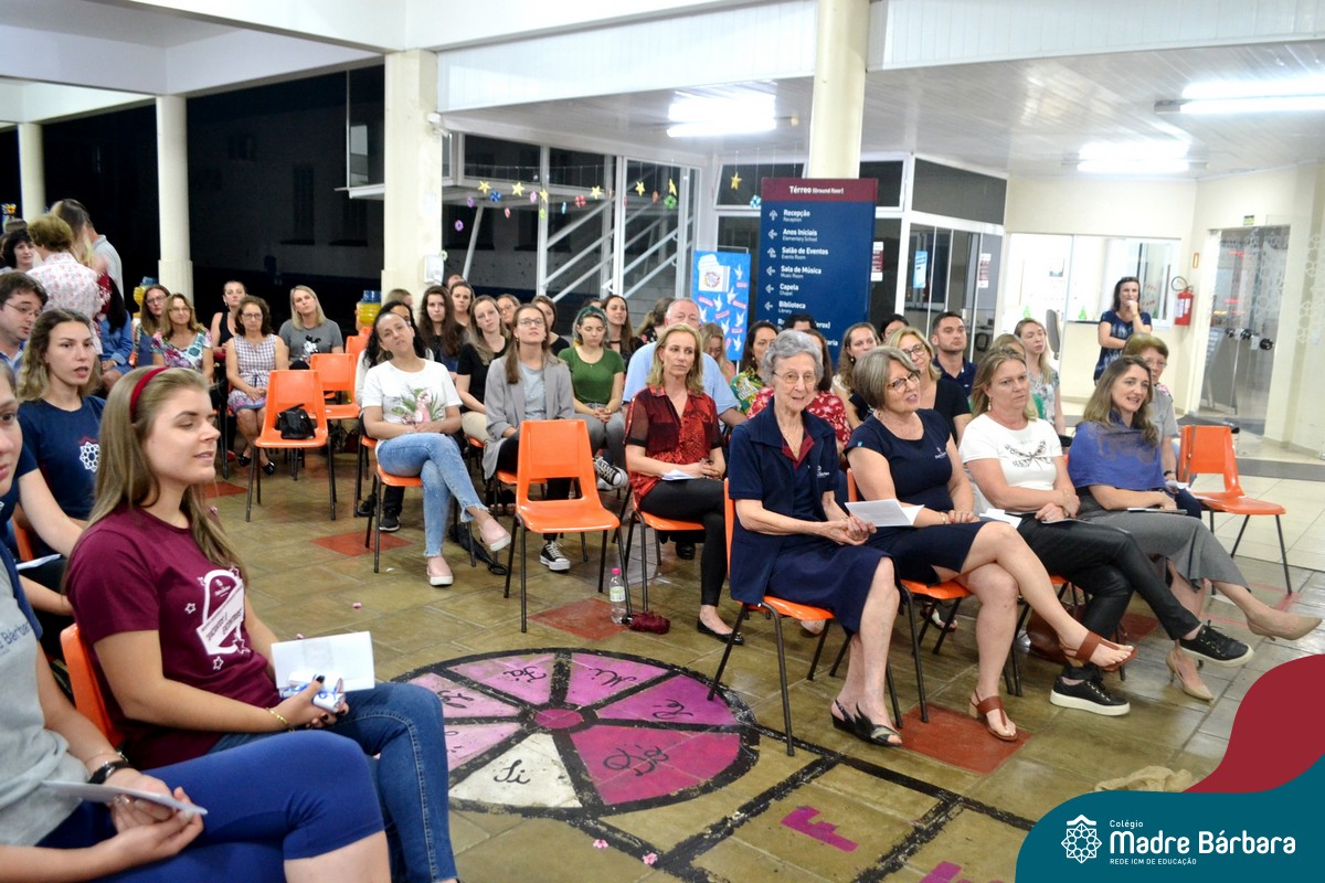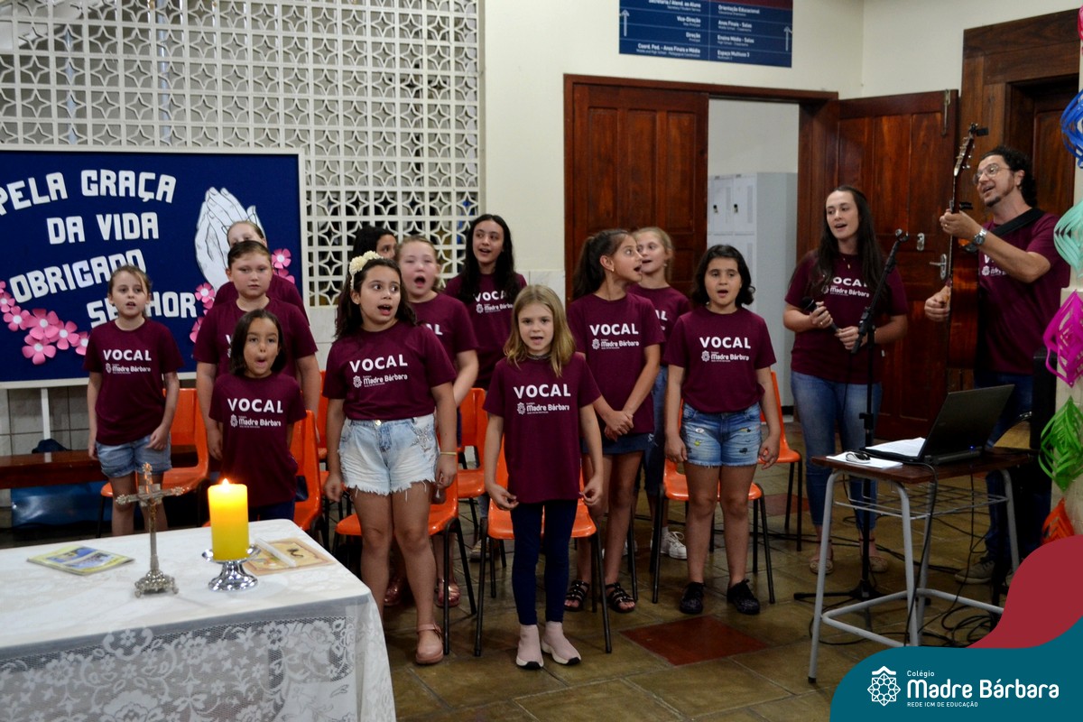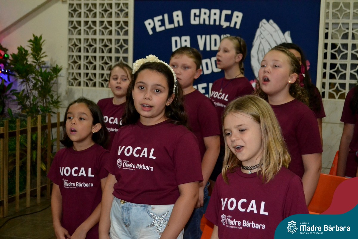 Na noite de terça-feira (26.11) ocorreu a Celebração de Natal para professores e funcionários do Colégio Madre Bárbara – Rede ICM com a participação do Padre Antônio Puhl. O momento contou com a encenação do nascimento do menino Jesus feito pelo Grupo de Teatro Touchê, coordenado pela professora Vanderléia Freitas. Já o Grupo Vocal Madre Bárbara de responsabilidade do educador musical Ricardo Petter, cuidou da música e animação do momento.