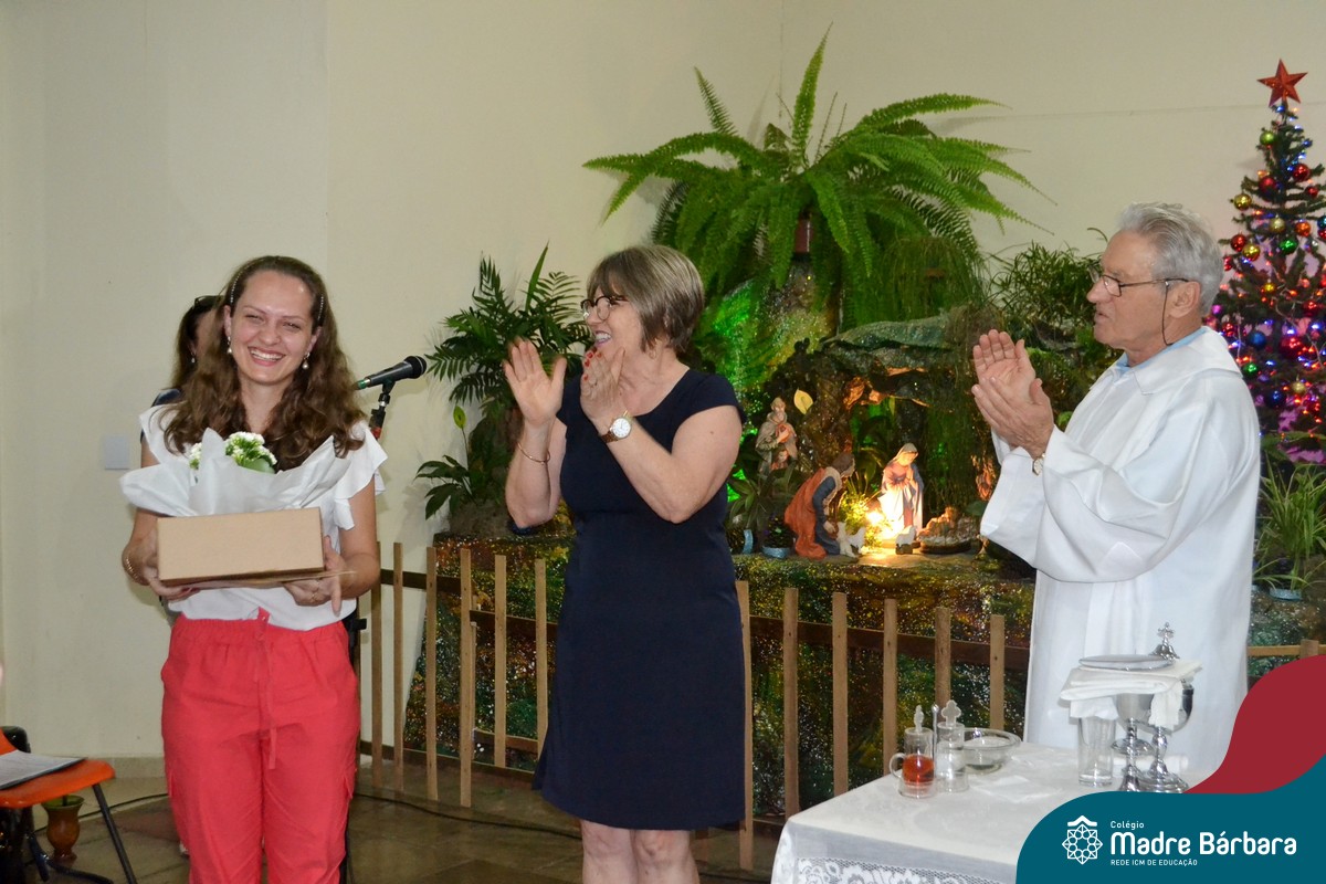 Outra das surpresas da noite foi a primeira eucaristia da funcionária Luiza Furlan. O Padre Antônio também foi homenageado pelo Colégio Madre Bárbara, que após 22 anos na Paróquia Santo Inácio de Loyola de Lajeado, ocupará a função de vigário paroquial da Catedral de Santa Cruz do Sul. Após, todos os profissionais se reuniram em um momento de confraternização.