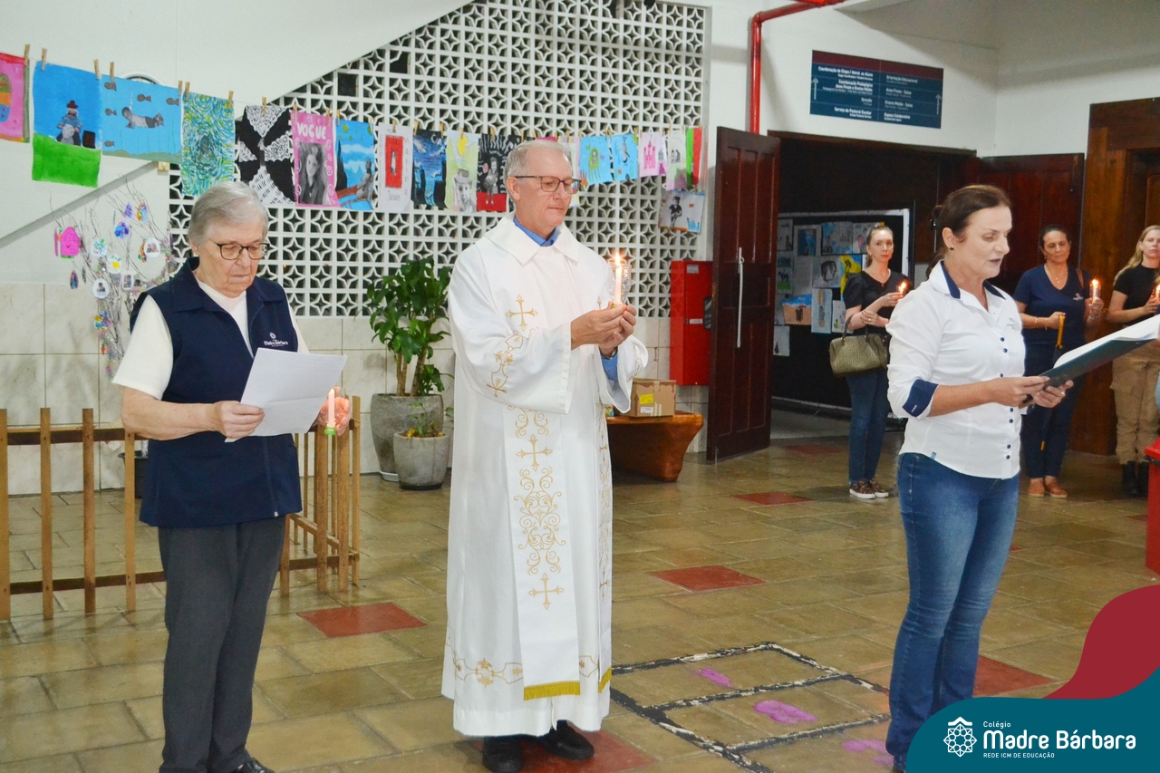 Na noite de quinta-feira (21.03) os colaboradores do Colégio Madre Bárbara – Rede ICM foram convidados a participarem da Celebração de Páscoa organizada pelo Serviço de Pastoral Escolar. O Padre Roni Osvaldo Fengler, pároco da Paróquia Santo Inácio presidiu a celebração em preparação para viver a verdadeira Páscoa – Vida Nova – Ressurreição de Jesus. Agradecemos a presença de todos!