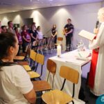 A Semana Santa e o Tríduo Pascal, são bênçãos que Deus nos concede para que entremos um pouco mais no mistério do seu amor. O Papa Francisco assim se expressa diante da situação de mundo que vivemos quando nos diz: “milhões de pessoas sofrem e morrem de fome, enquanto se descartam toneladas de alimento. Isto constitui um verdadeiro escândalo. A fome é criminosa, a alimentação é um direito alienável. ” O gesto do lava-pés é repleto da espiritualidade do cuidado. Cuidar é envolver-se com o outro, ou com a comunidade de vida, mostrando zelo e preocupação. É por este motivo pensando no outro, que na noite de segunda-feira (03.04) foi celebrada a Ceia com professores e funcionários, com o coração agradecido por tantas graças recebidas.