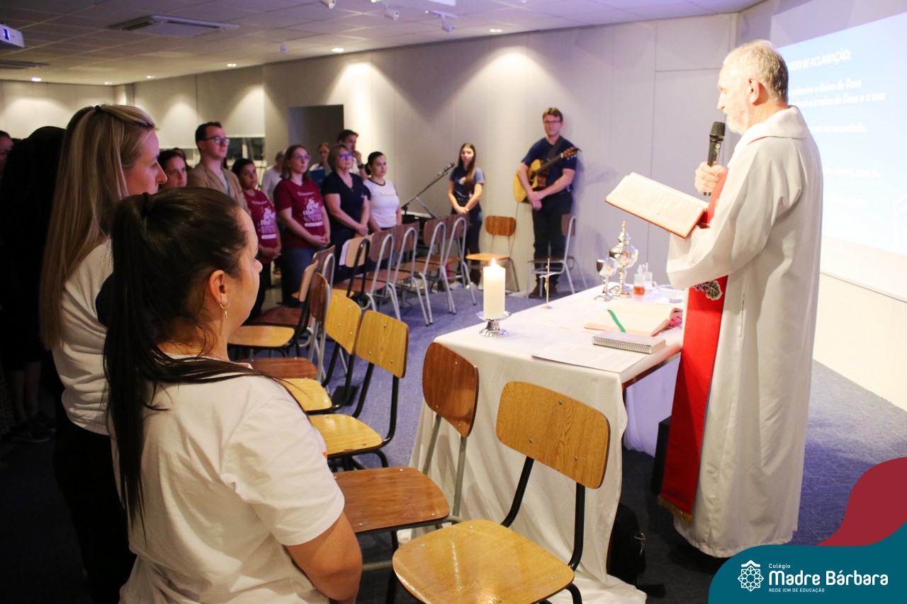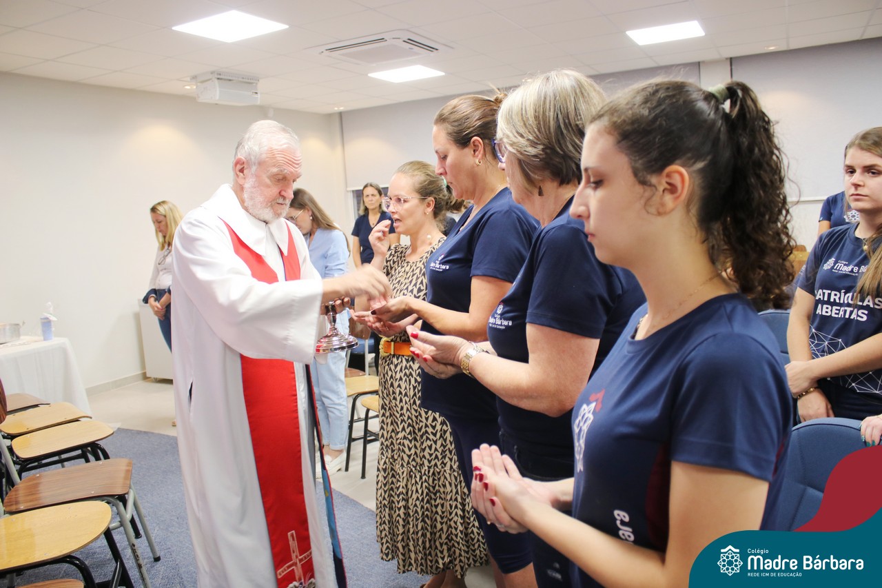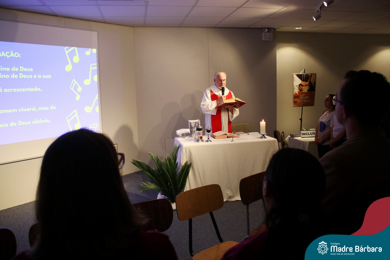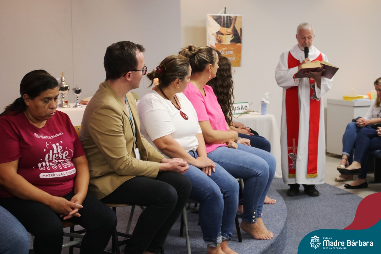 A Semana Santa e o Tríduo Pascal, são bênçãos que Deus nos concede para que entremos um pouco mais no mistério do seu amor. O Papa Francisco assim se expressa diante da situação de mundo que vivemos quando nos diz: “milhões de pessoas sofrem e morrem de fome, enquanto se descartam toneladas de alimento. Isto constitui um verdadeiro escândalo. A fome é criminosa, a alimentação é um direito alienável. ” O gesto do lava-pés é repleto da espiritualidade do cuidado. Cuidar é envolver-se com o outro, ou com a comunidade de vida, mostrando zelo e preocupação. É por este motivo pensando no outro, que na noite de segunda-feira (03.04) foi celebrada a Ceia com professores e funcionários, com o coração agradecido por tantas graças recebidas.