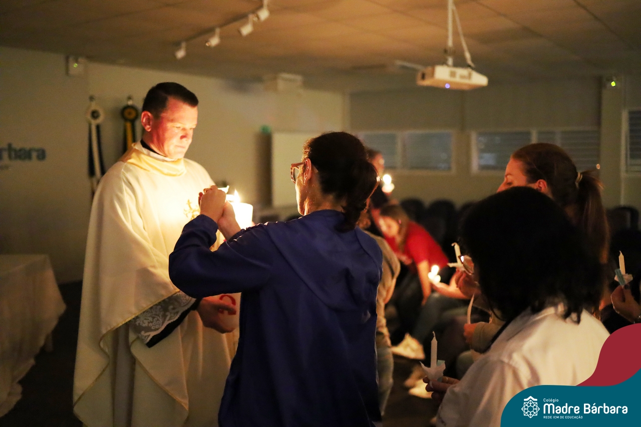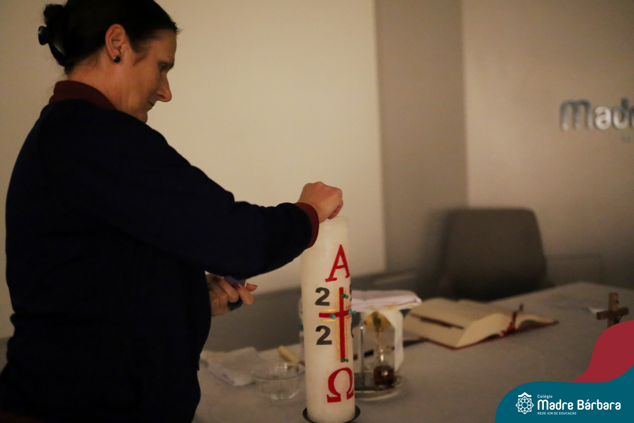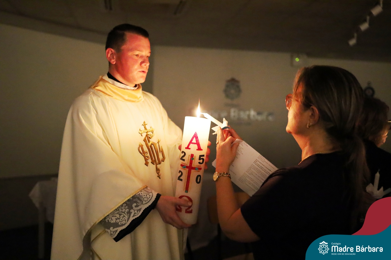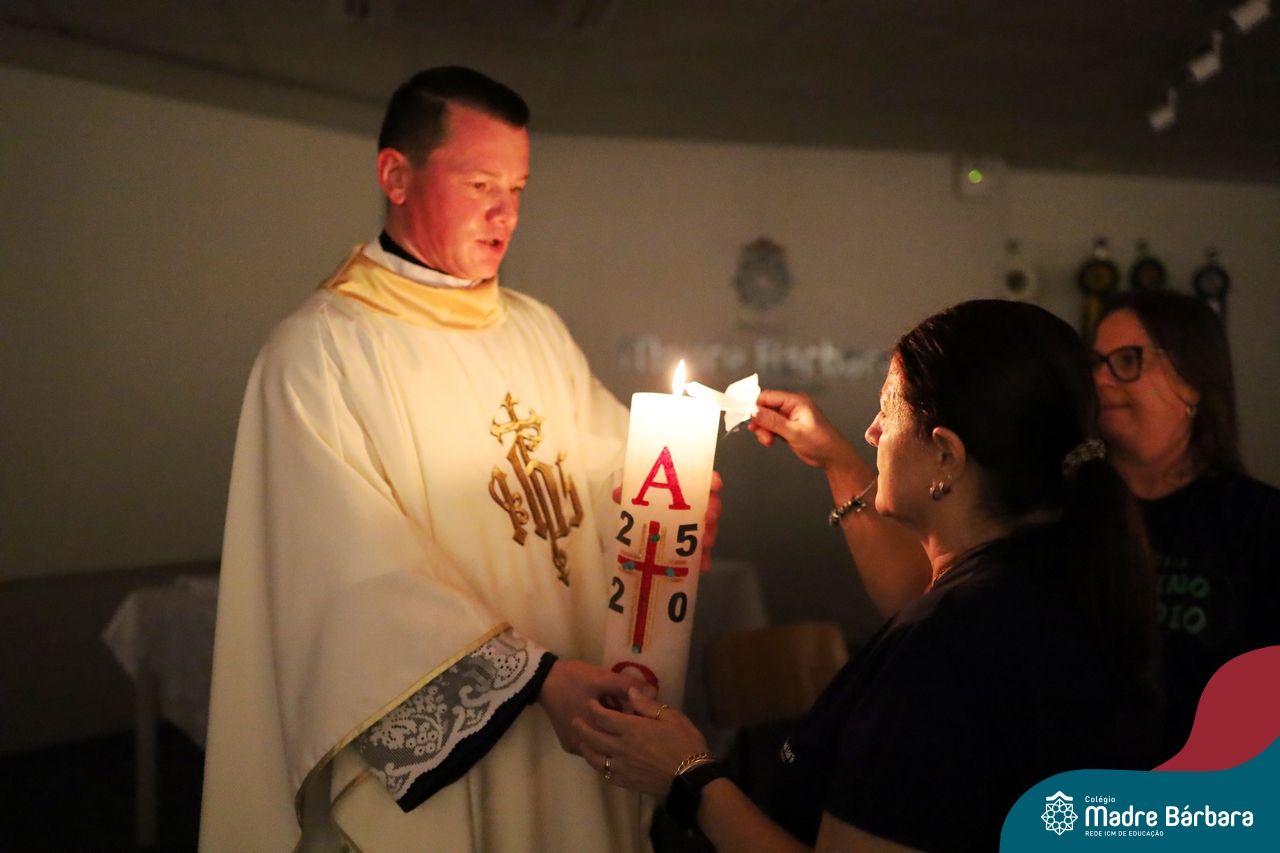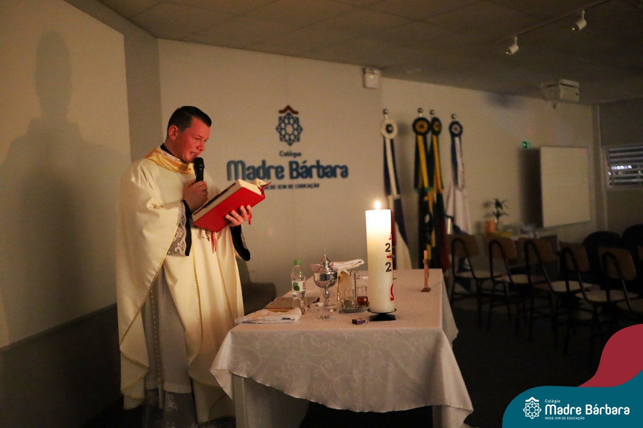 Na noite de terça-feira (8) o Serviço de Pastoral Escolar e o Colégio Madre Bárbara – Rede ICM realizaram a tradicional Celebração de Páscoa para os colaboradores. A missa, celebrada pelo Padre Ezequiel, de Cruzeiro do Sul, contou com a leitura do Êxodo, momento do lava-pés, Círio Pascal com luzes desligados, reflexão e comunhão. Agradecemos a presença dos profissionais neste momento de fé e agradecimento.