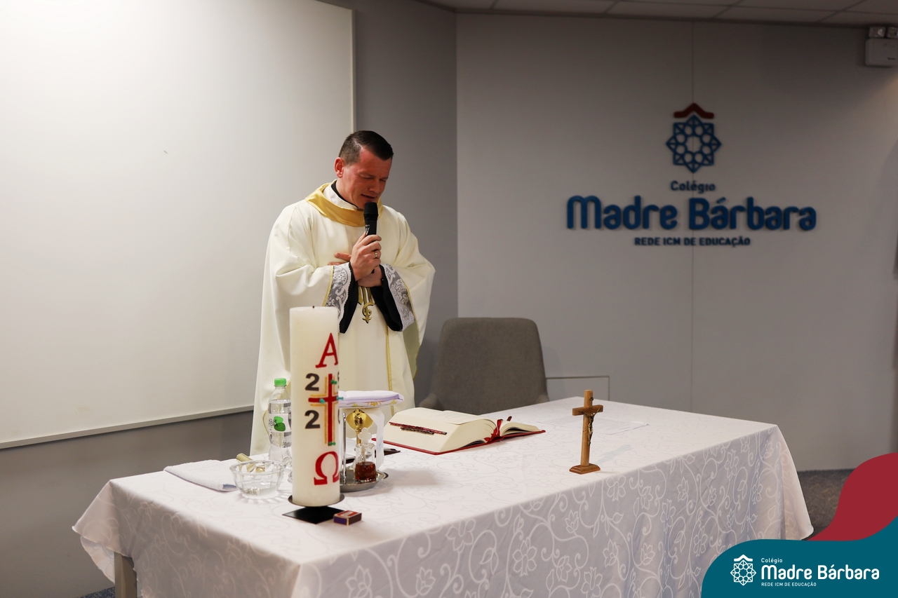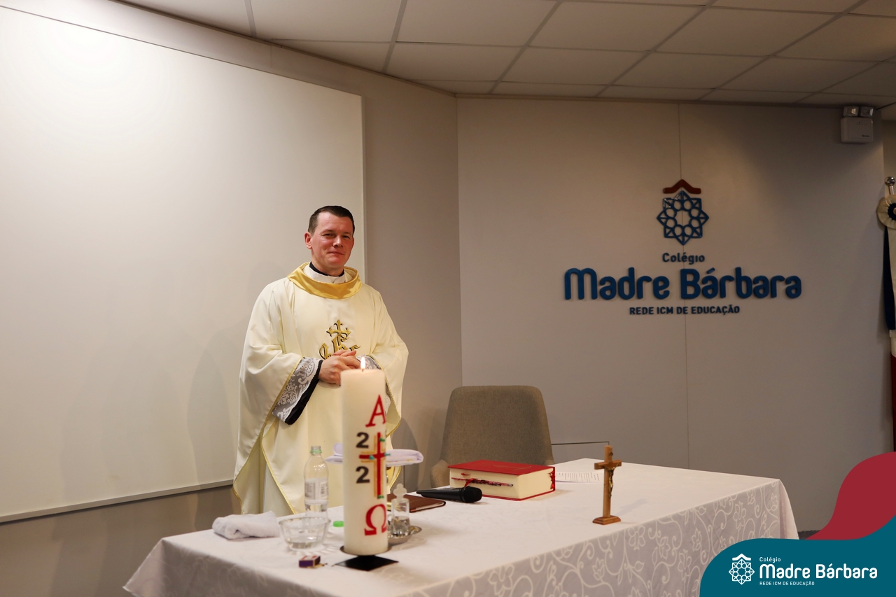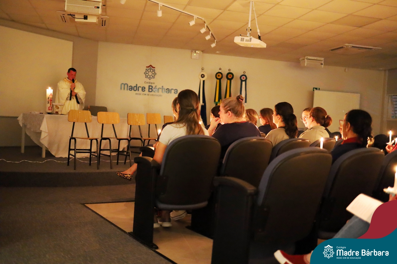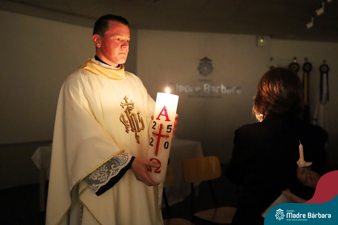 Na noite de terça-feira (8) o Serviço de Pastoral Escolar e o Colégio Madre Bárbara – Rede ICM realizaram a tradicional Celebração de Páscoa para os colaboradores. A missa, celebrada pelo Padre Ezequiel, de Cruzeiro do Sul, contou com a leitura do Êxodo, momento do lava-pés, Círio Pascal com luzes desligados, reflexão e comunhão. Agradecemos a presença dos profissionais neste momento de fé e agradecimento.